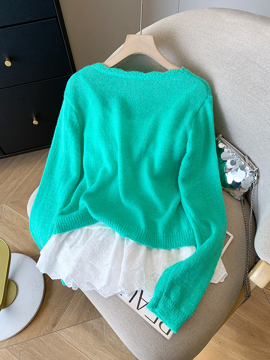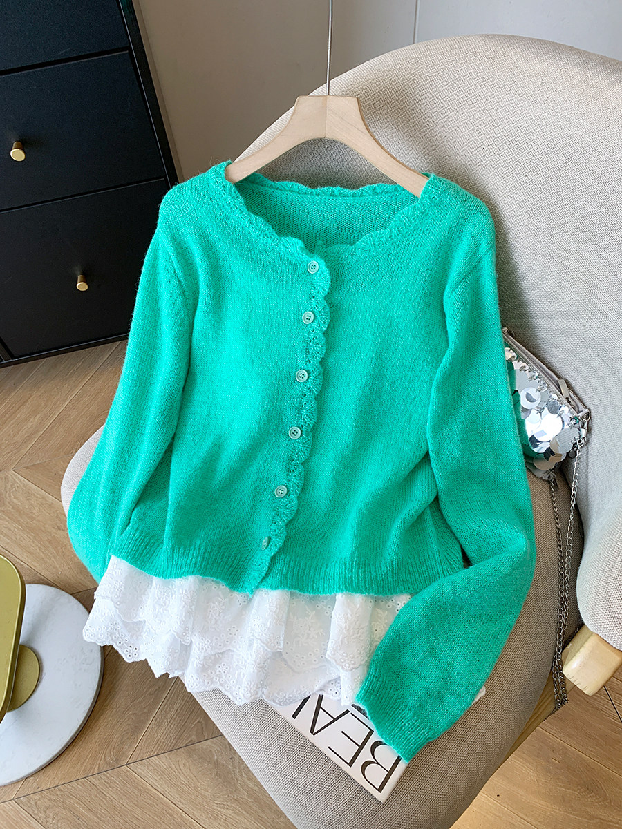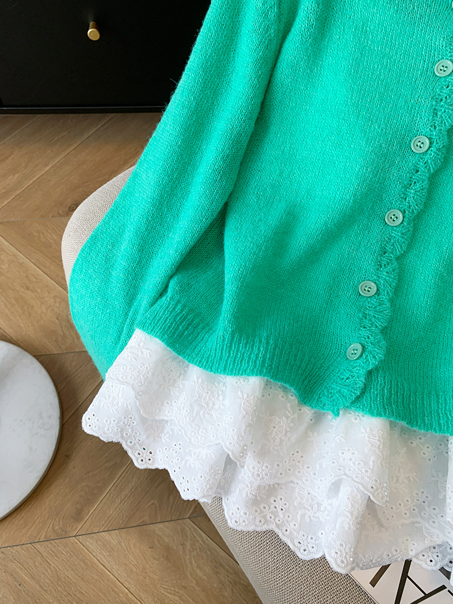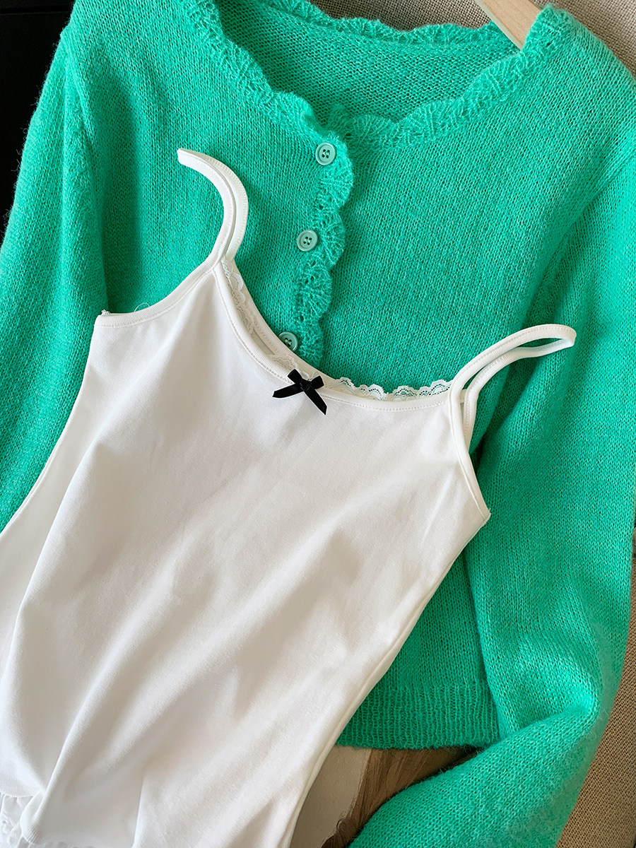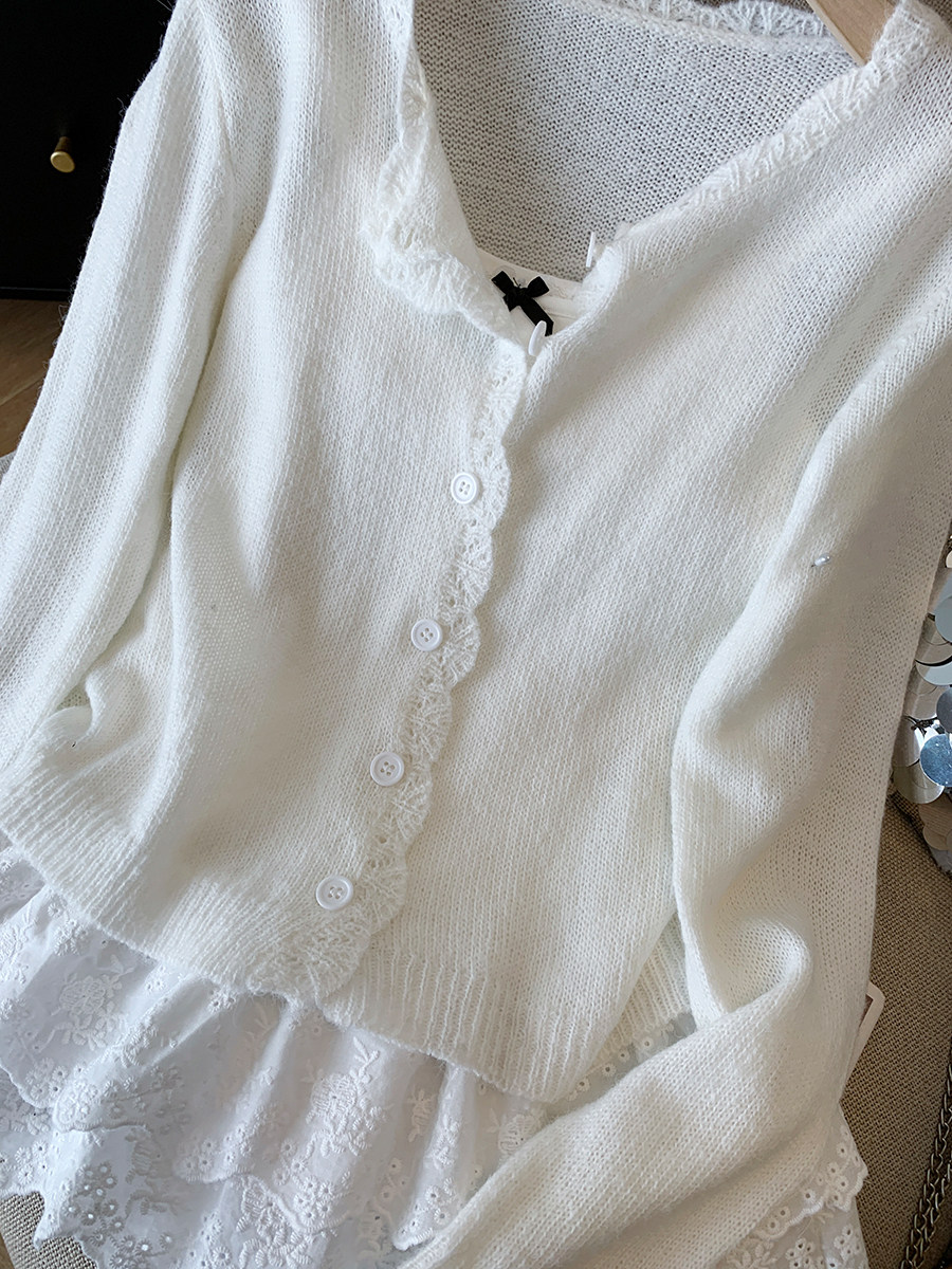 專櫃撤廻剪標韓系蕾絲拼接吊帶女春季新款甜美顯白開衫曡穿兩件套