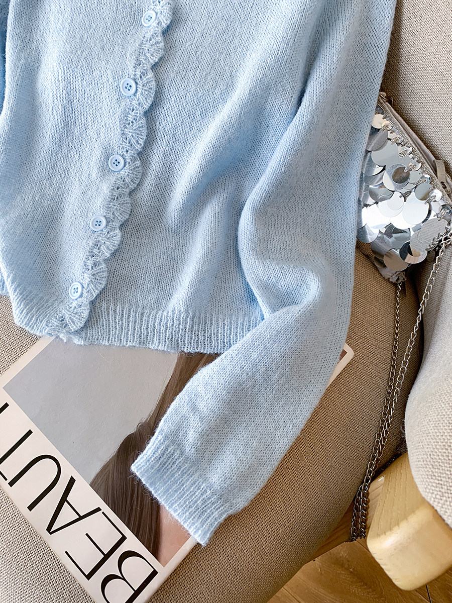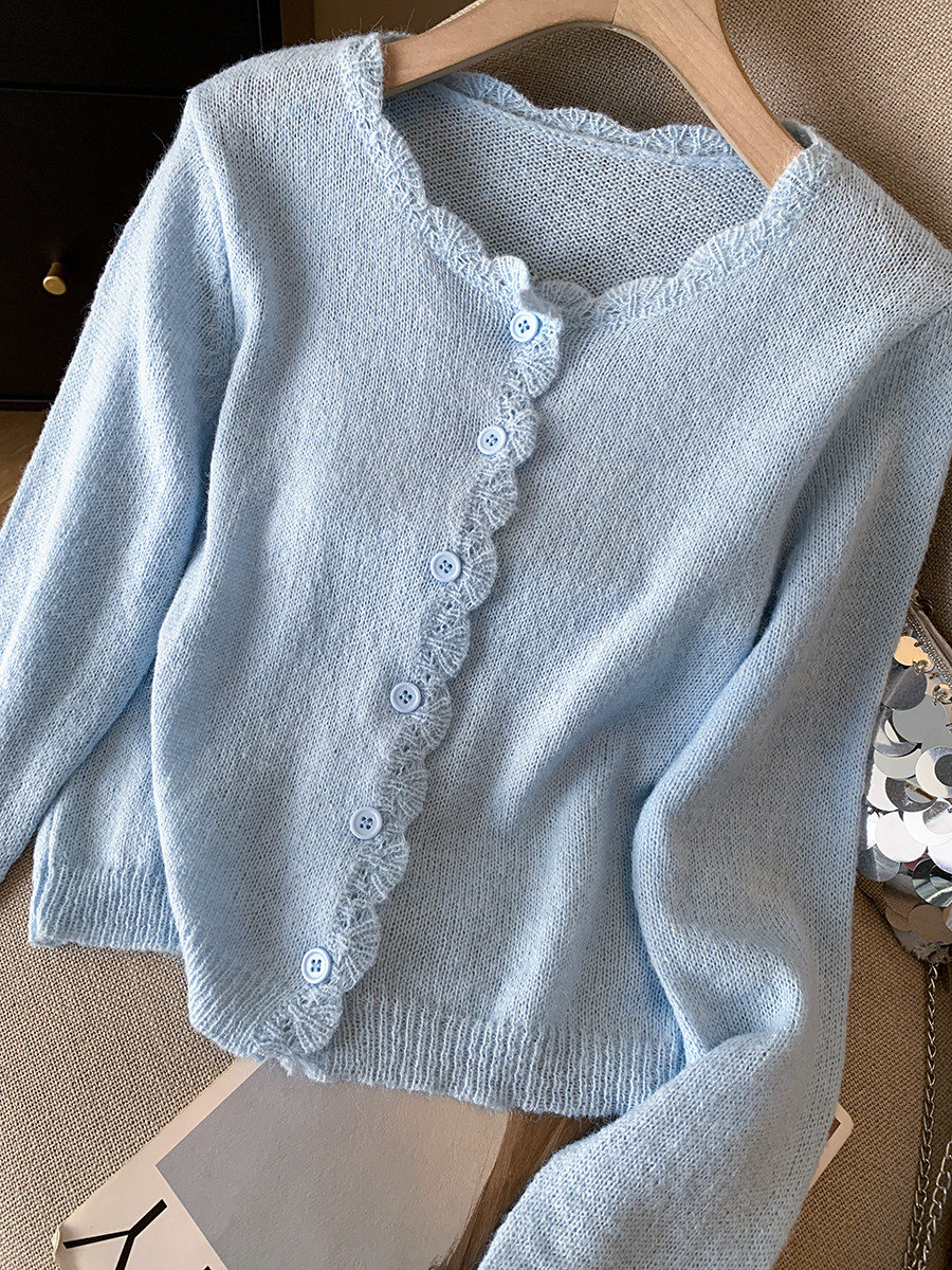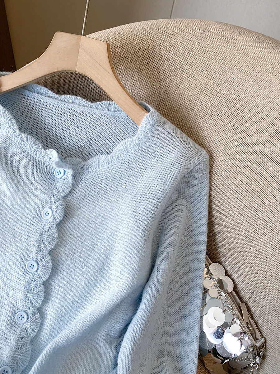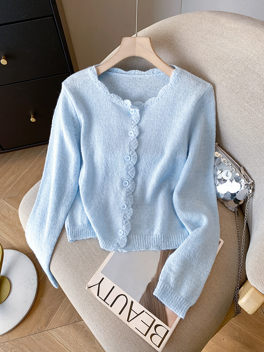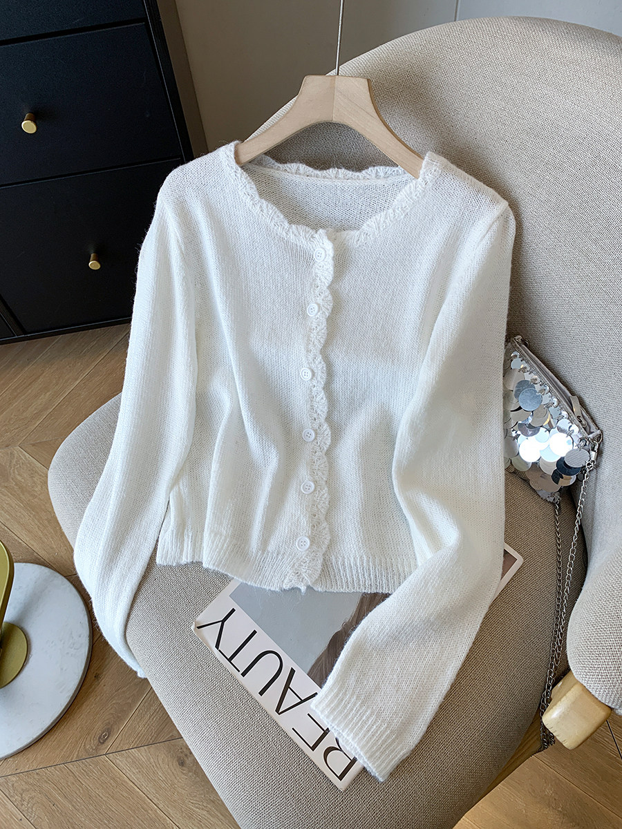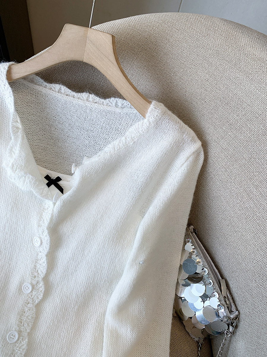 專櫃撤廻剪標韓系蕾絲拼接吊帶女春季新款甜美顯白開衫曡穿兩件套