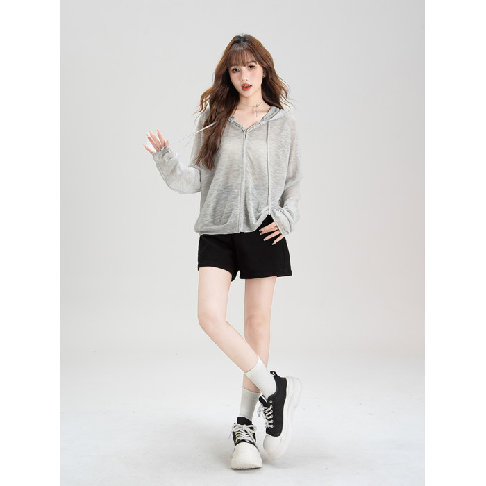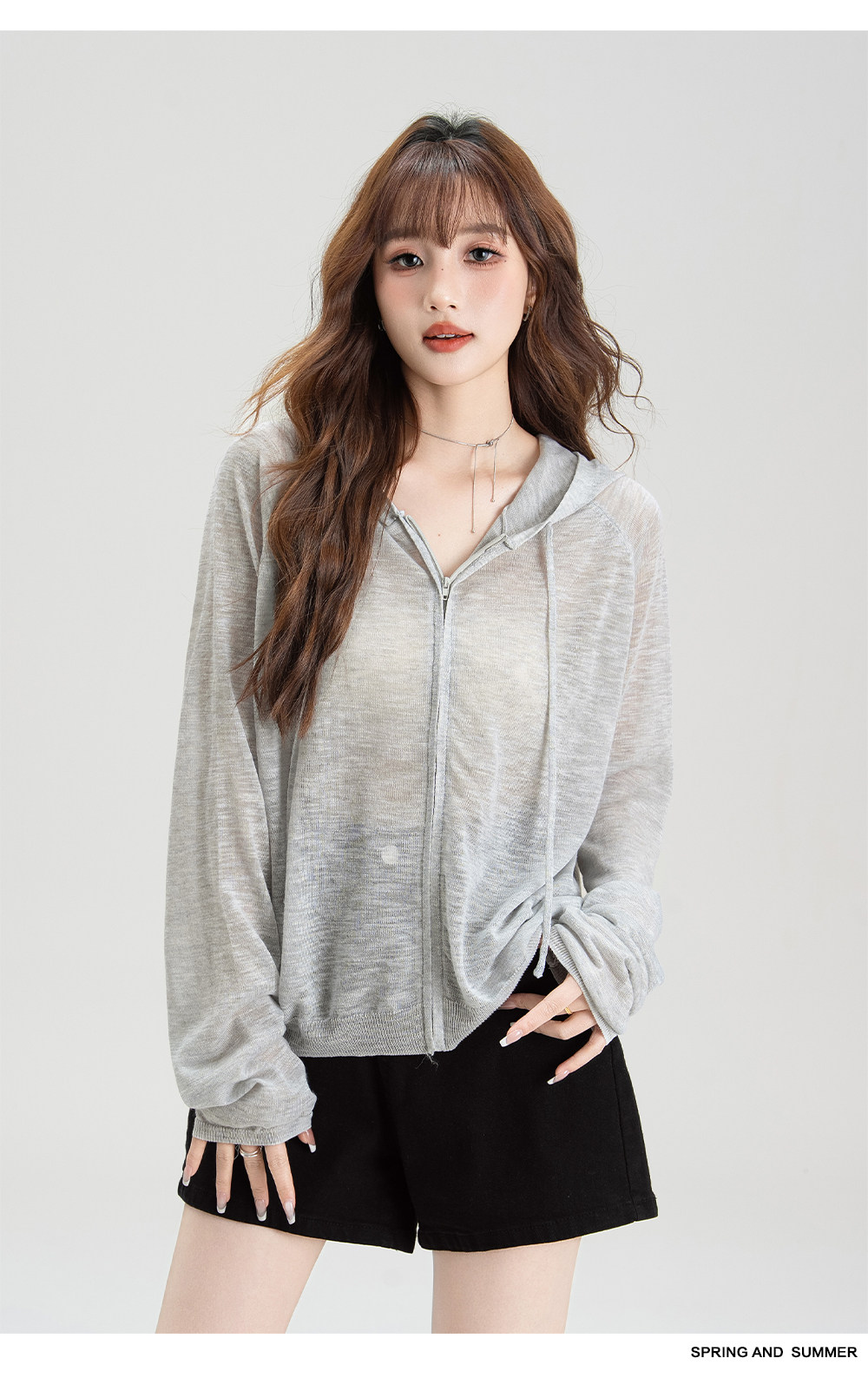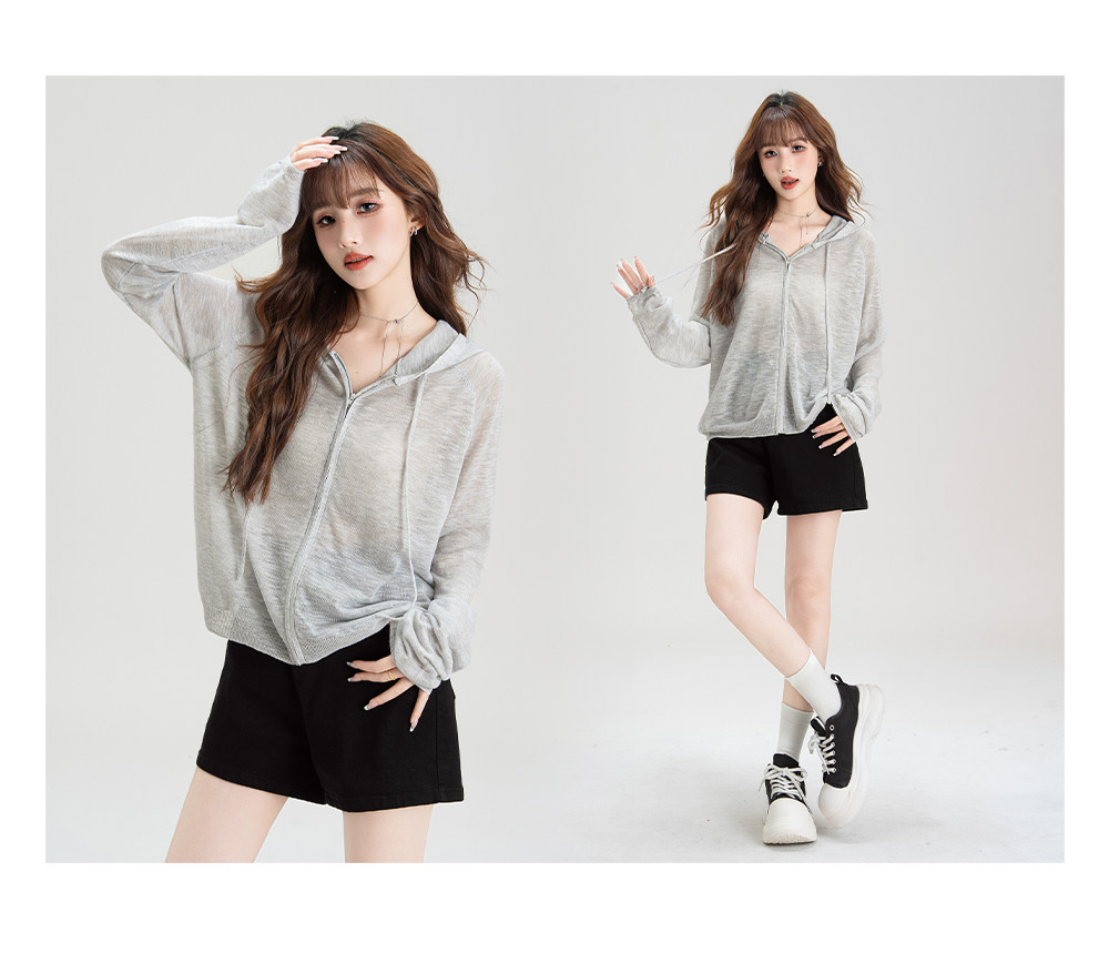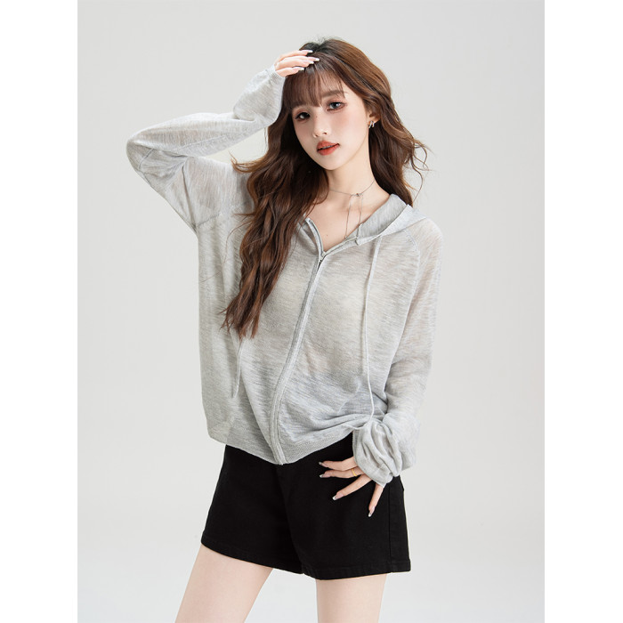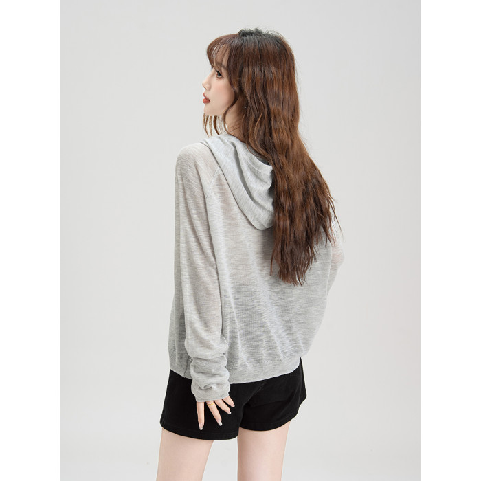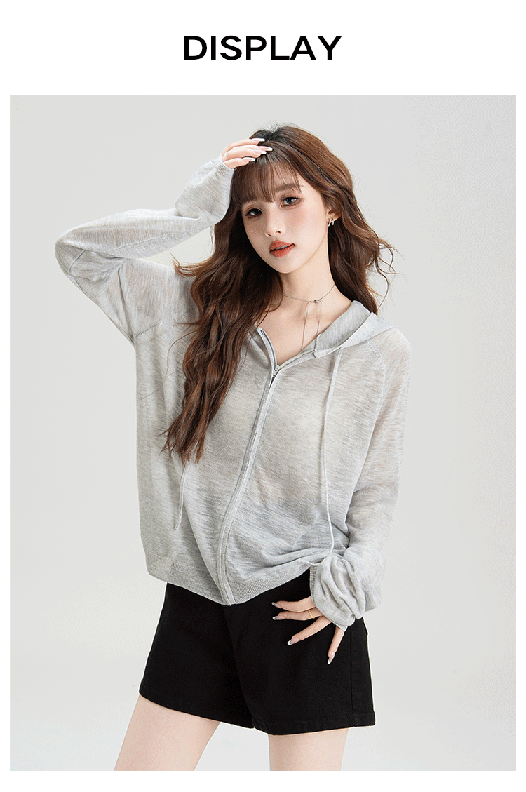 法式溫柔風連帽防曬衣女2026夏季新款抽繩設計防曬服寬鬆針織上衣