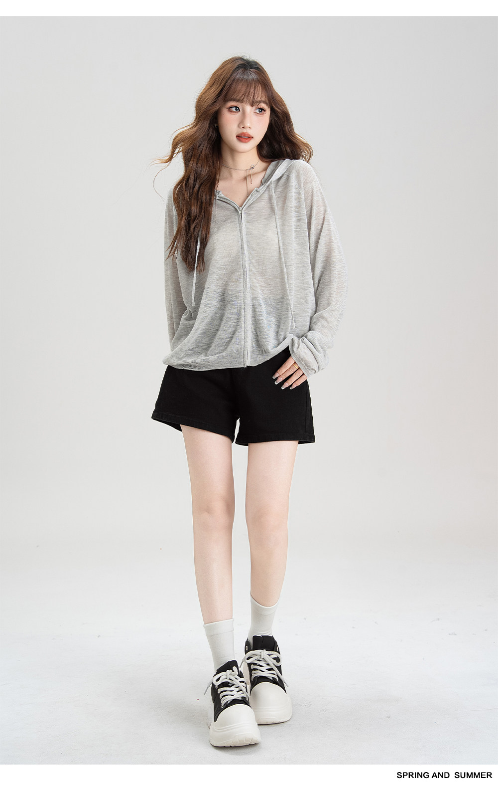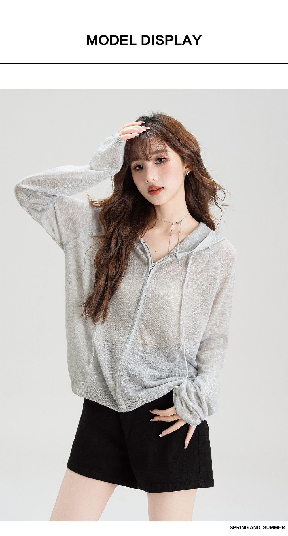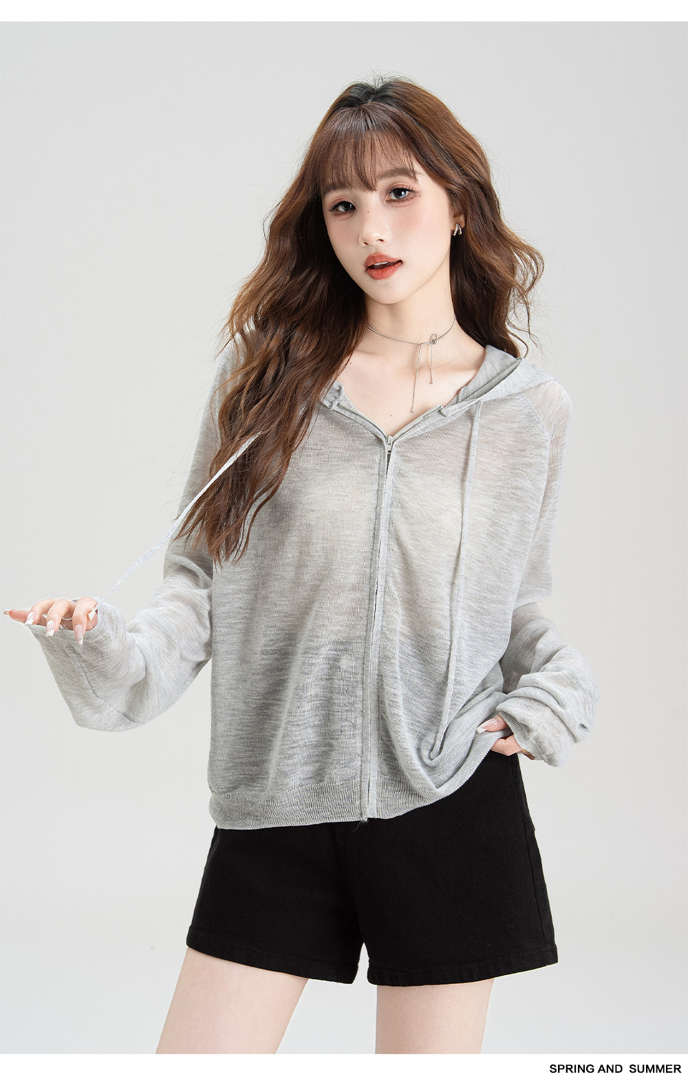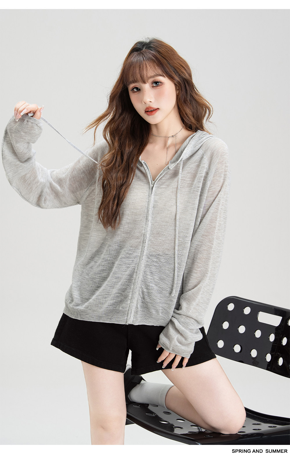法式溫柔風連帽防曬衣女2026夏季新款抽繩設計防曬服寬鬆針織上衣