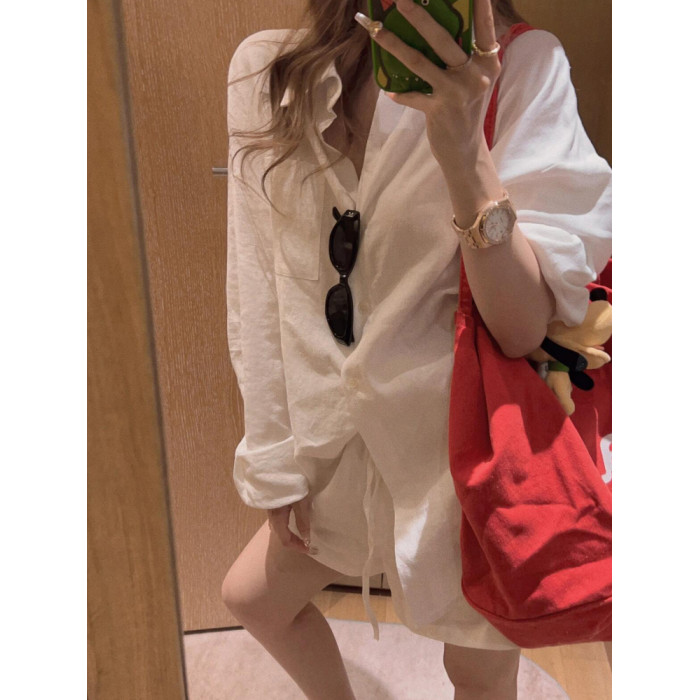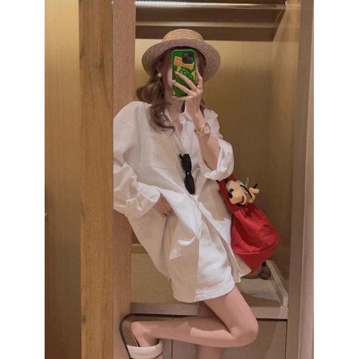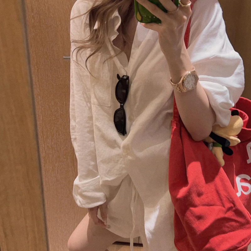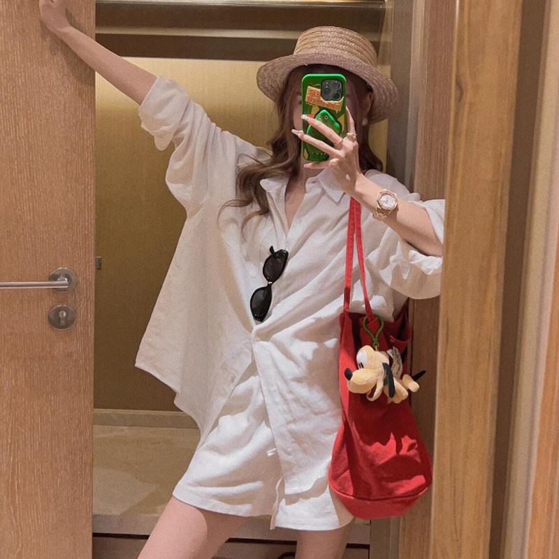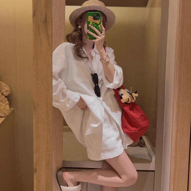 2026春秋季新款白色棉麻襯衫寬鬆顯瘦微透感慵懶風短褲松緊簡約女