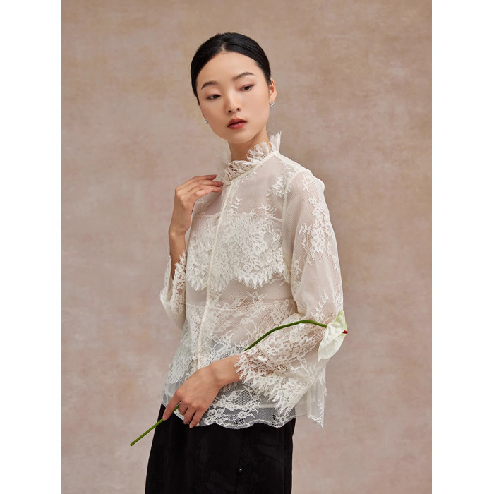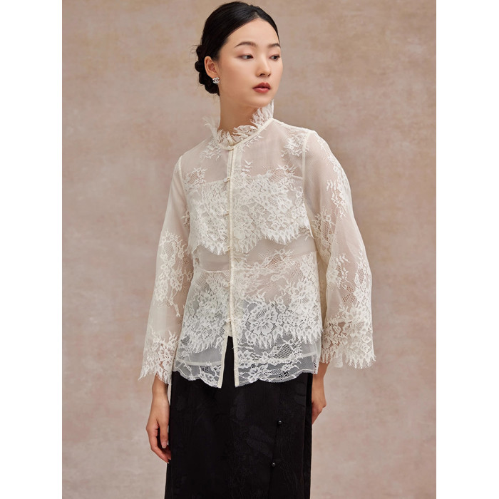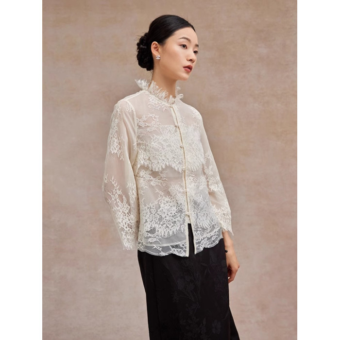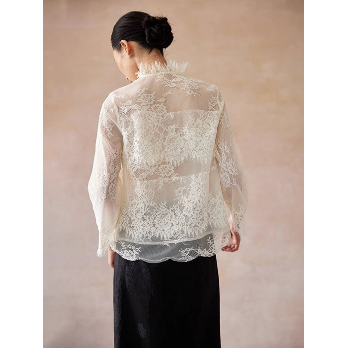 法式鏤空蕾絲衫顯瘦別致2025秋季長袖流行通勤上衣高級感輕奢小衫