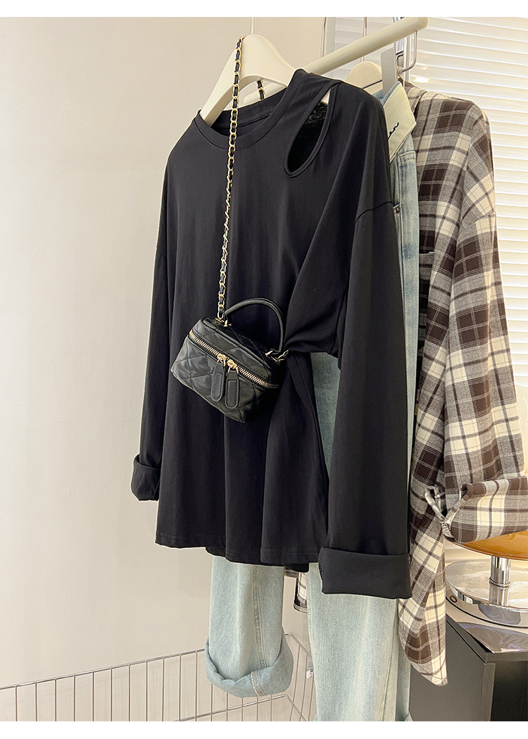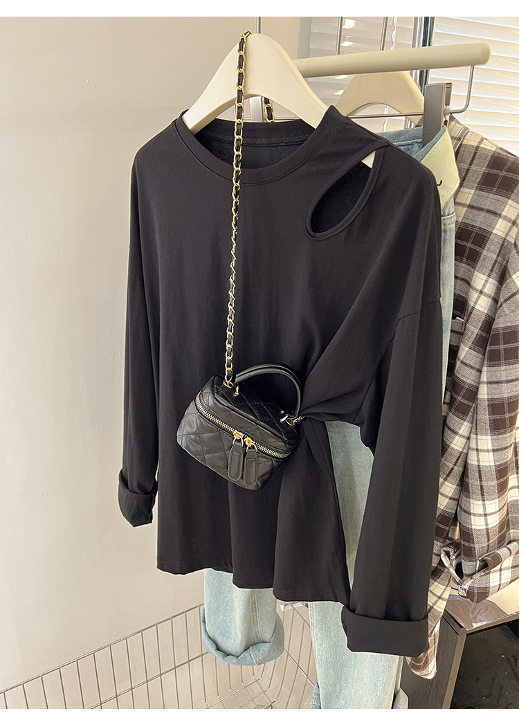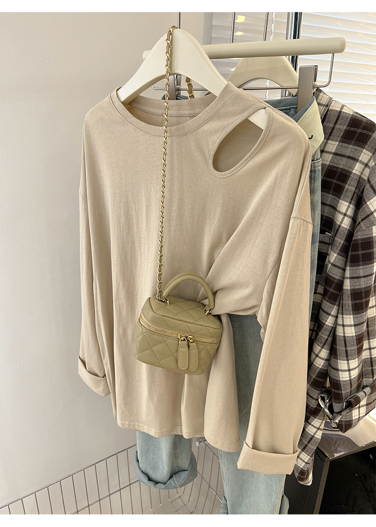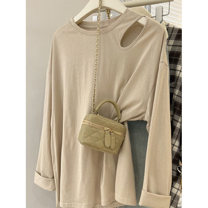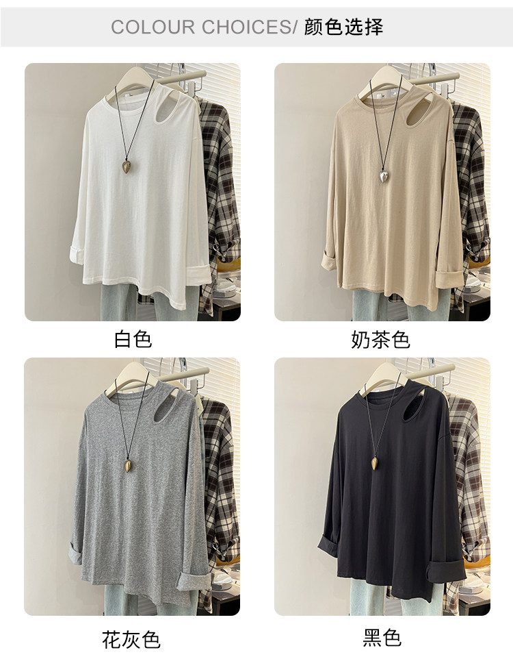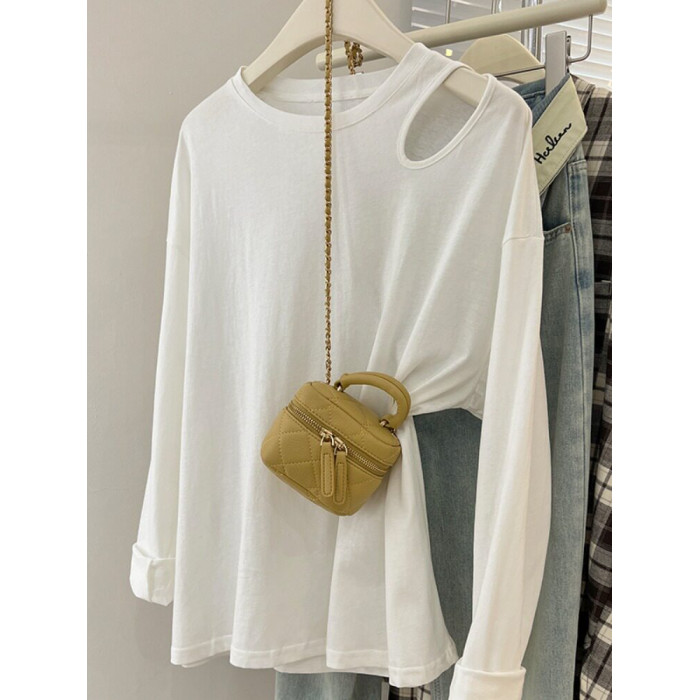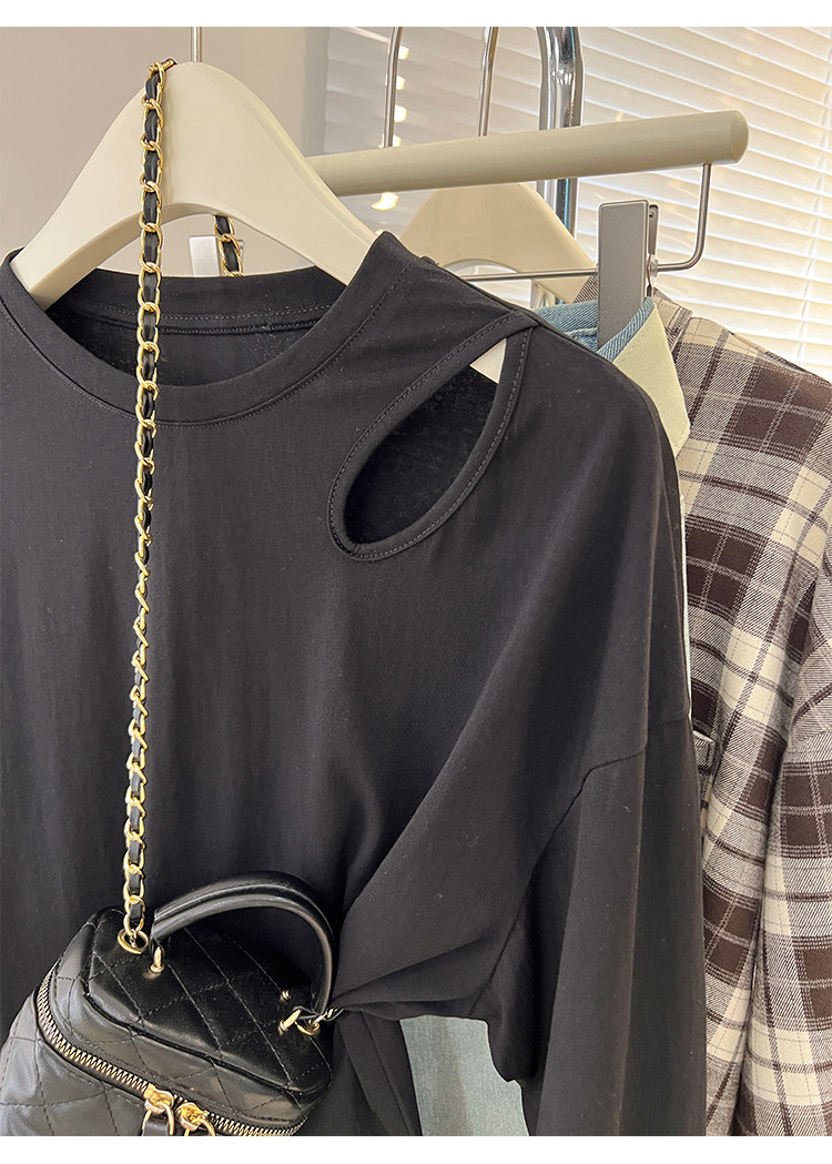 南油輕奢高貨撿漏!設計感灰色露肩t恤女2025秋季寬鬆顯瘦長袖上衣