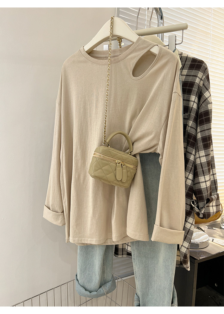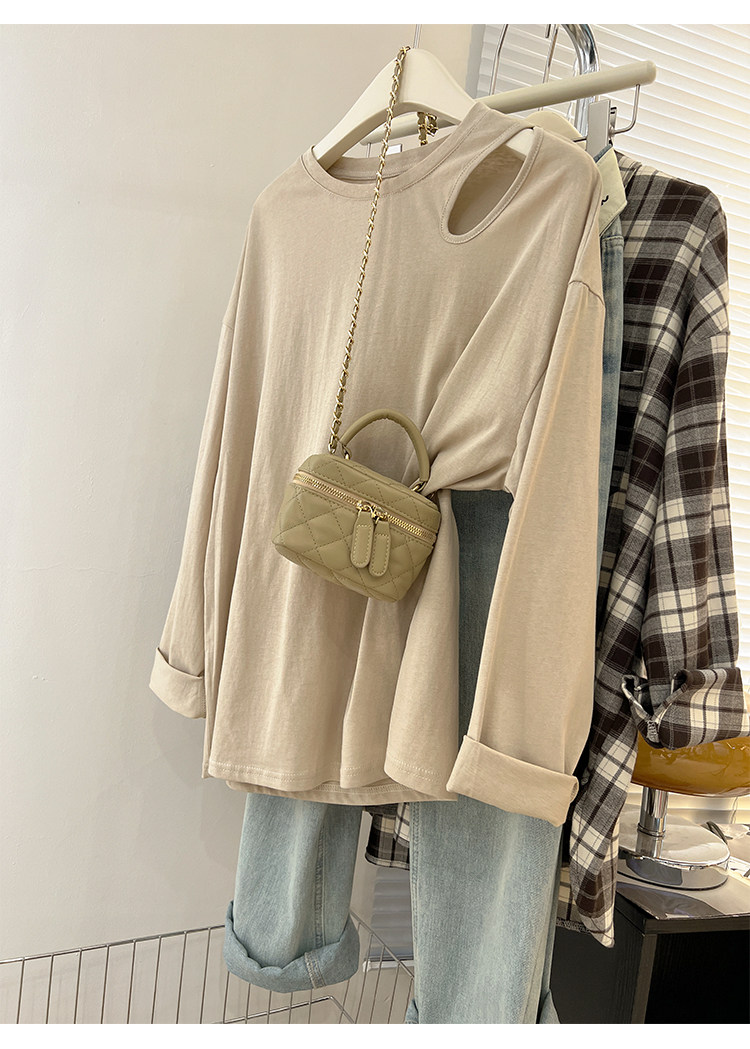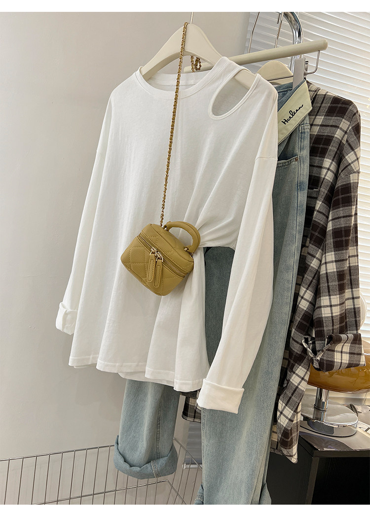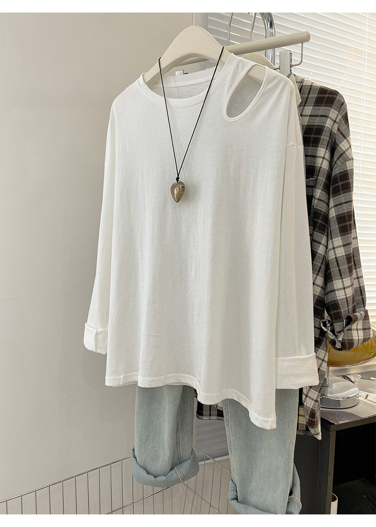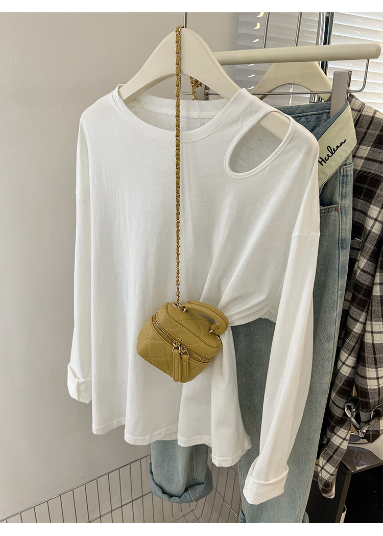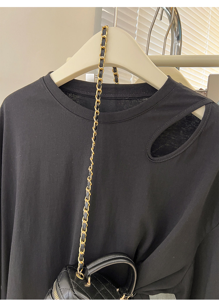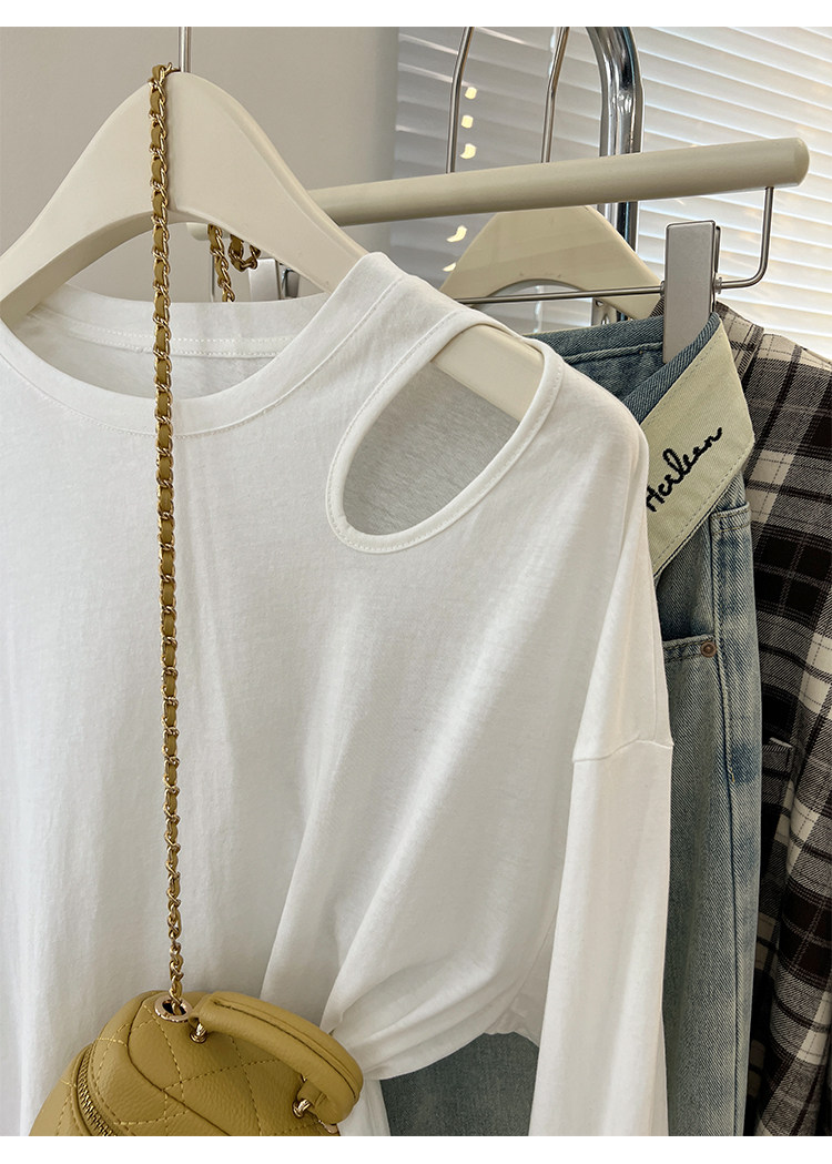 南油輕奢高貨撿漏!設計感灰色露肩t恤女2025秋季寬鬆顯瘦長袖上衣