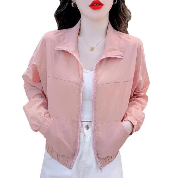 防曬衣女2025夏季新款時尚寬鬆短款輕薄立領百搭透氣防紫外線外套