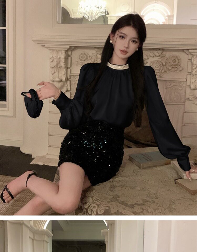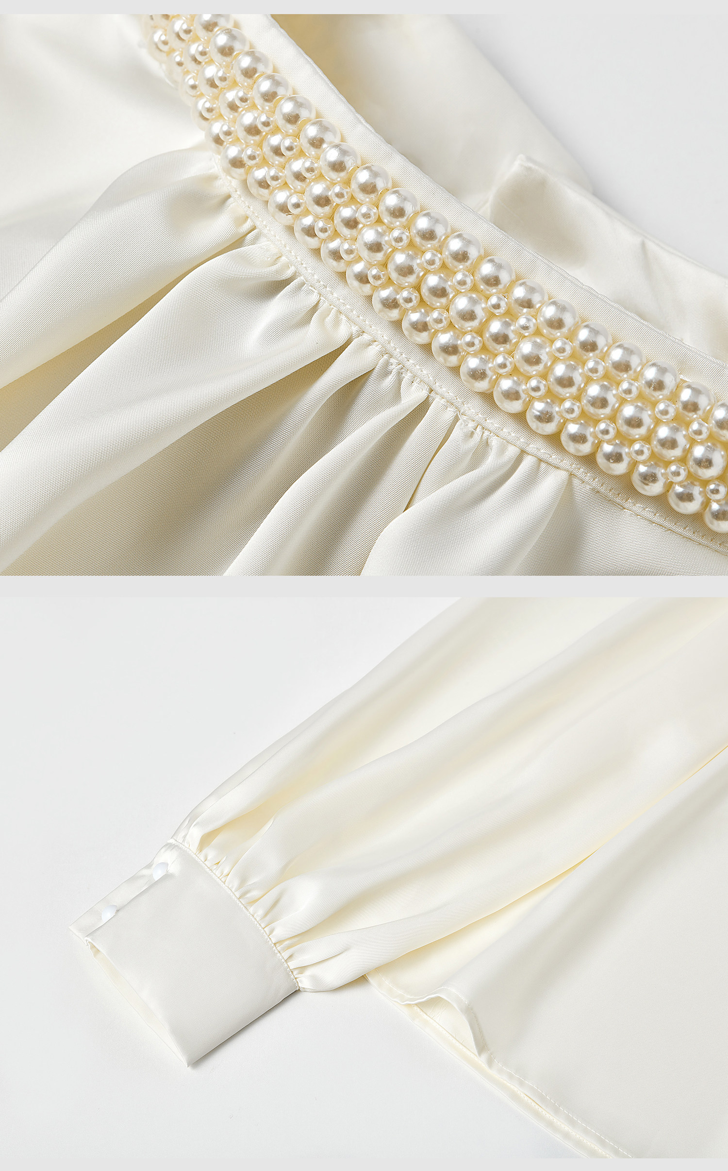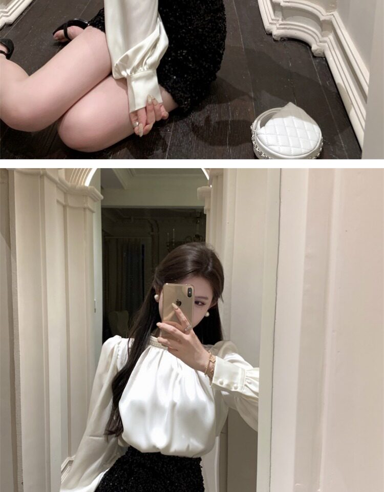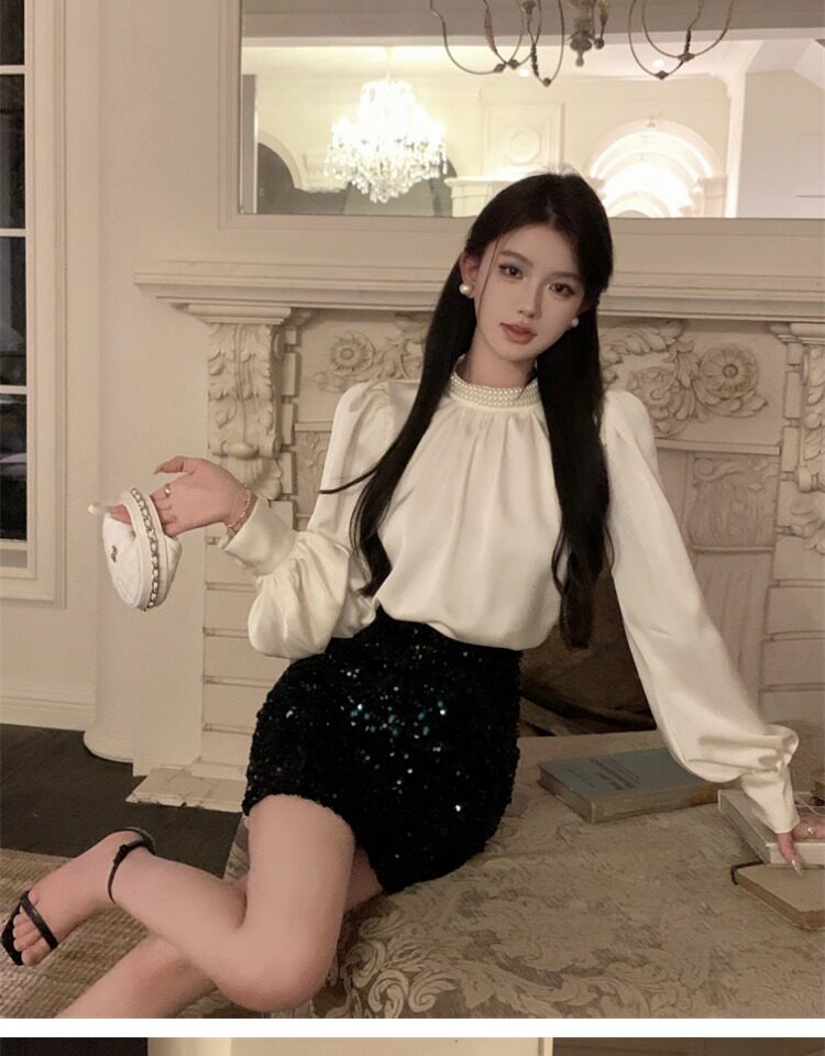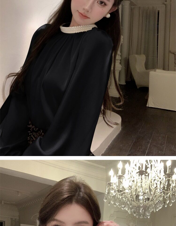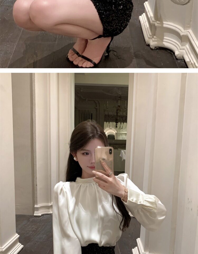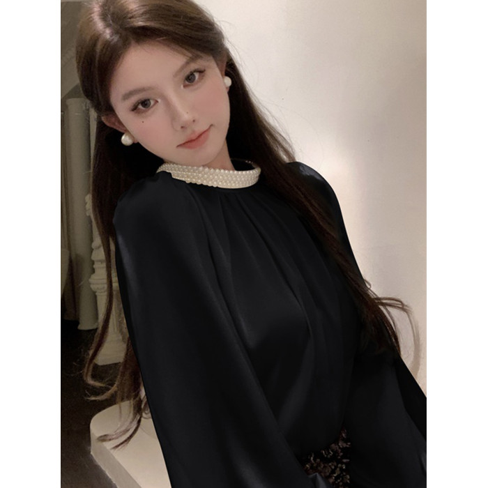 法式富家千金襯衫女宮廷風輕奢高級感穿搭珍珠緞面白色小資上衣