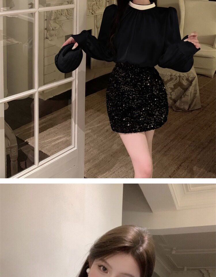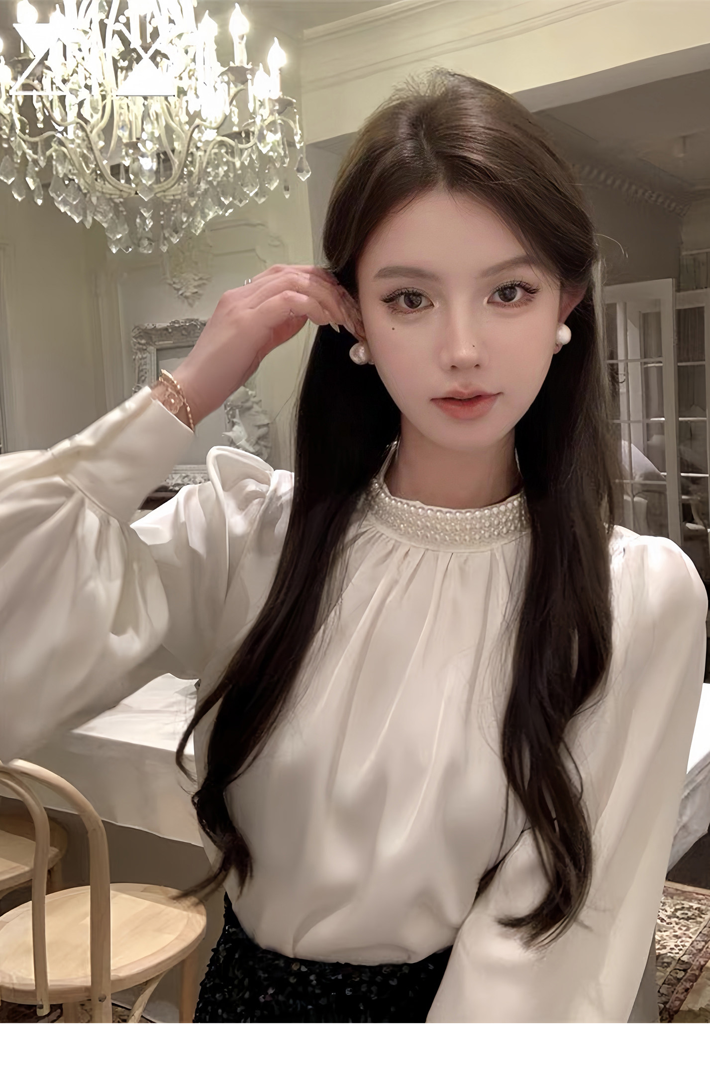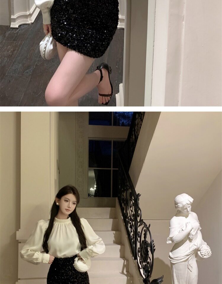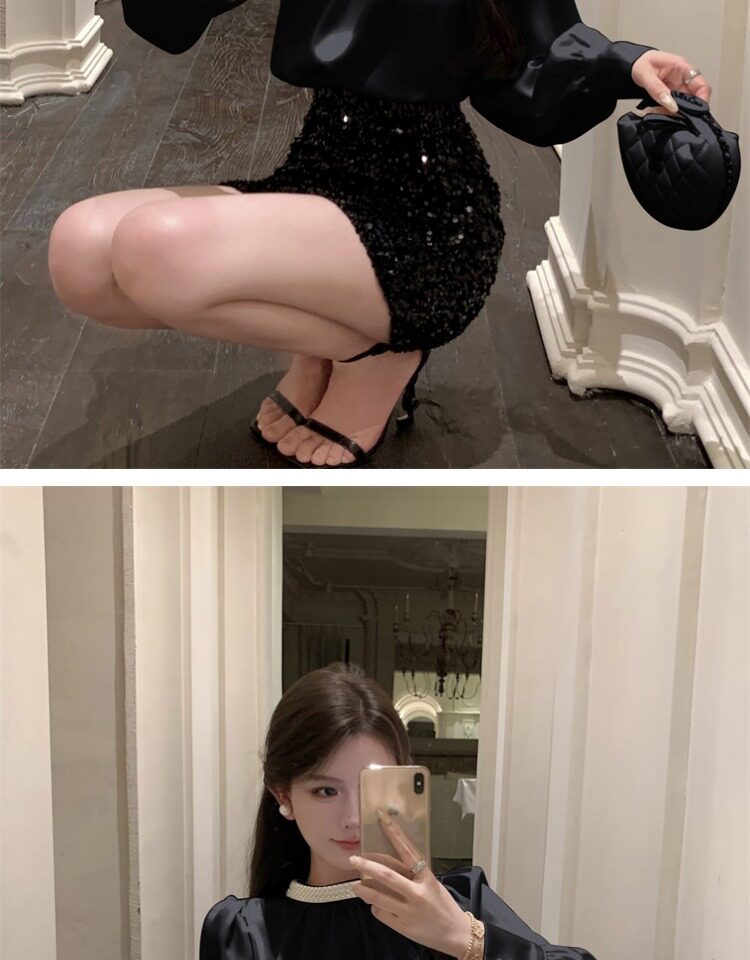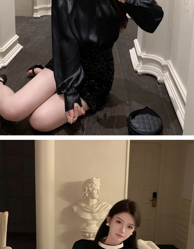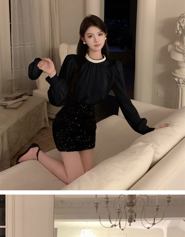 法式富家千金襯衫女宮廷風輕奢高級感穿搭珍珠緞面白色小資上衣