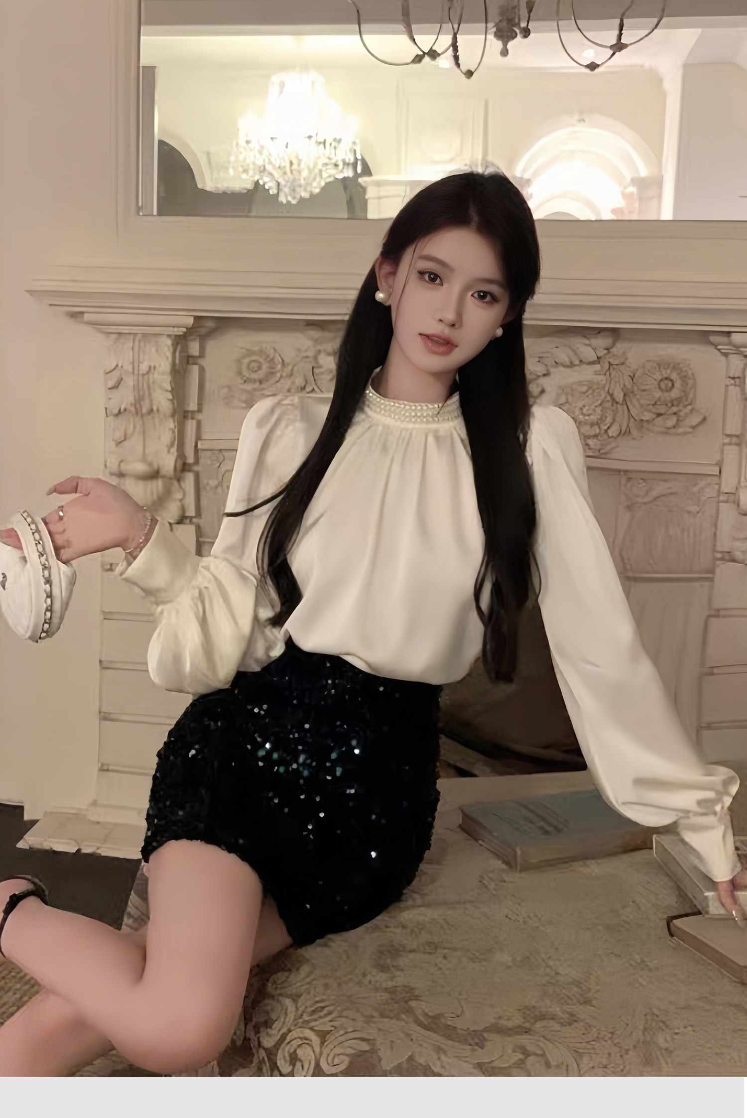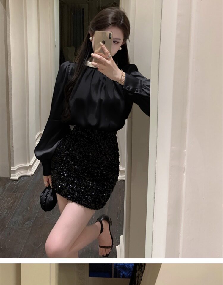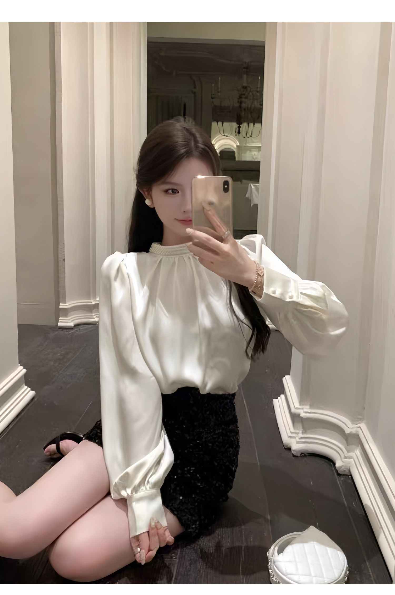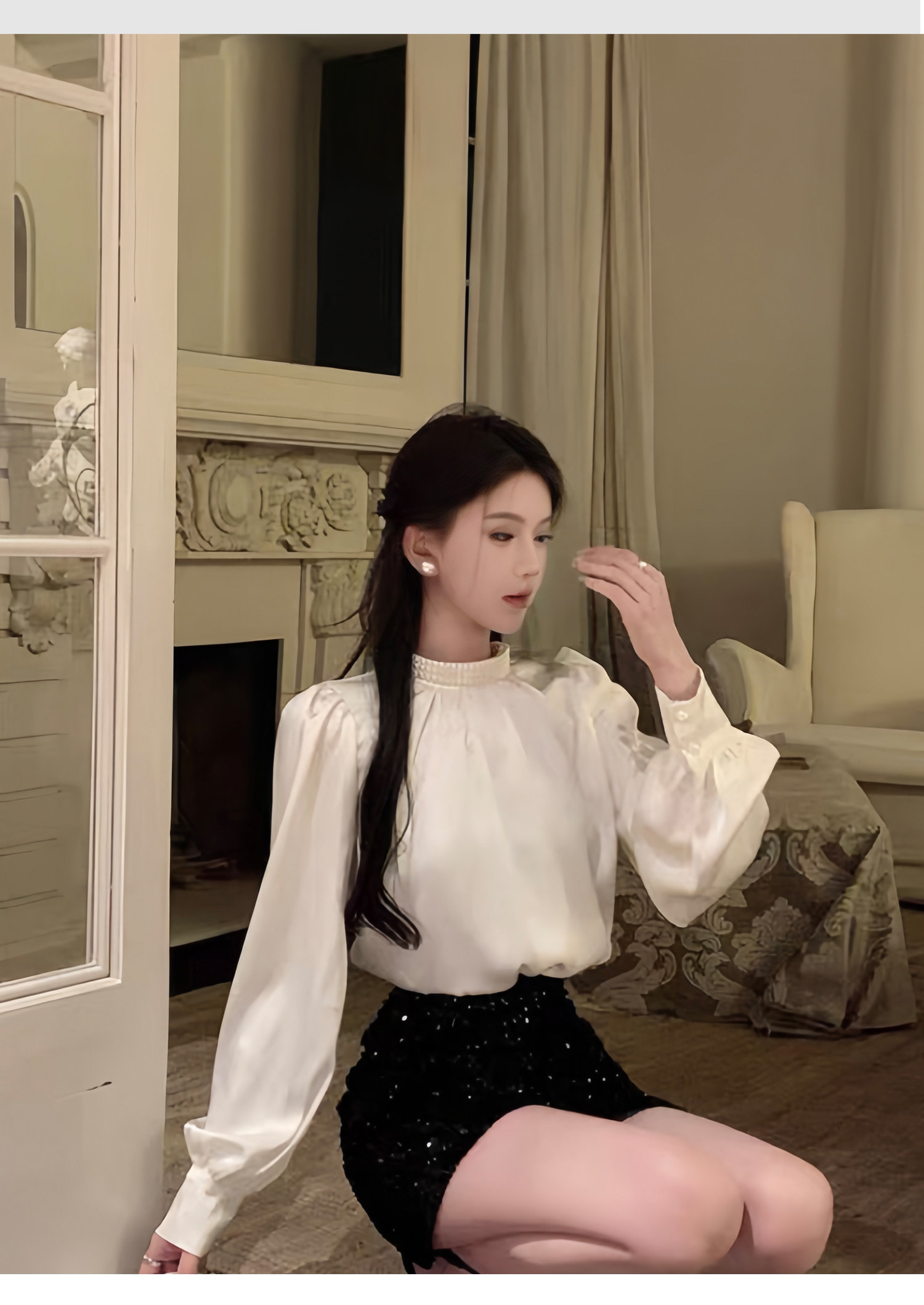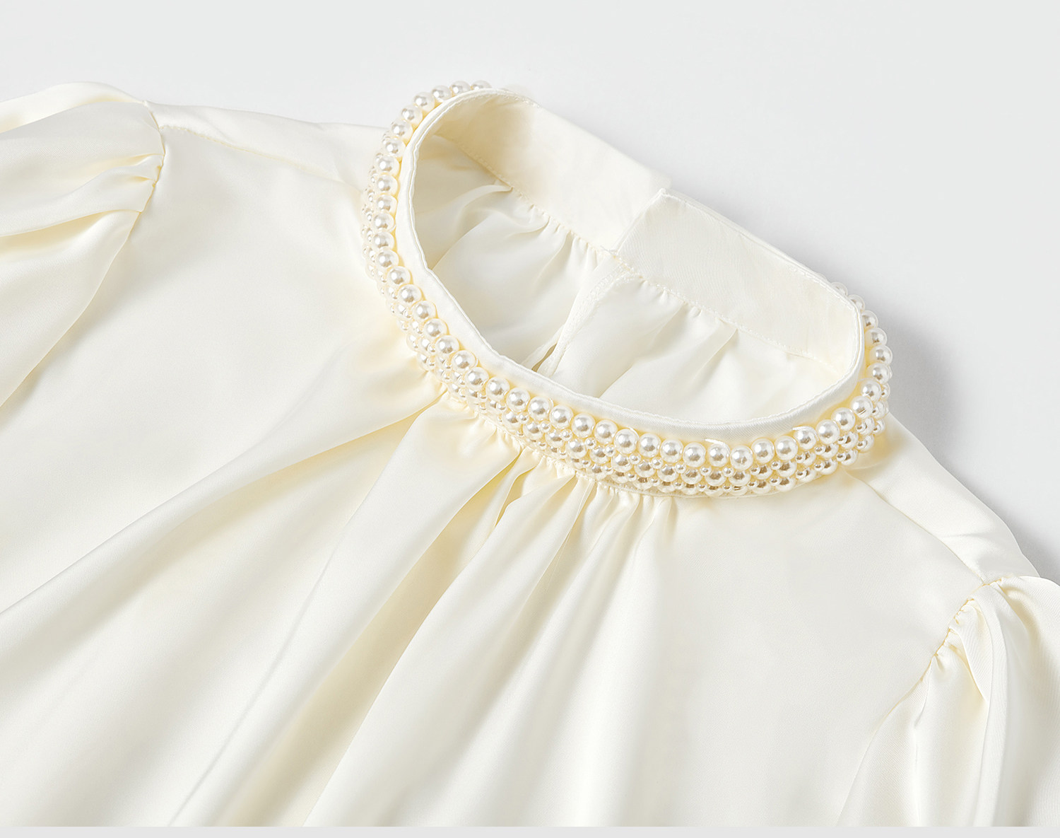 法式富家千金襯衫女宮廷風輕奢高級感穿搭珍珠緞面白色小資上衣
