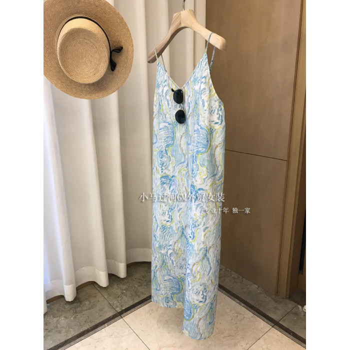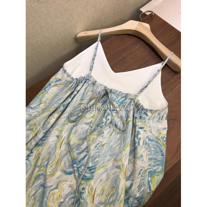 絕絕子,上身紙片人既視感!夏日穿搭藝術油畫印花顯瘦吊帶開叉裙