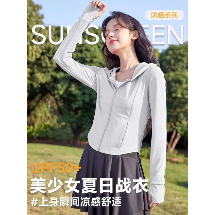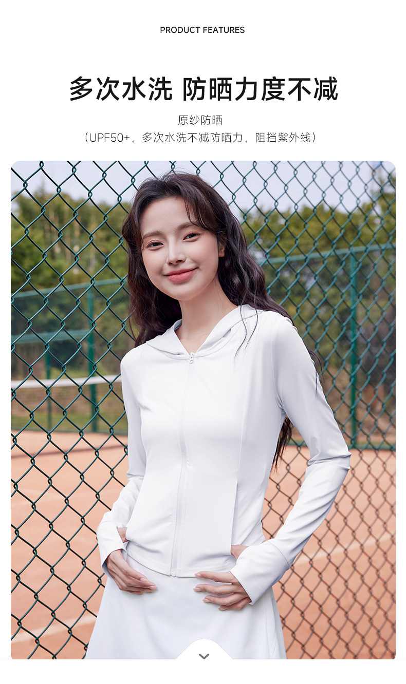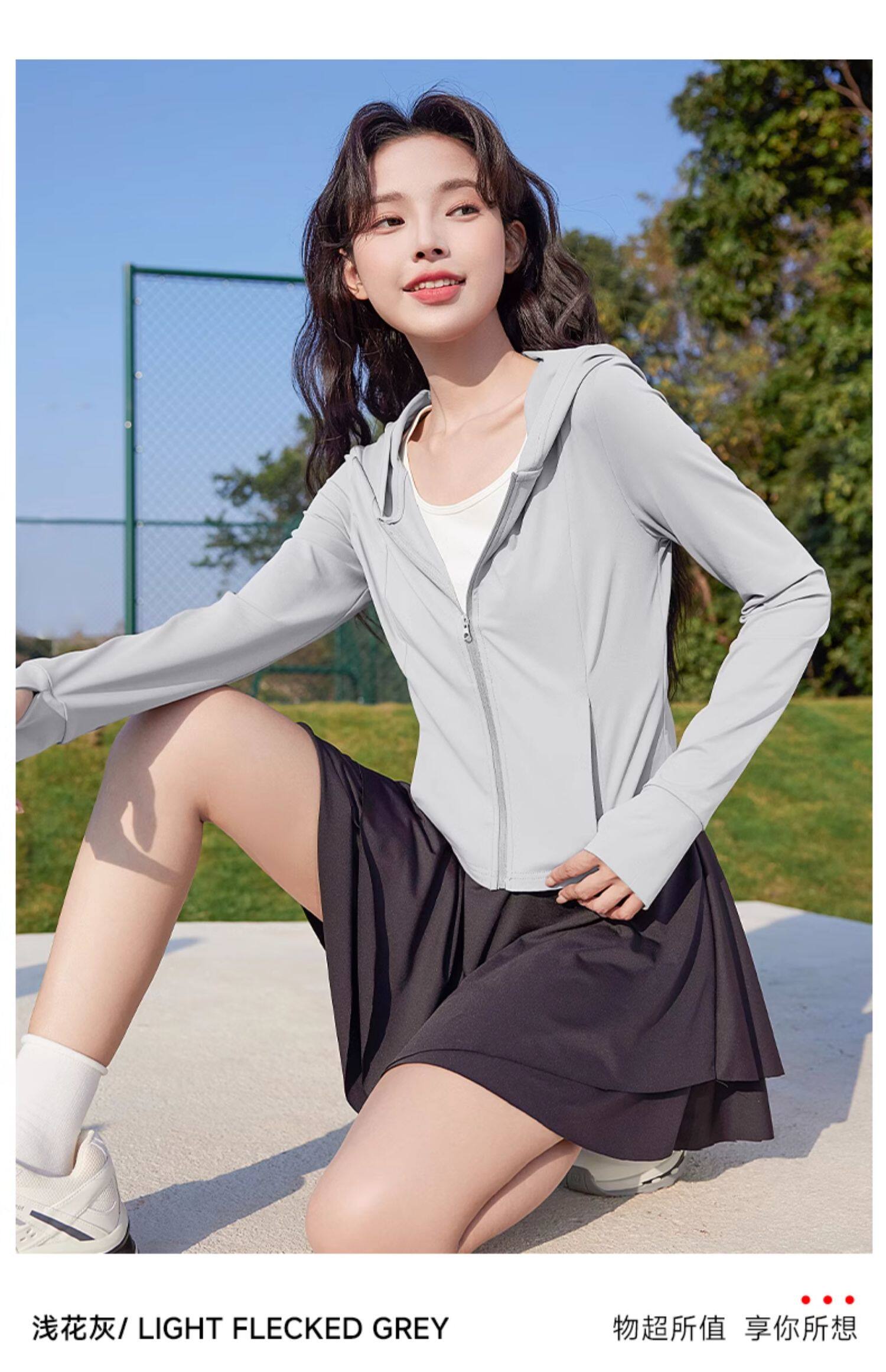 班尼路中灰色修身防曬衣女2026夏季新款涼感防紫外線連帽外套女N