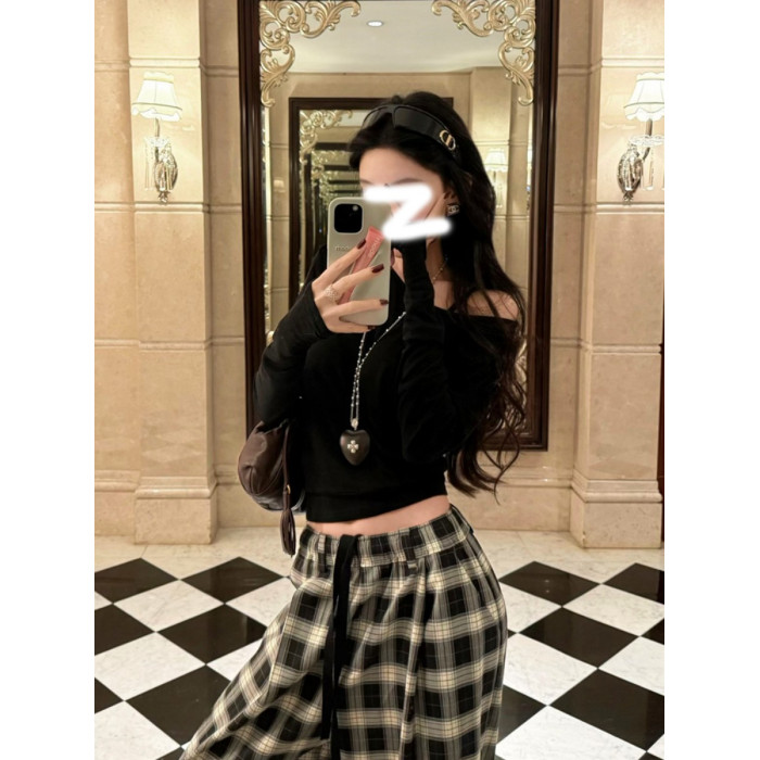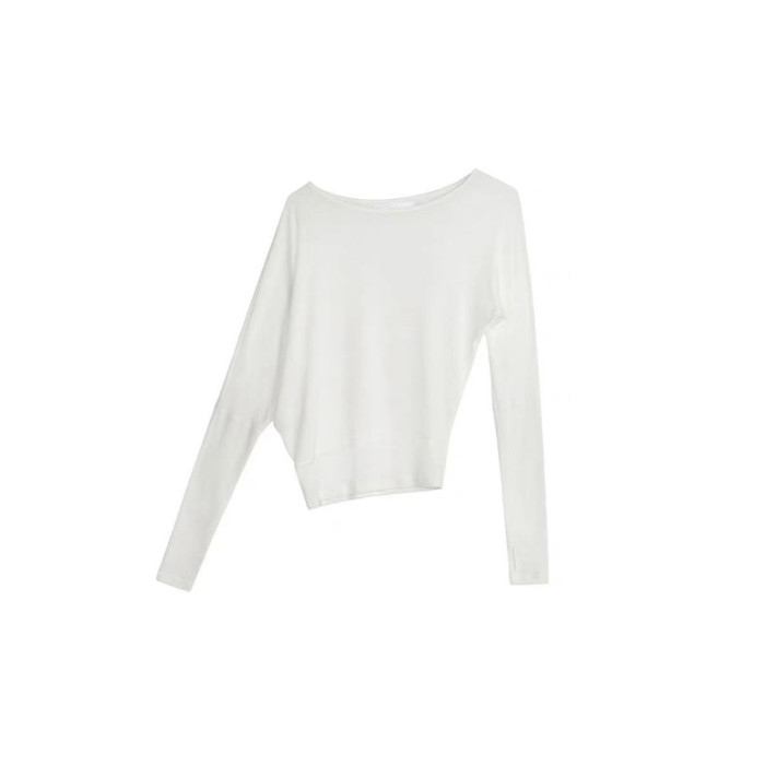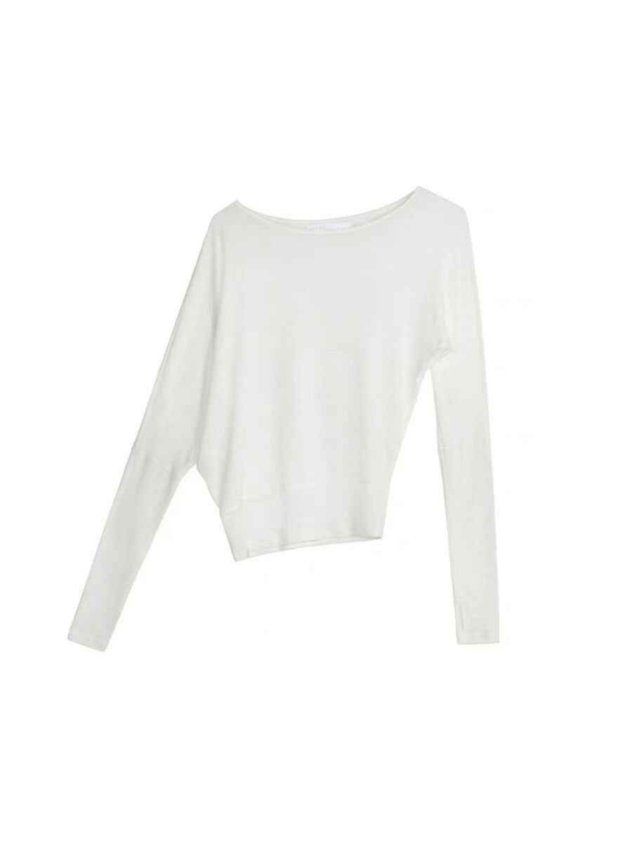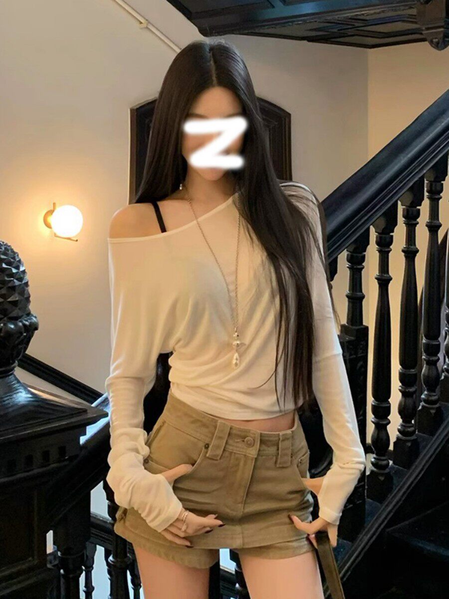 辣妹穿搭一字領斜肩防曬罩衫長袖t恤女夏季寬鬆性感露肩短款上衣
