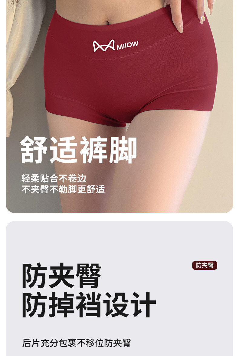 貓人內褲女士純棉抗菌全棉襠無痕中腰2026新款女生大碼平四角短褲