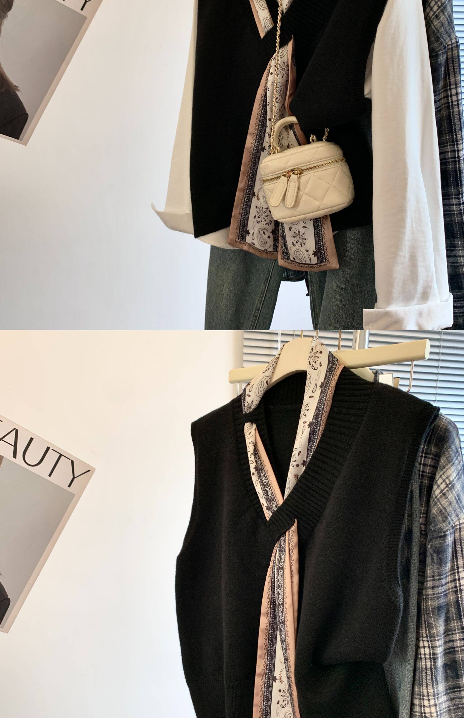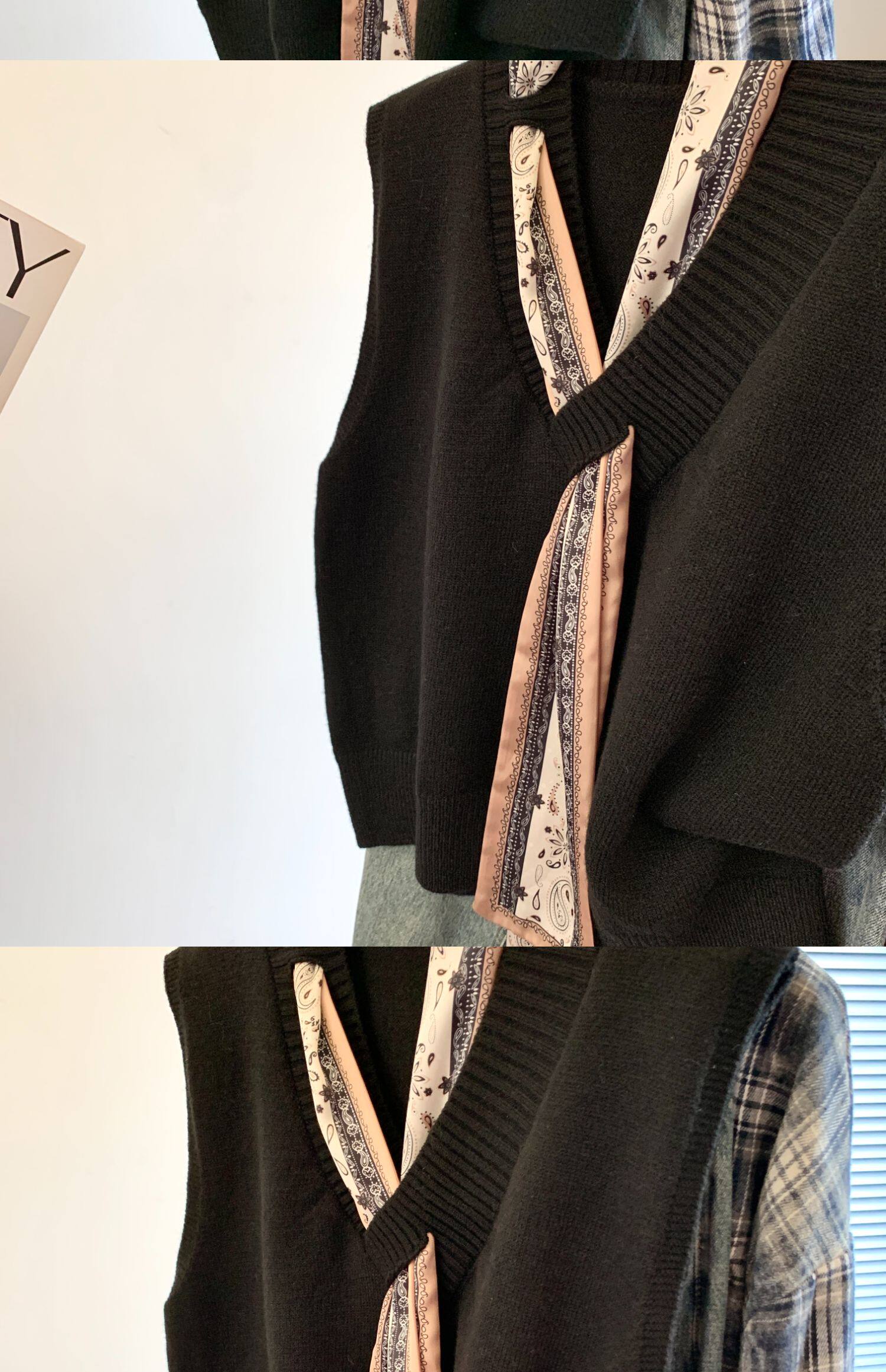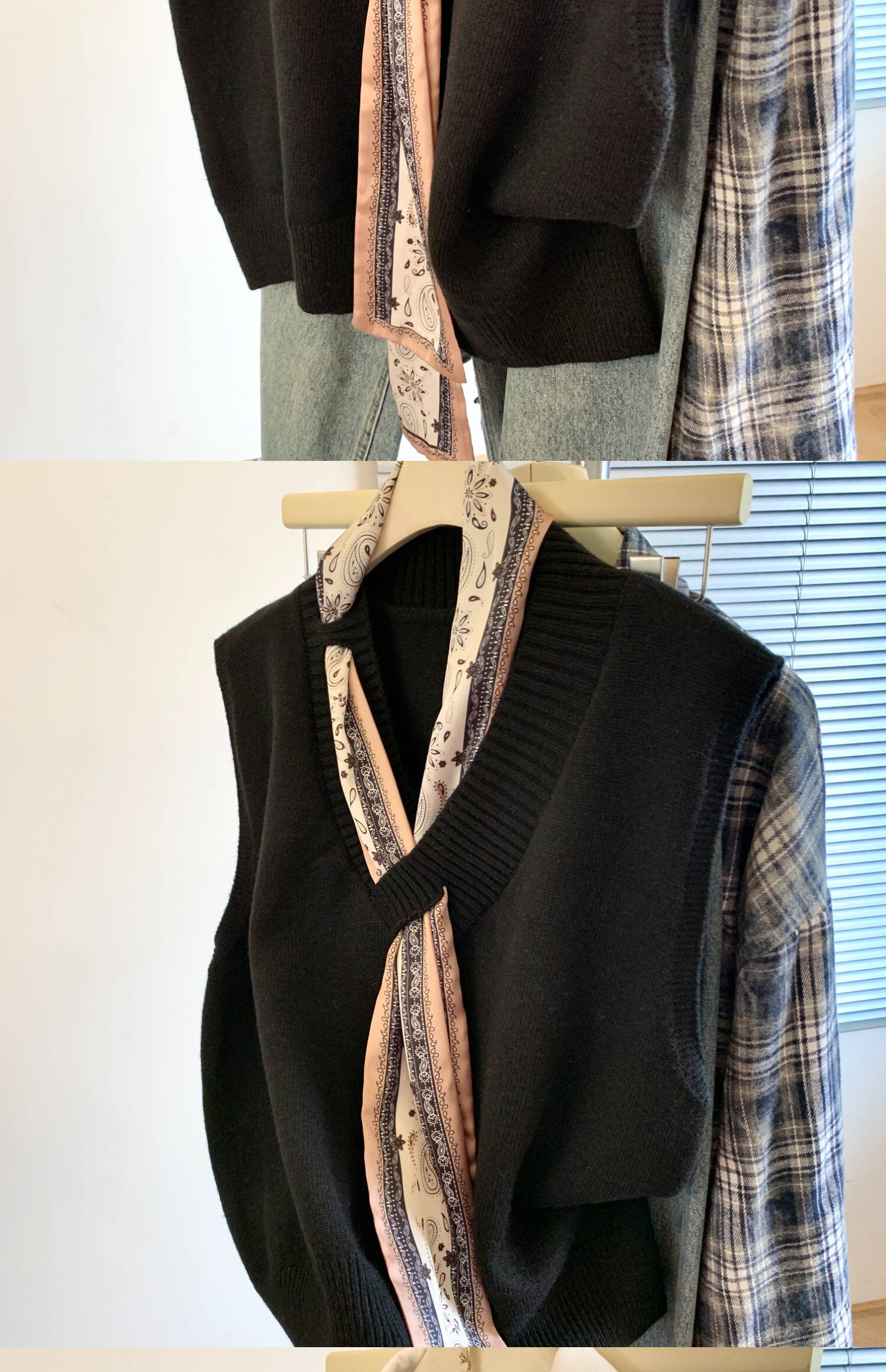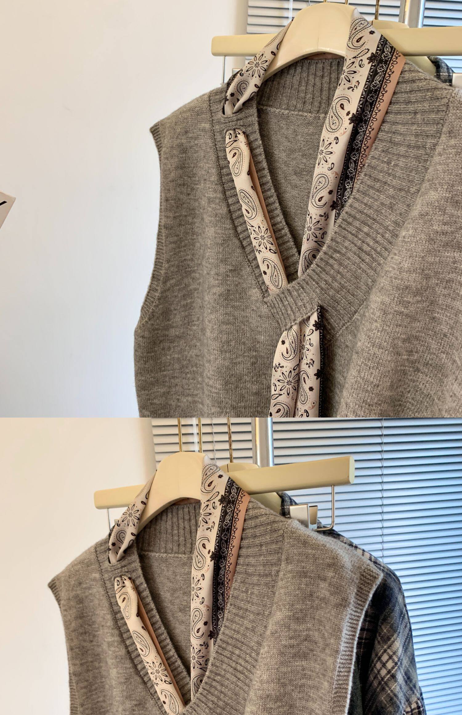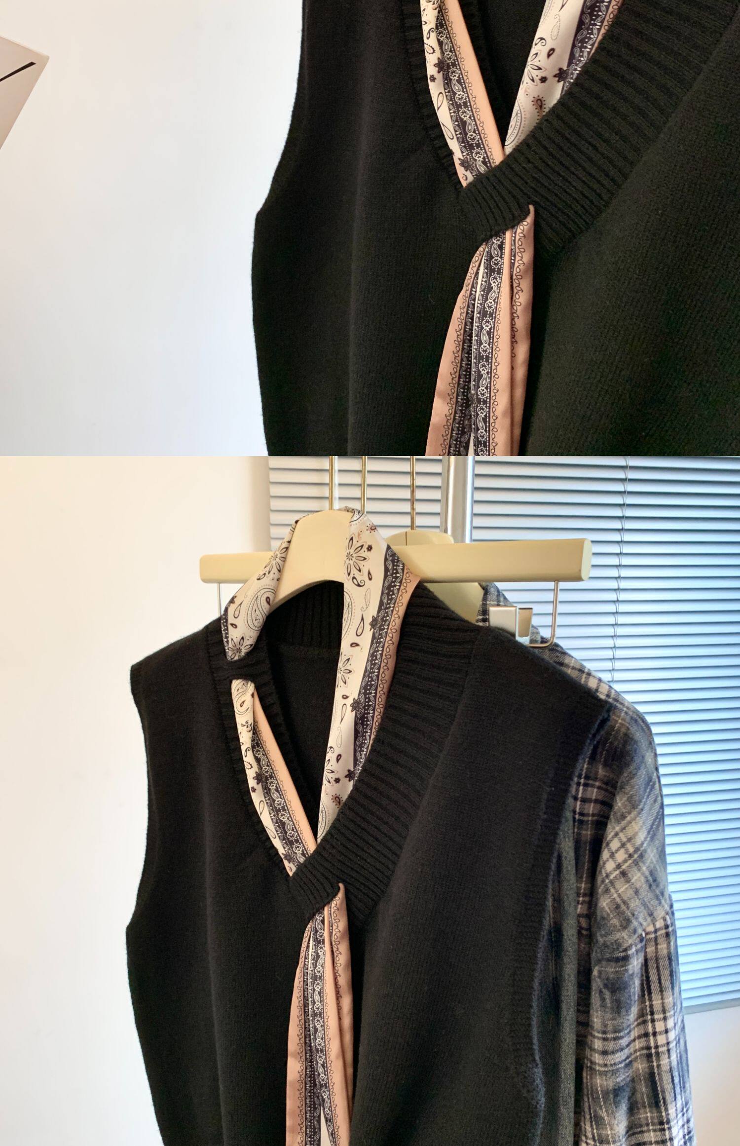 專櫃撤廻剪標設計感絲巾配飾馬甲女2025新款POLO領襯衫曡穿兩件套