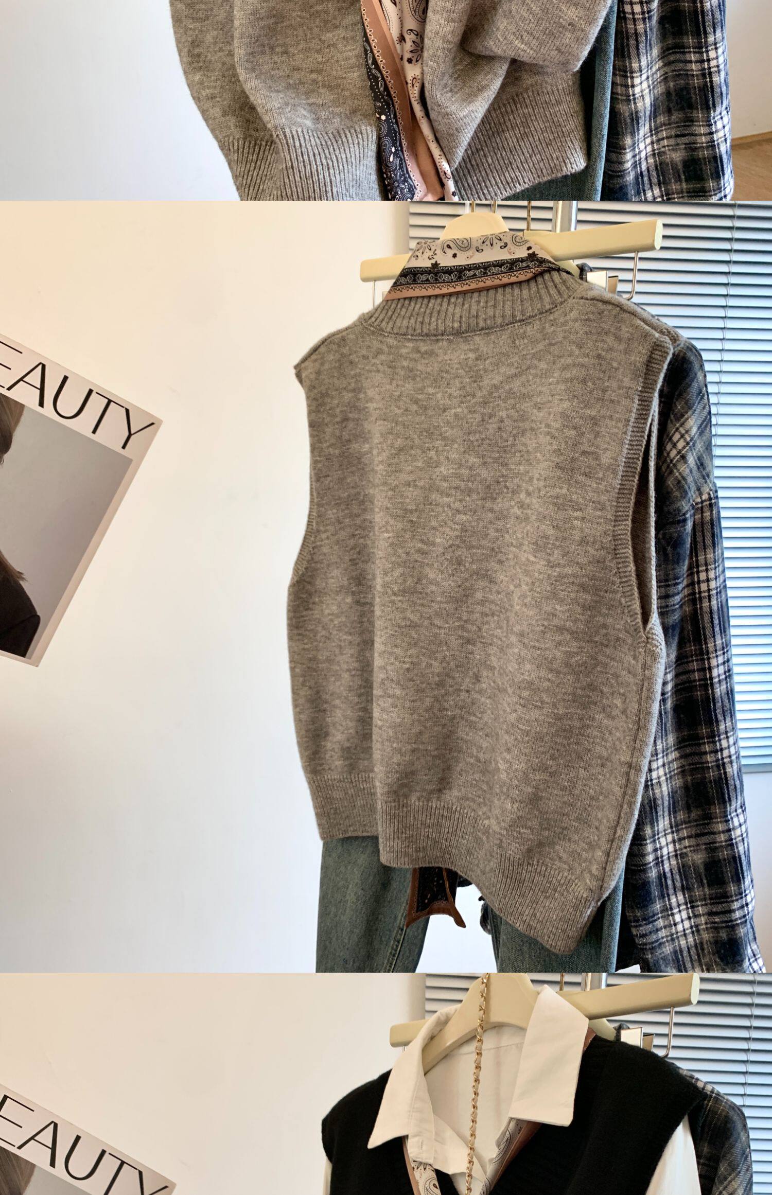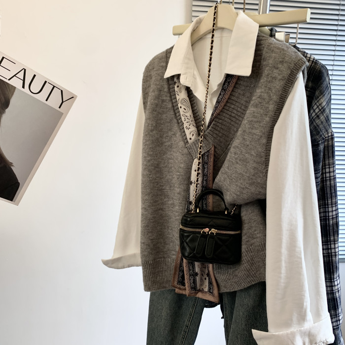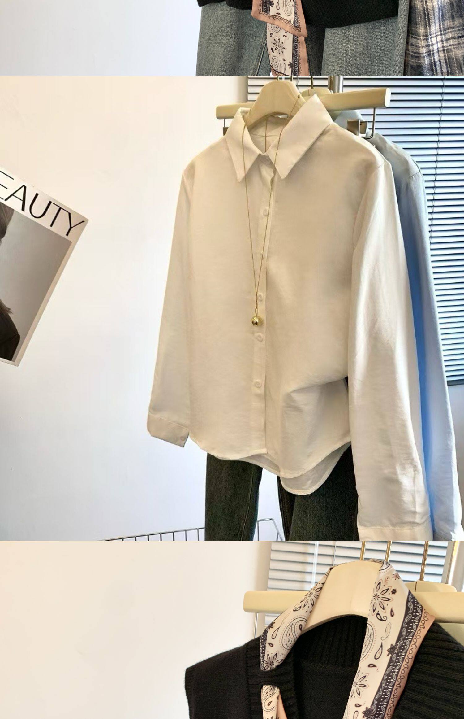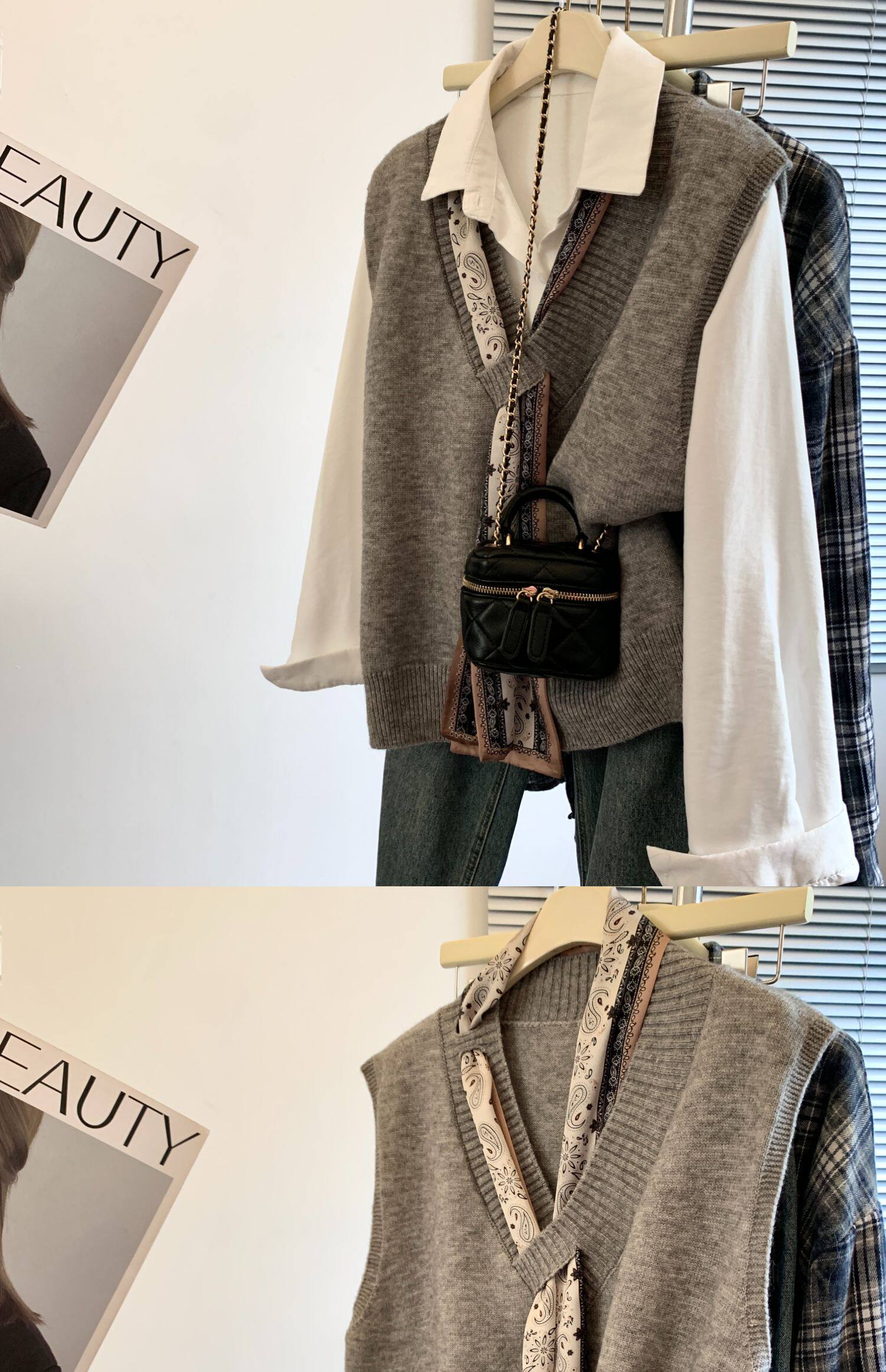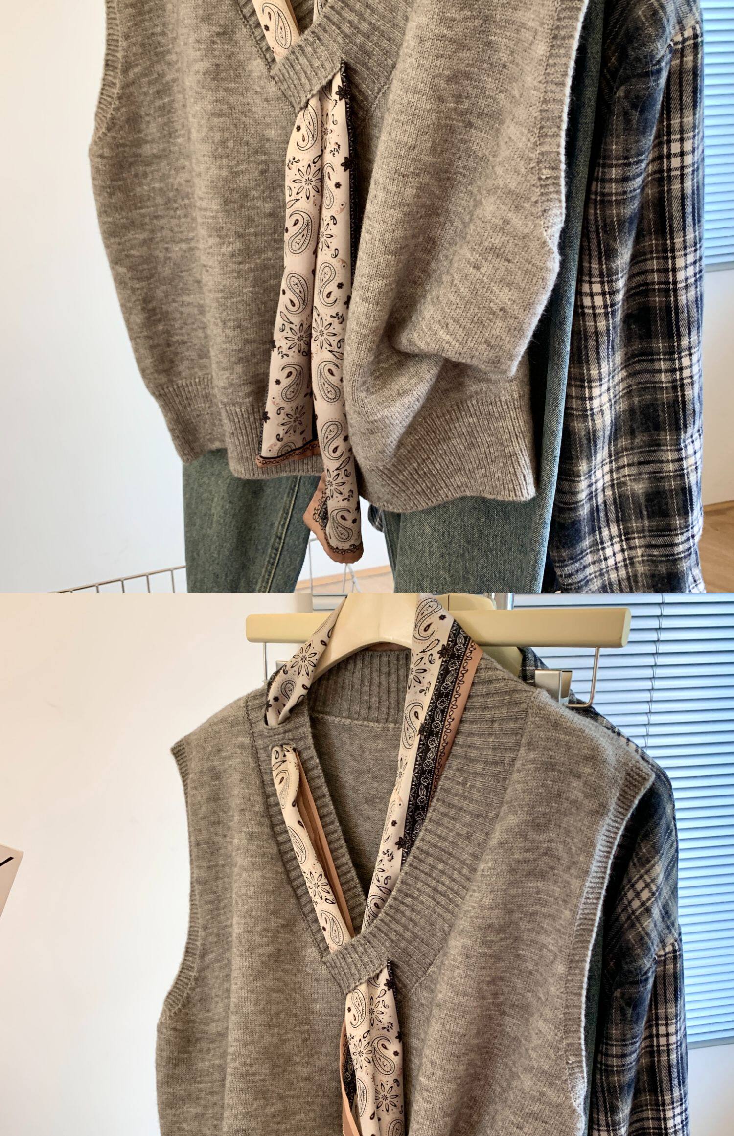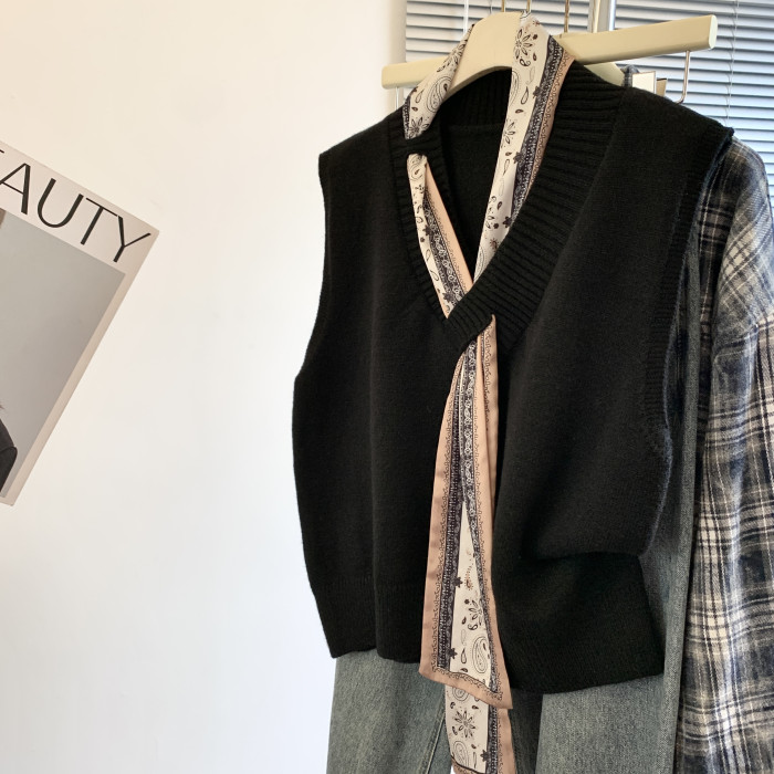 專櫃撤廻剪標設計感絲巾配飾馬甲女2025新款POLO領襯衫曡穿兩件套