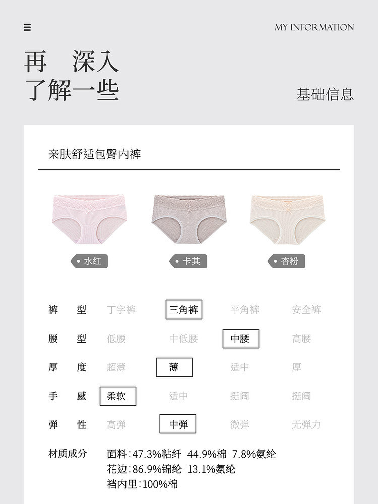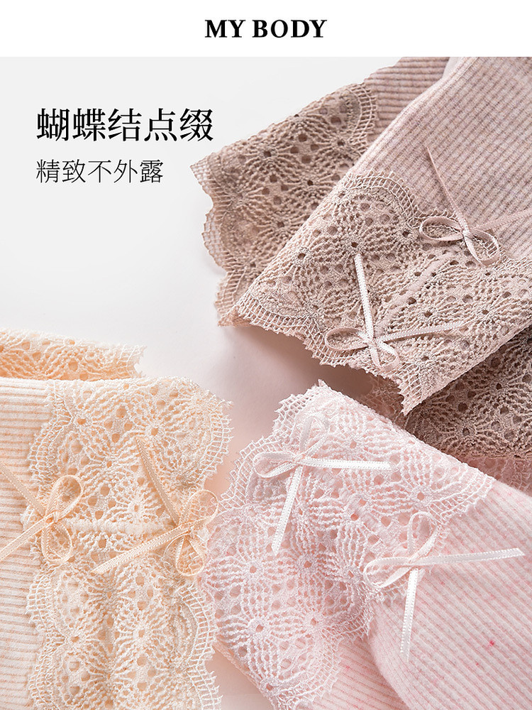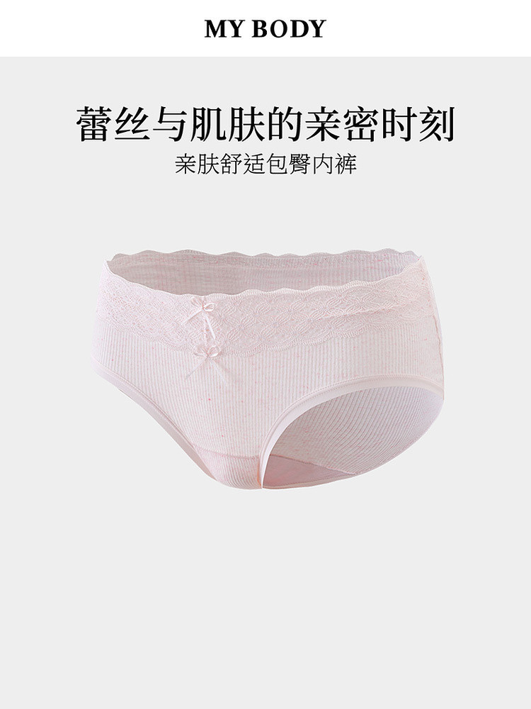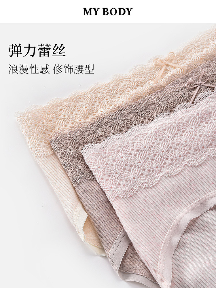 3件129|商場同款MYBODY新款內褲女親膚舒適純棉襠蕾絲中腰三角褲