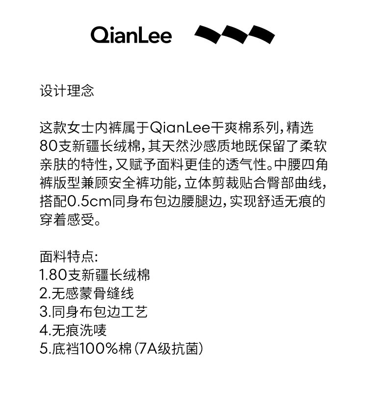 QianLee新疆長絨棉平角內褲女純棉襠透氣中腰舒適四角短褲安全褲