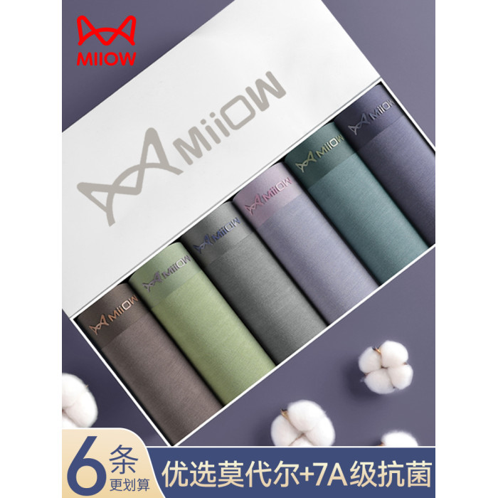 貓人男士內褲男生莫代爾純棉襠夏季四角底褲頭透氣平角運動短褲衩