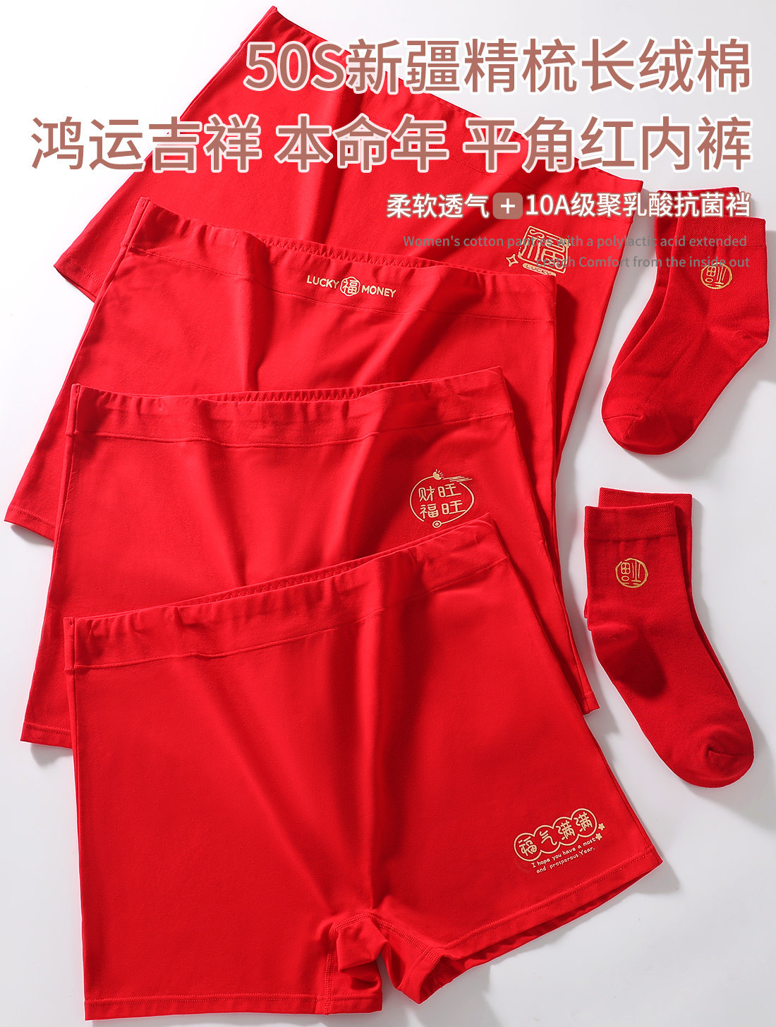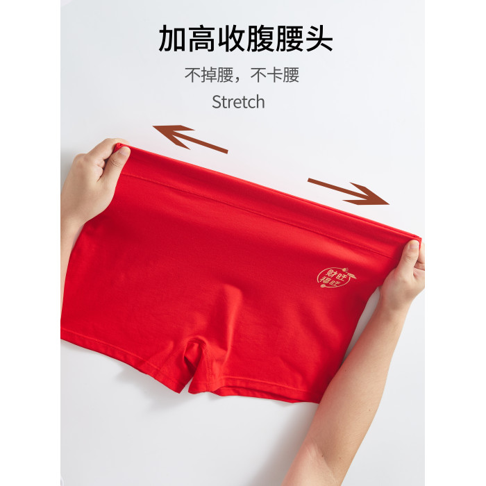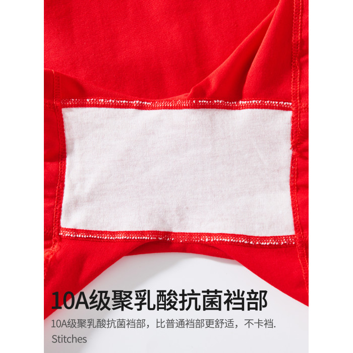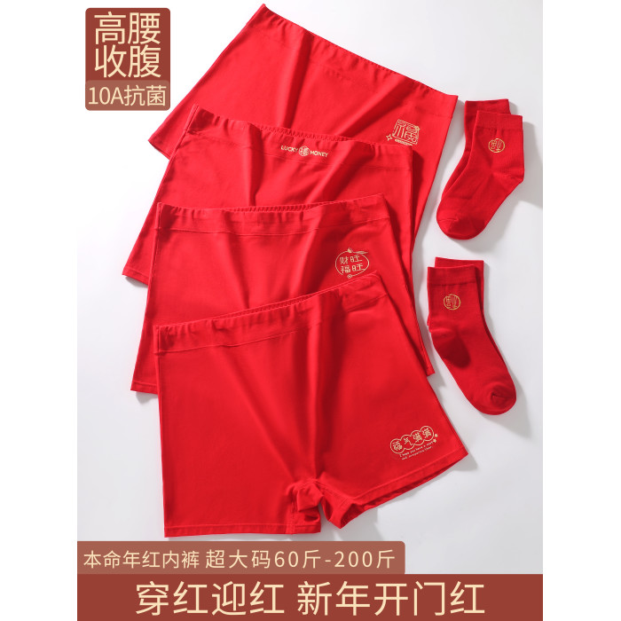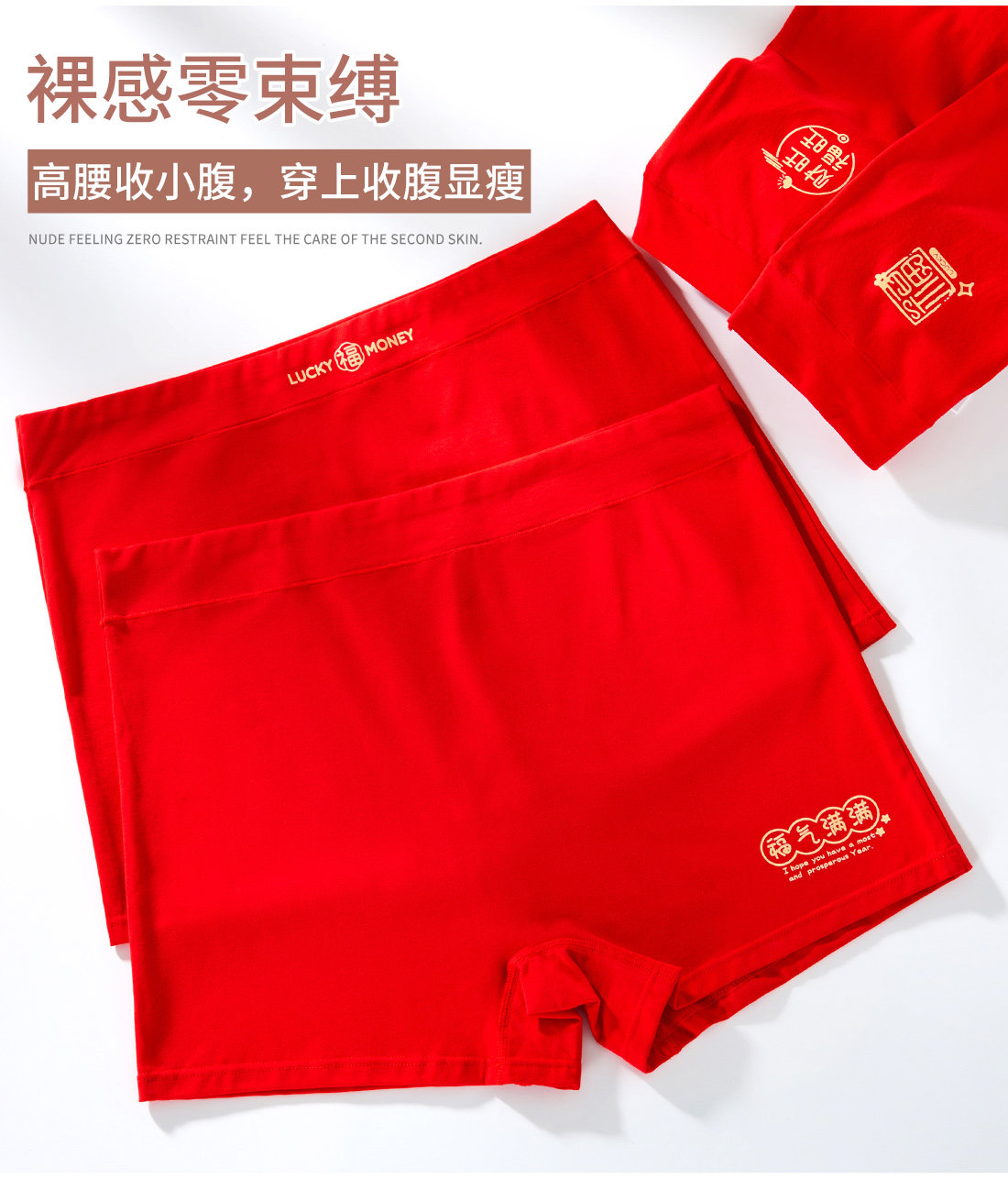 女士內褲高腰大碼全棉A類胖MM200斤本命年平角褲女大紅色結婚短褲