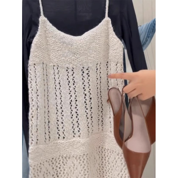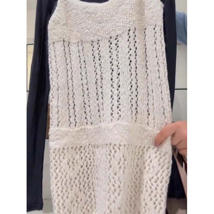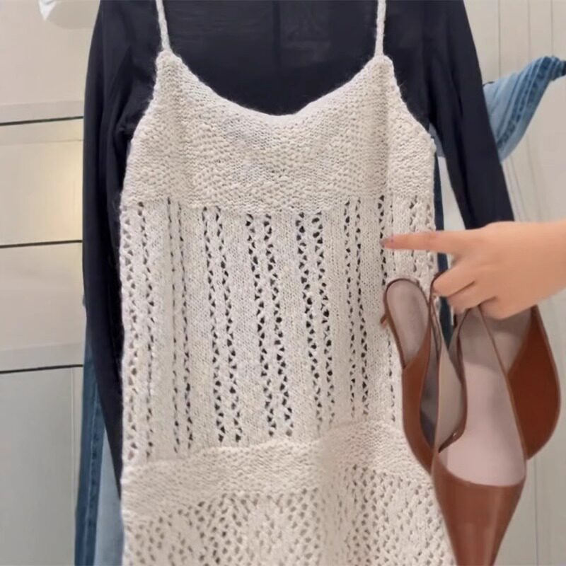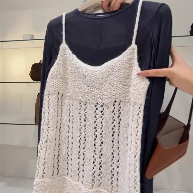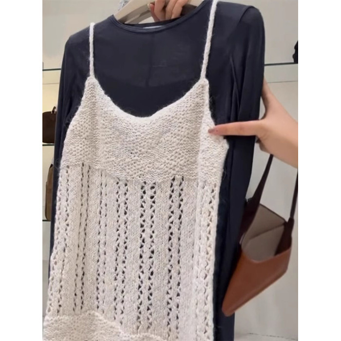 巨愛!簡直是絕了,時髦慵懶風曡穿T恤女+鏤空針織吊帶上衣兩件套