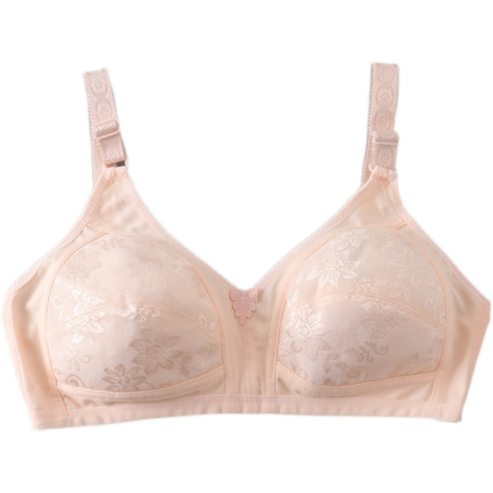 超薄款純棉無鋼圈文胸中老年媽媽無海綿內衣女大碼調整型蕾絲胸罩