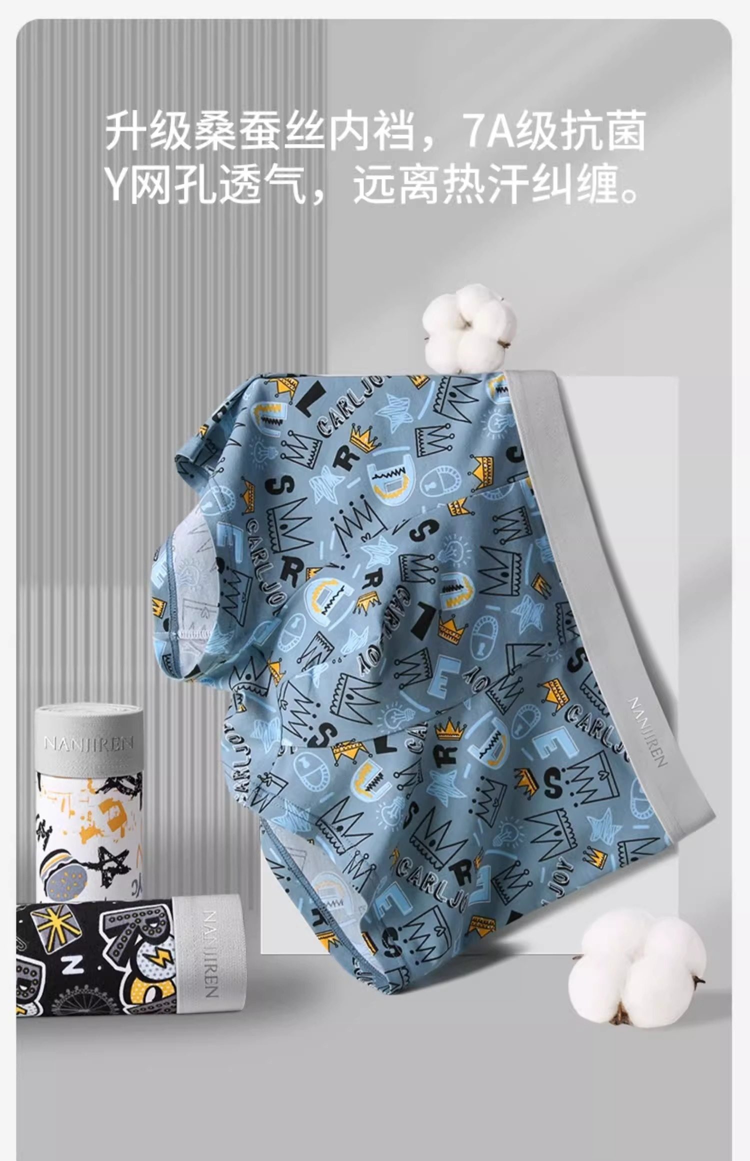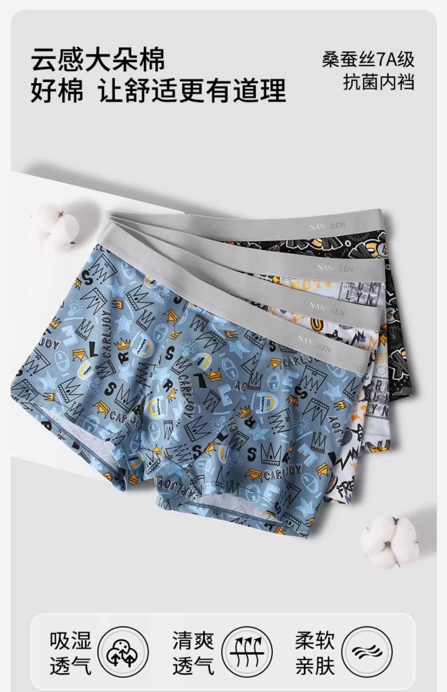 南極人內褲男純棉抗菌青少年運動寬鬆大碼潮流印花平角褲頭夏薄款