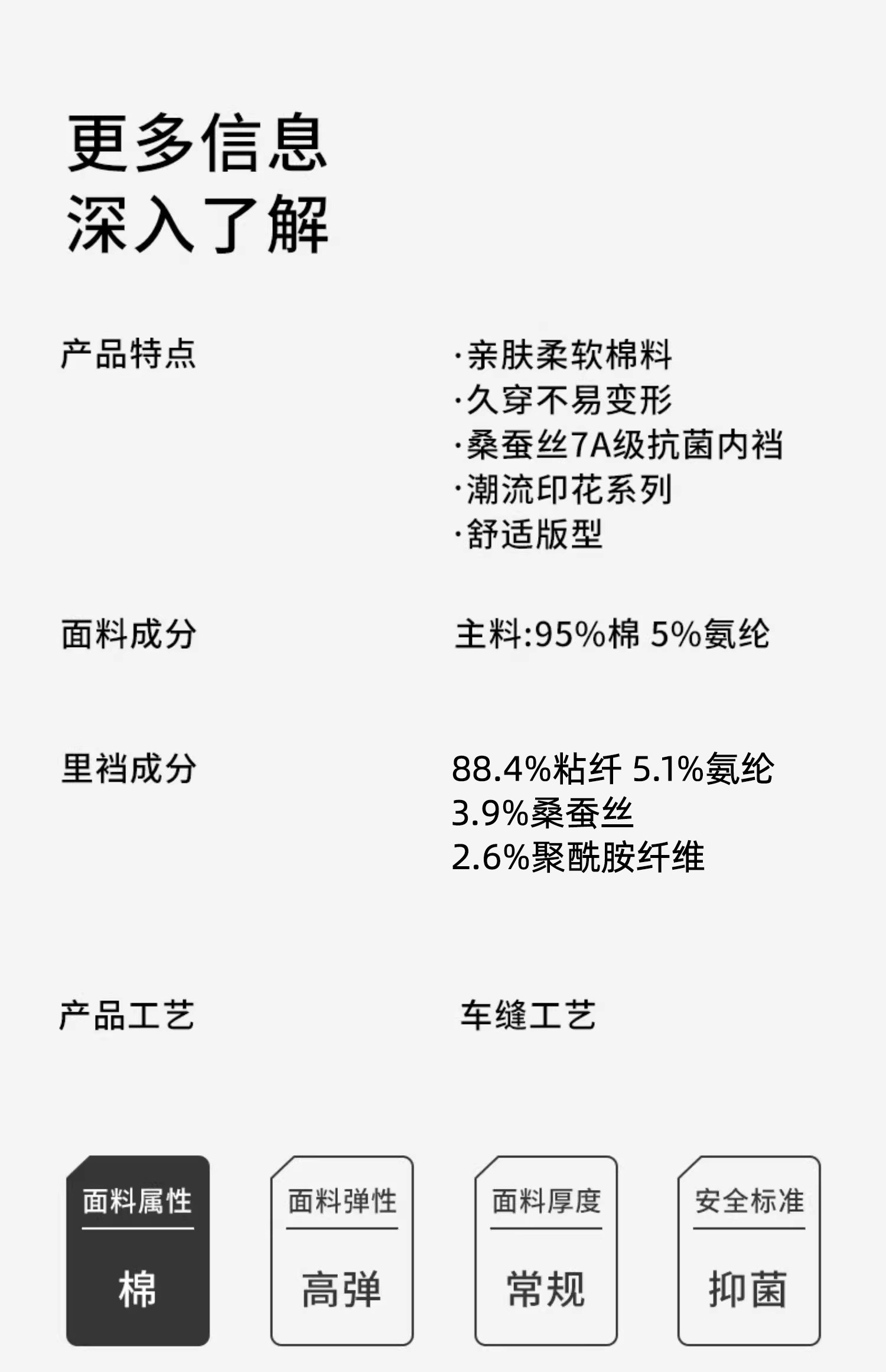 | 襠部材質成分 | 棉95% 聚氨酯彈性纖維(氨綸)5% |