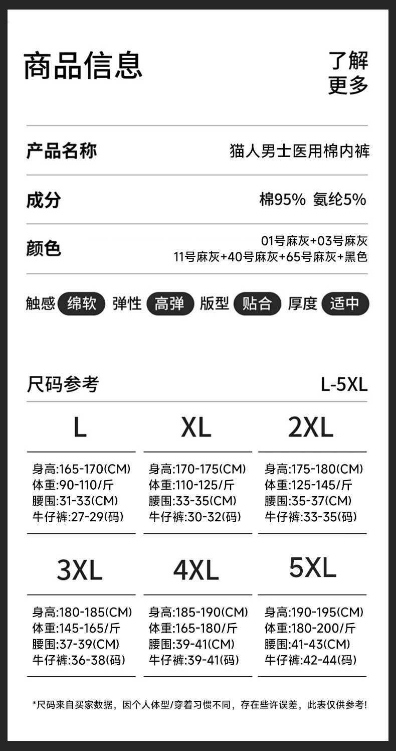 | 大身材質成分 | 棉95% 聚氨酯彈性纖維(氨綸)5% |