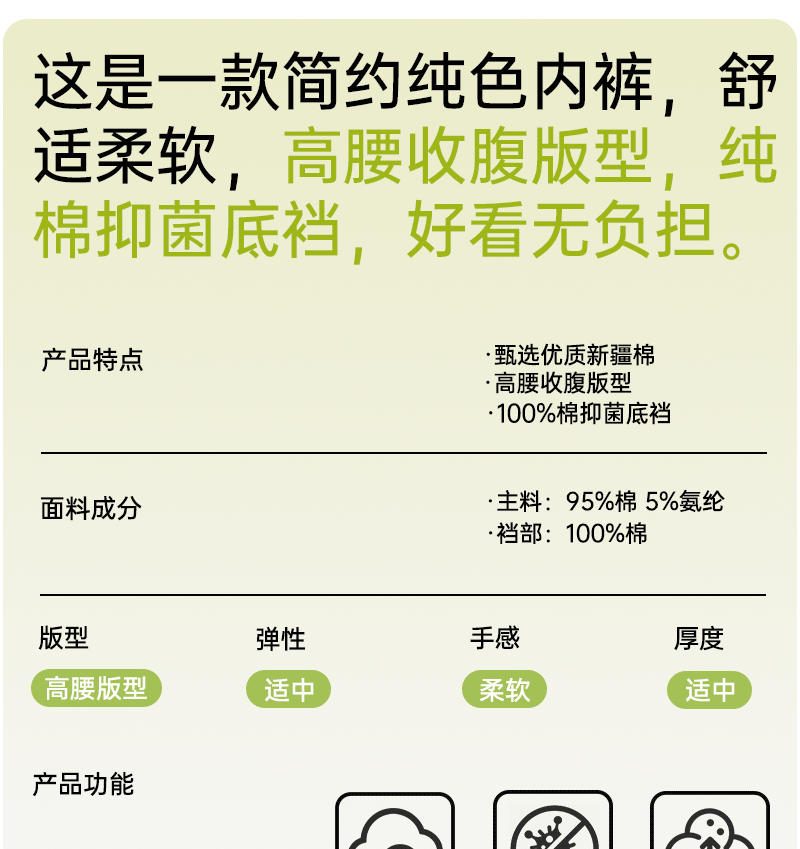 蝶安芬高腰內褲女士純棉抗菌襠2026新款全棉襠無痕透氣女生小平角