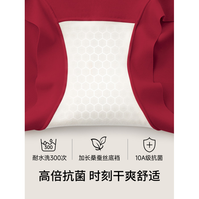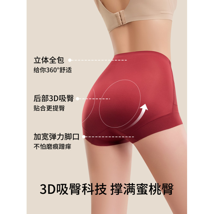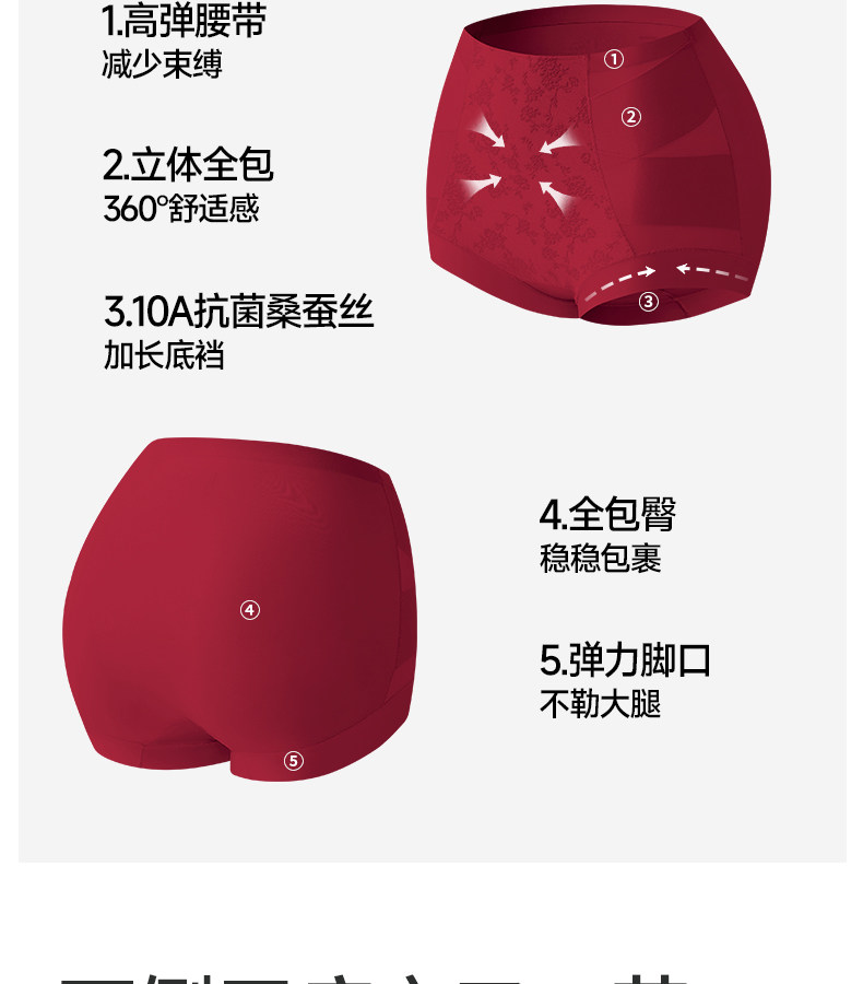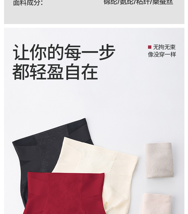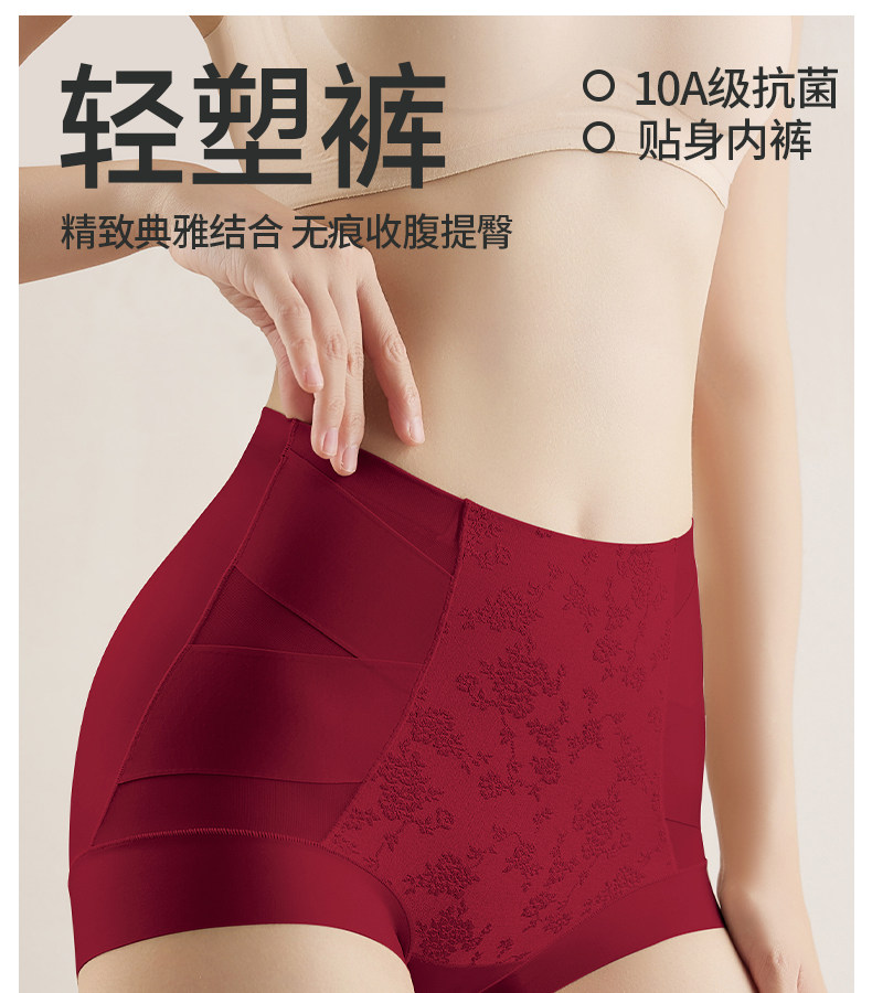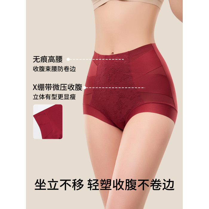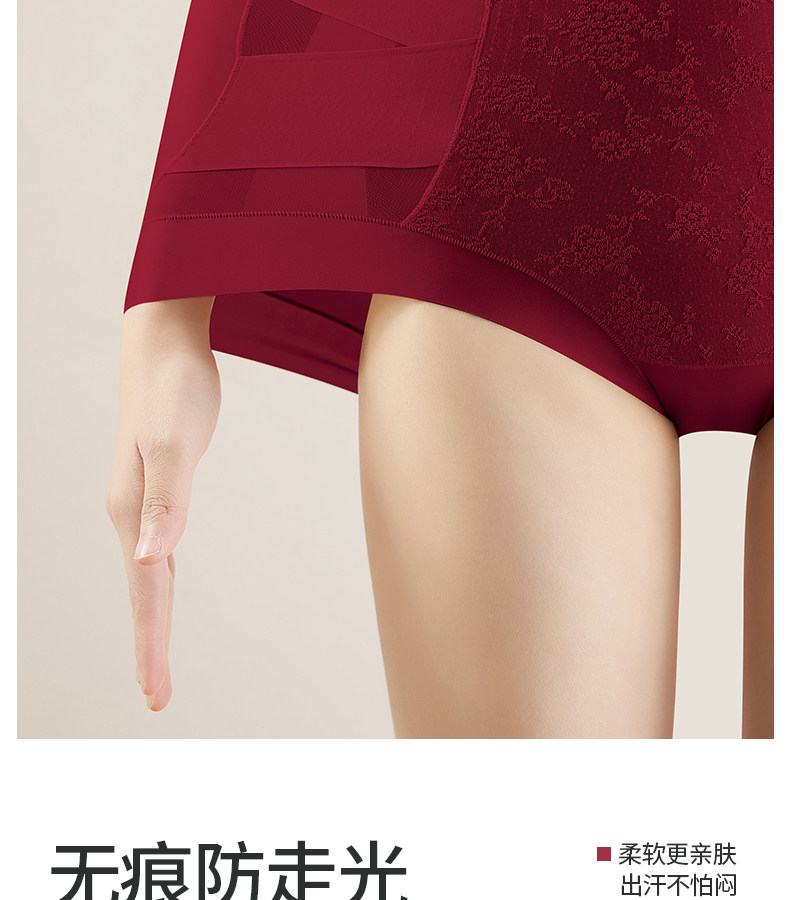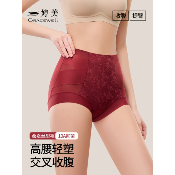 婷美本命年高腰收腹內褲女強力收小肚子桑蠶絲10A抗菌産後短褲女