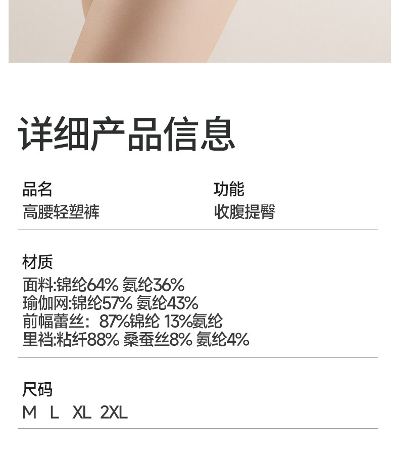 | 大身材質成分 | 聚醯胺纖維(錦綸)64% 聚氨酯彈性纖維(氨綸)36% |