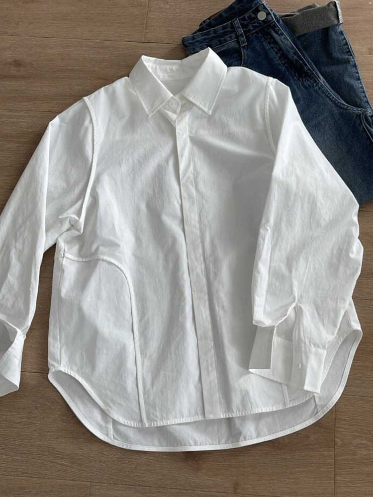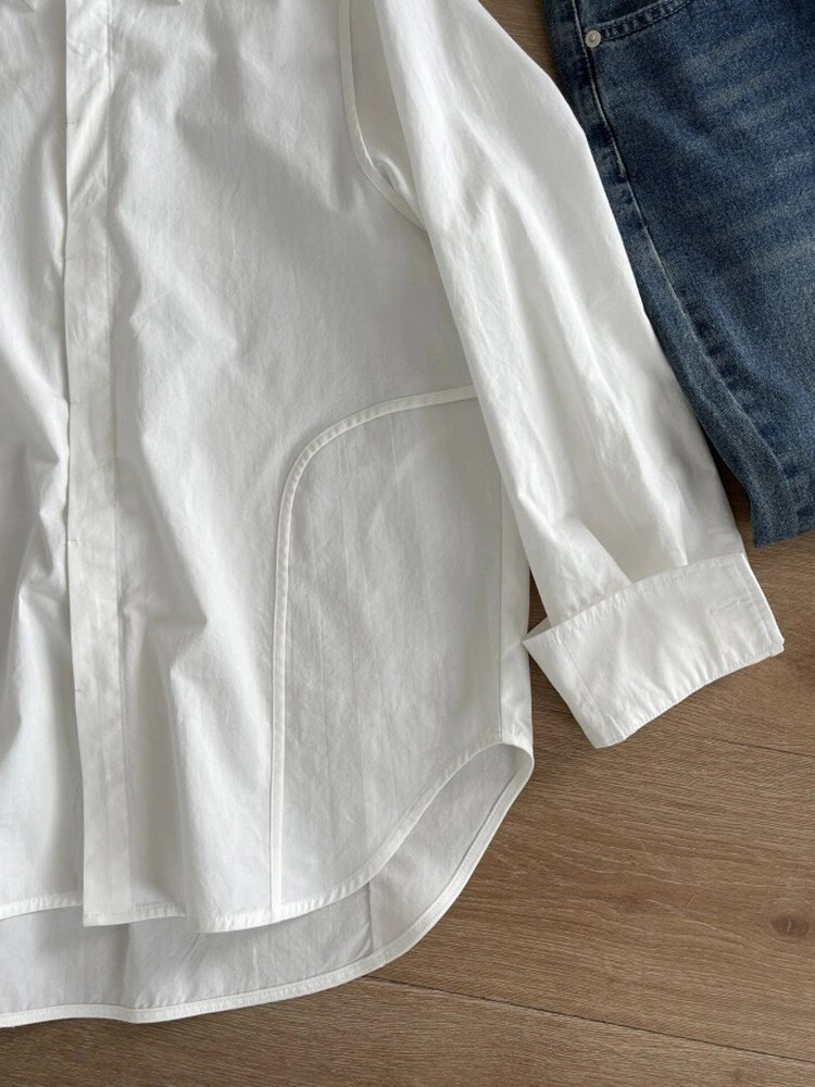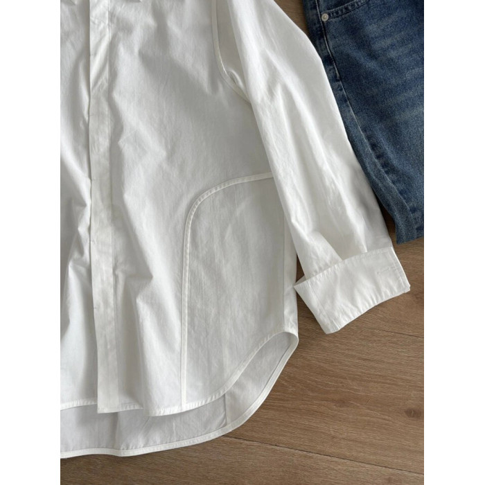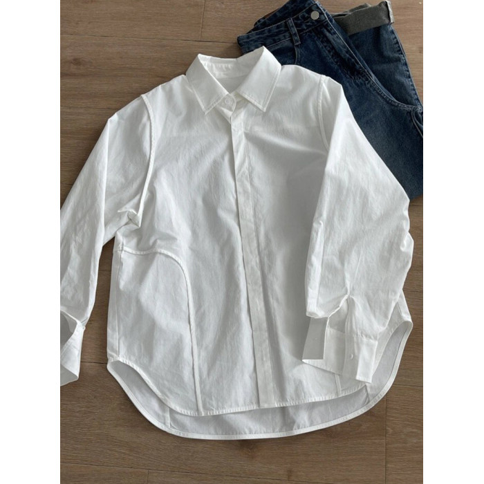 復古港風白色天絲長袖chic襯衫女2025獨特別致小衆高級感氣質襯衣