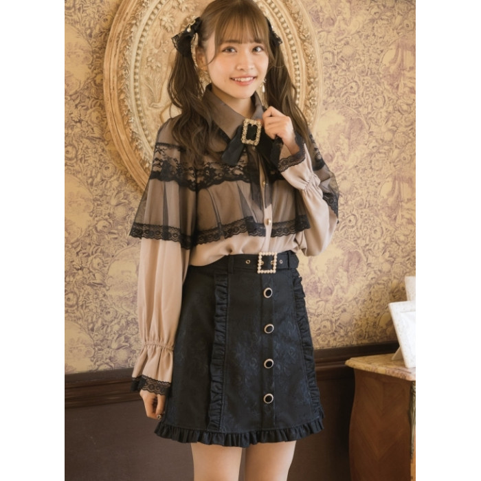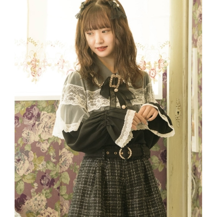 鬥篷襯衫長袖蕾絲顯瘦黑色不掉色披肩1131罩紗襯衫。