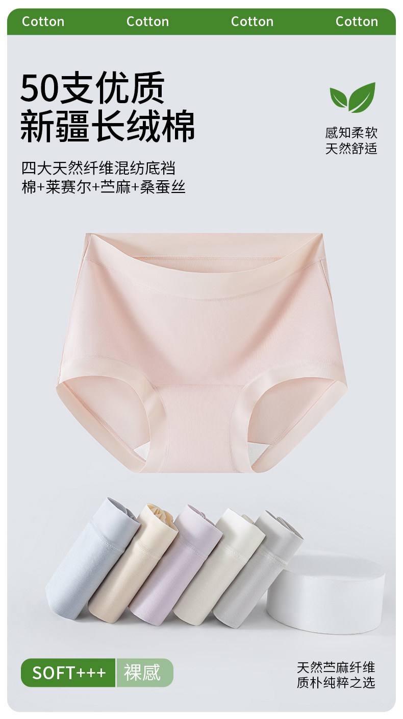 蝶安芬內褲女士純棉抗菌苧麻桑蠶絲襠2026新款無痕少女生平角短褲