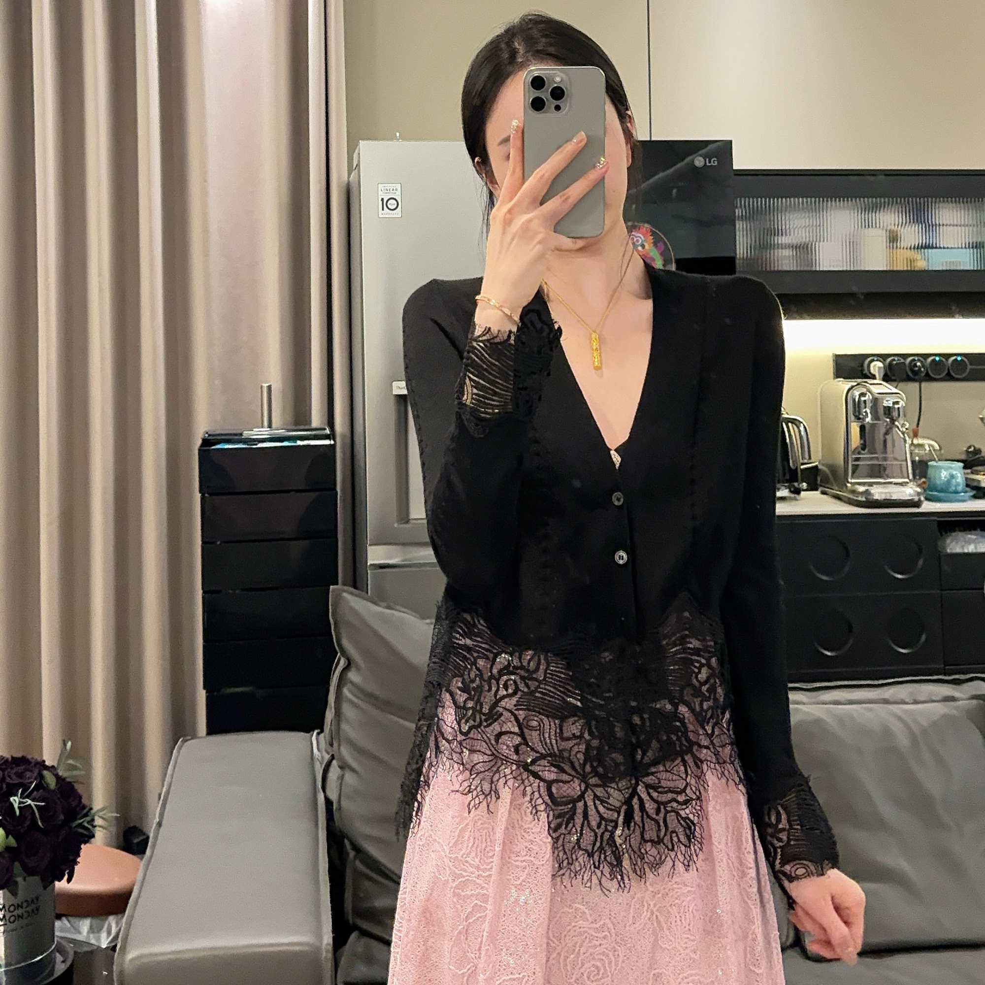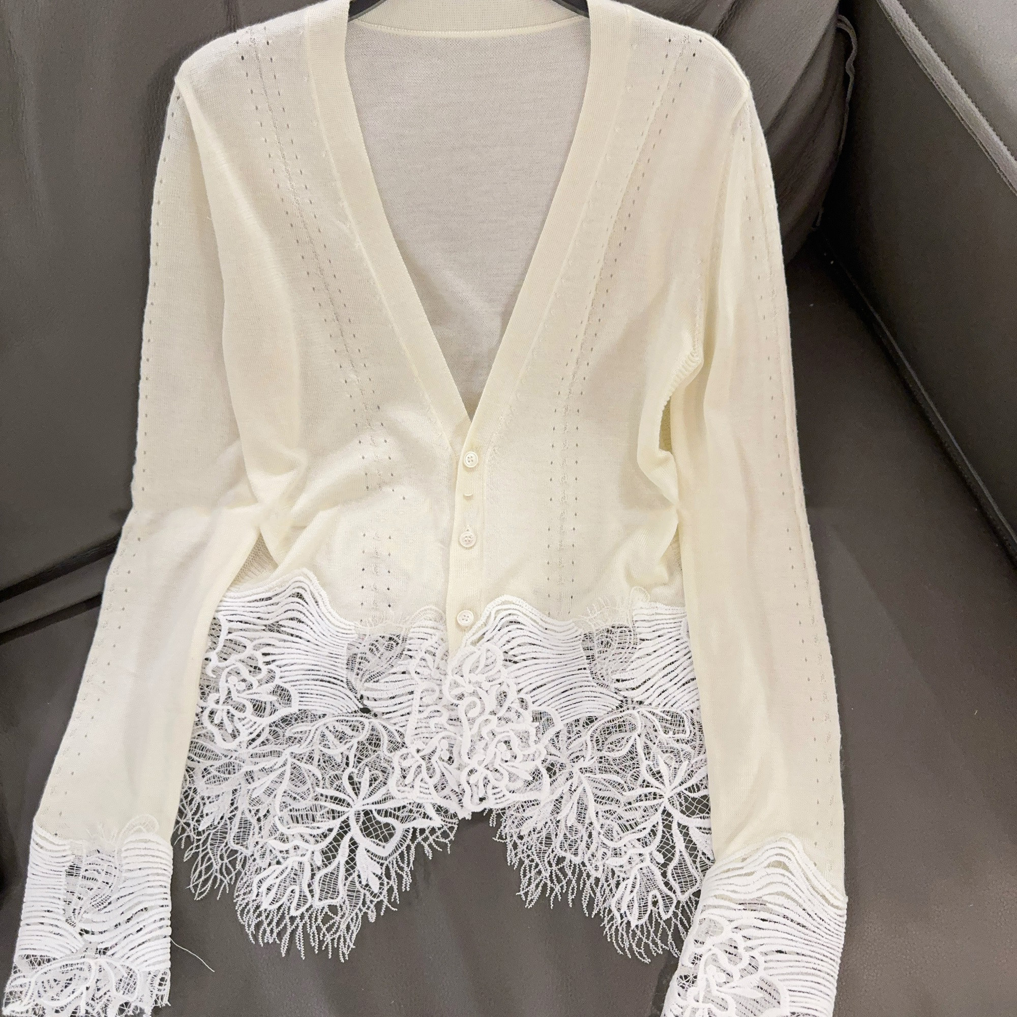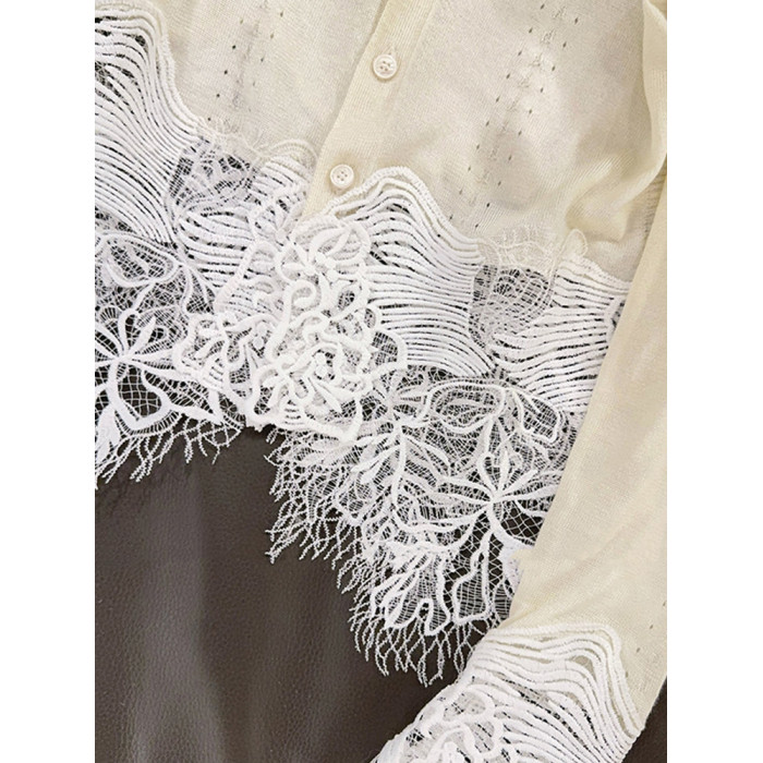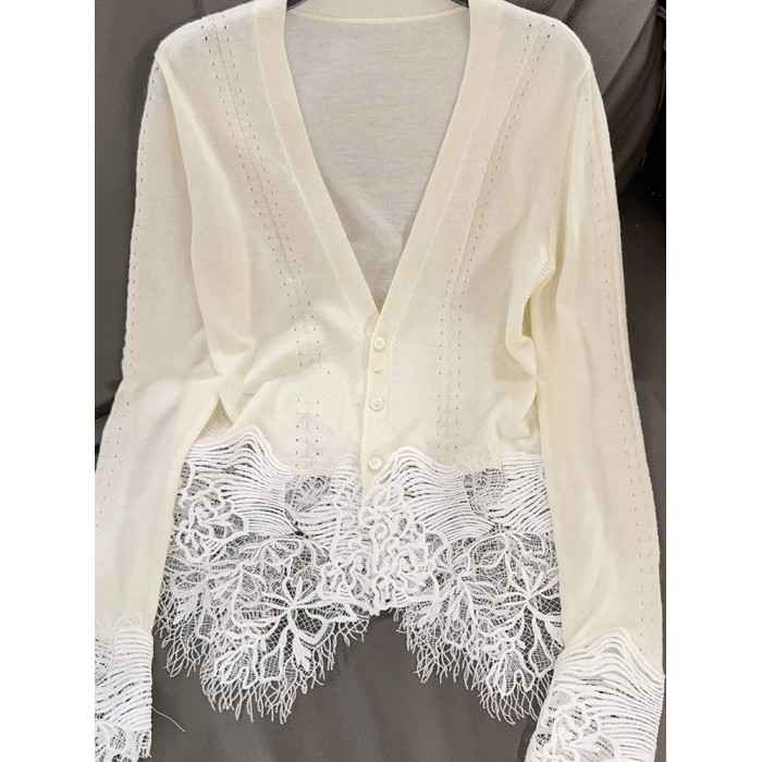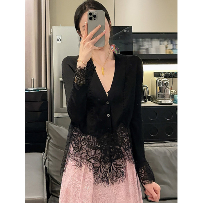 氣質輕熟風蕾絲拼接針織開衫秋季時尚洋氣減齡打底衫長袖v領上衣