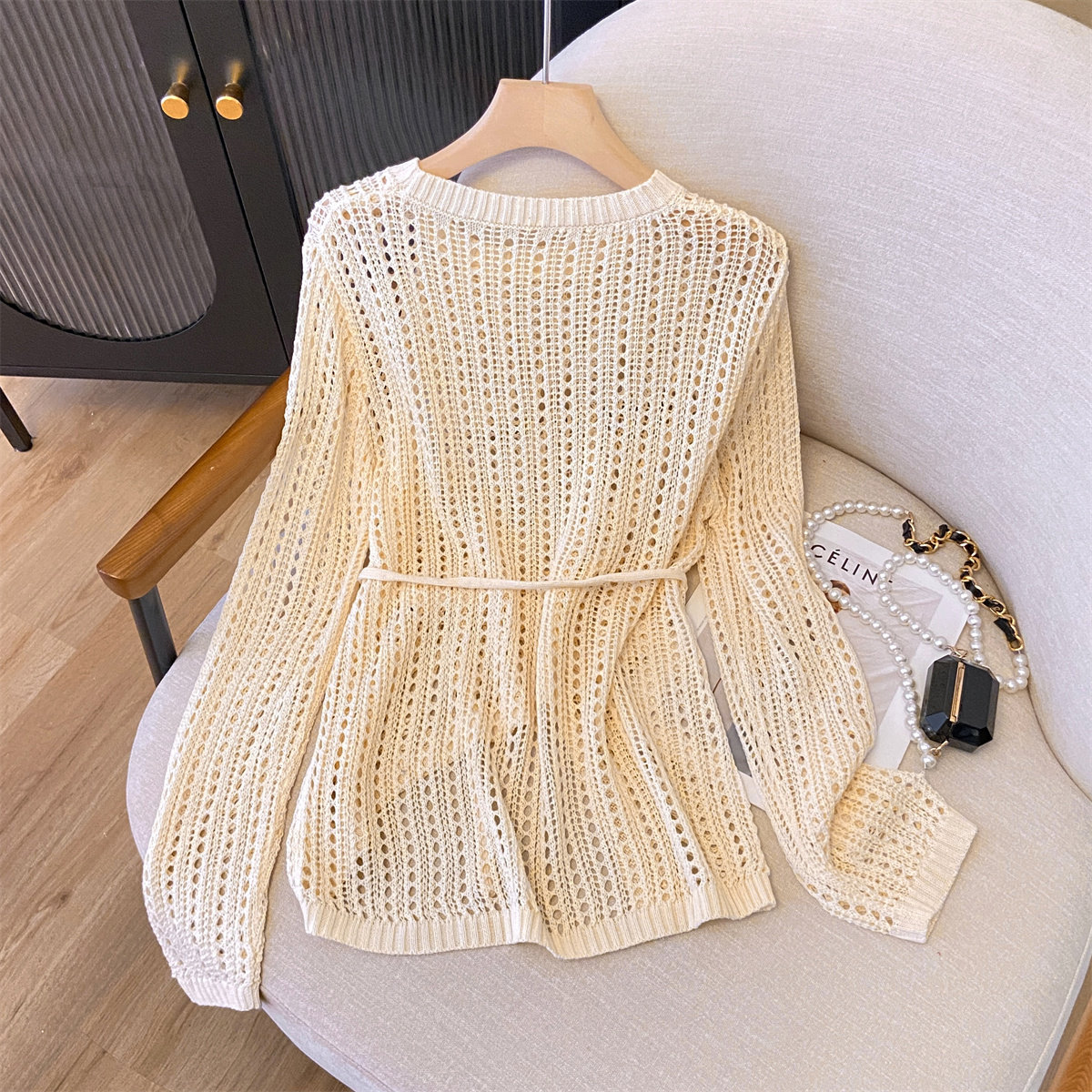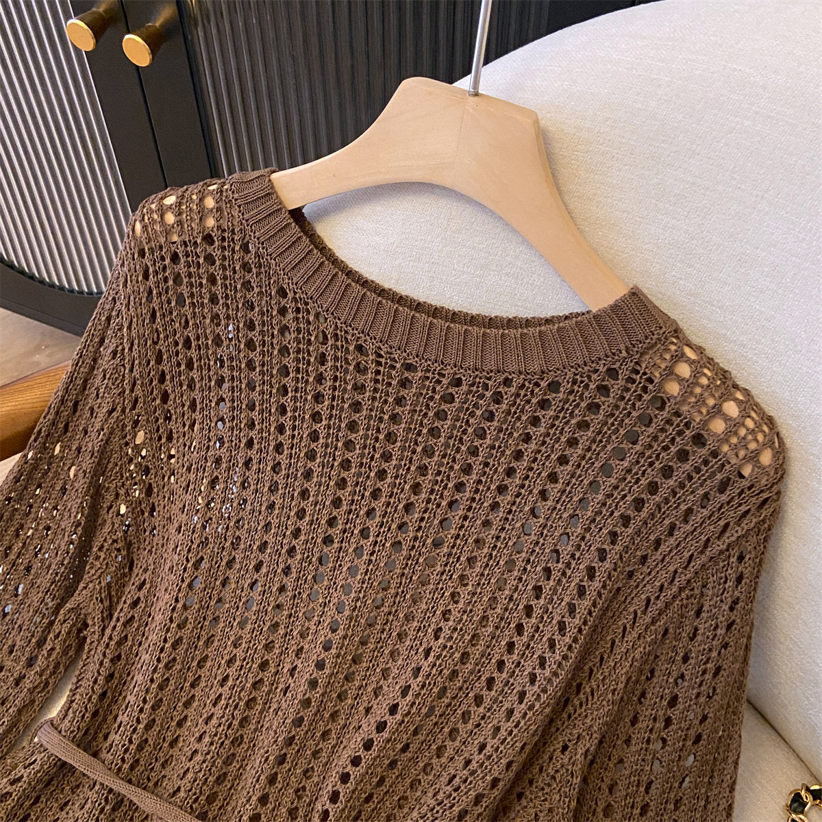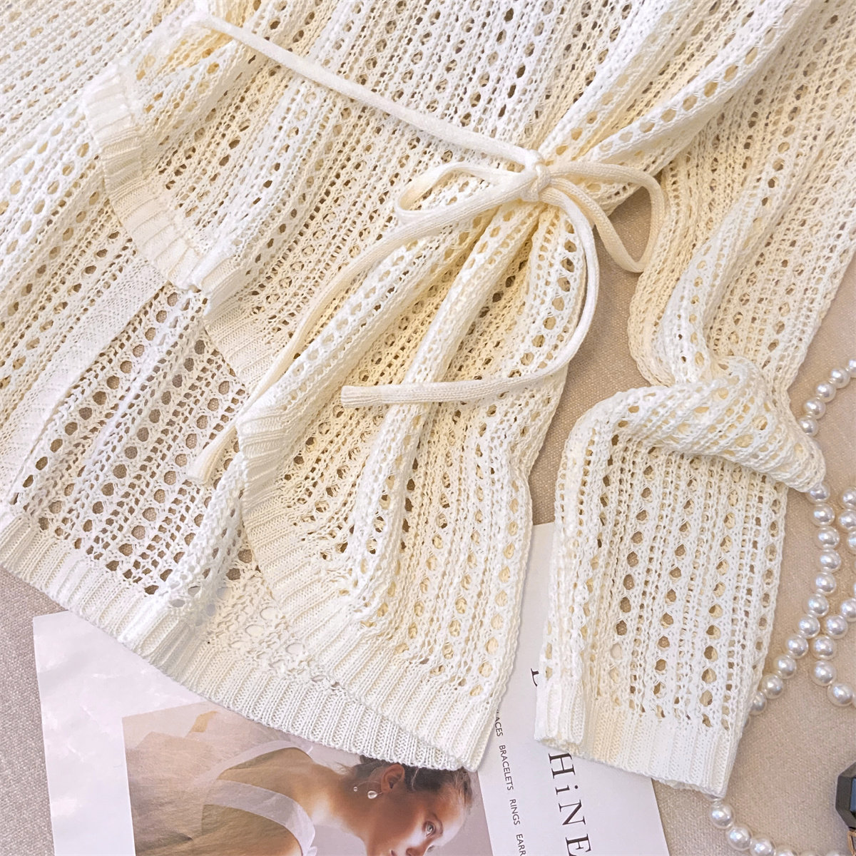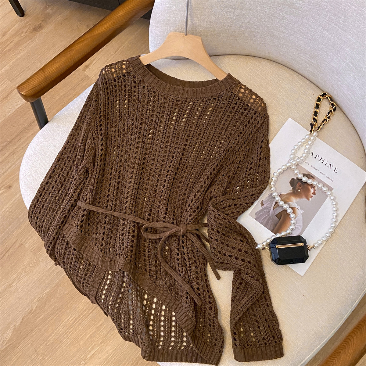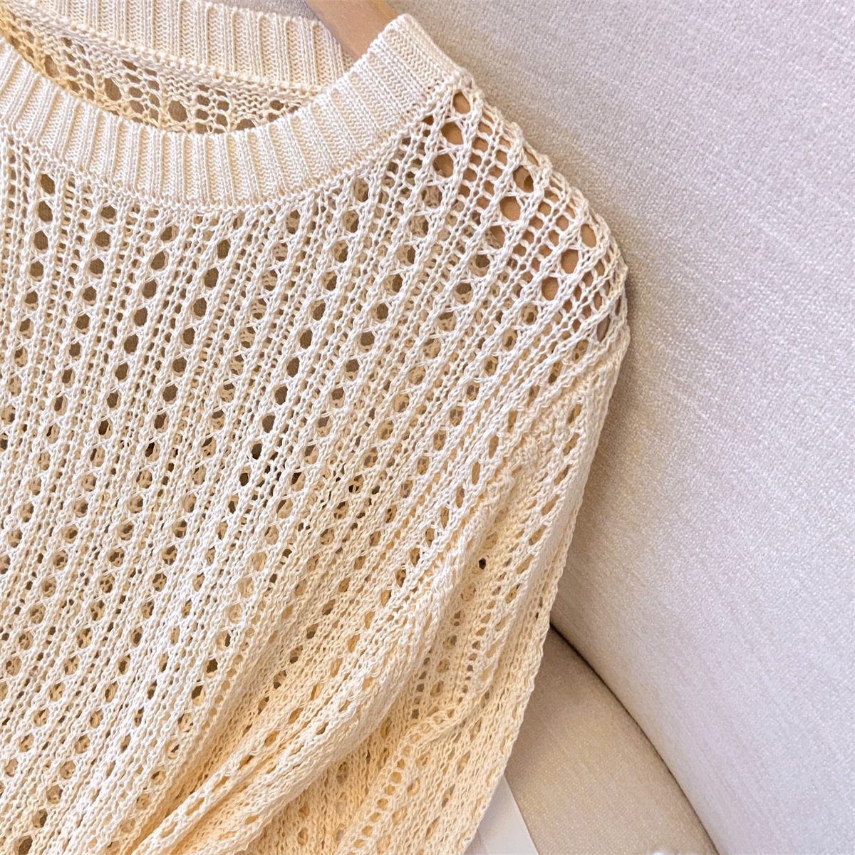 專櫃商場撤廻大牌女裝鏤空針織衫女夏季慵懶風中長款外搭罩衫上衣