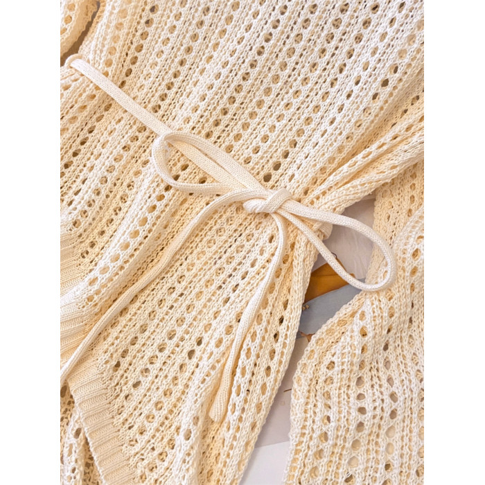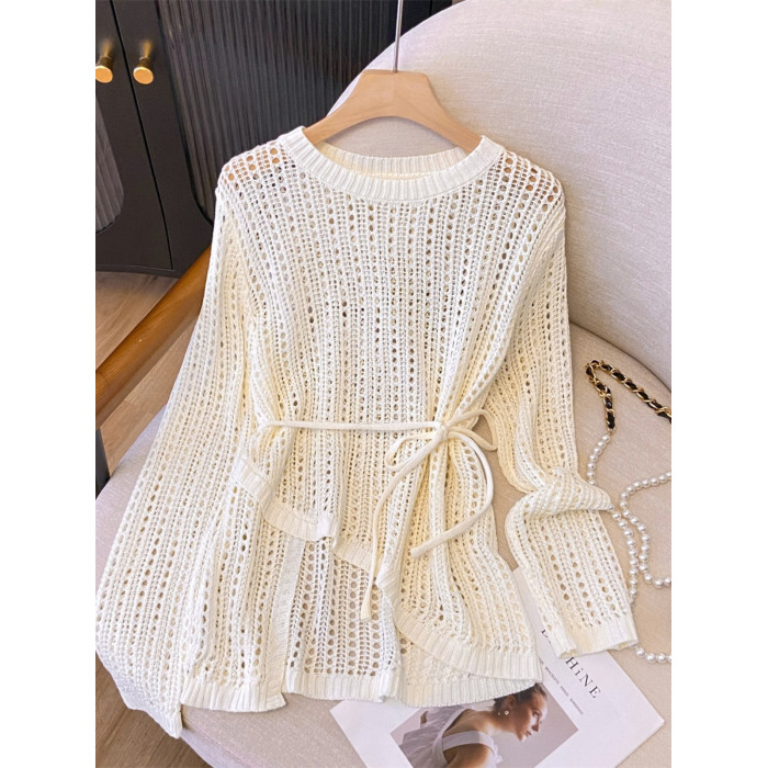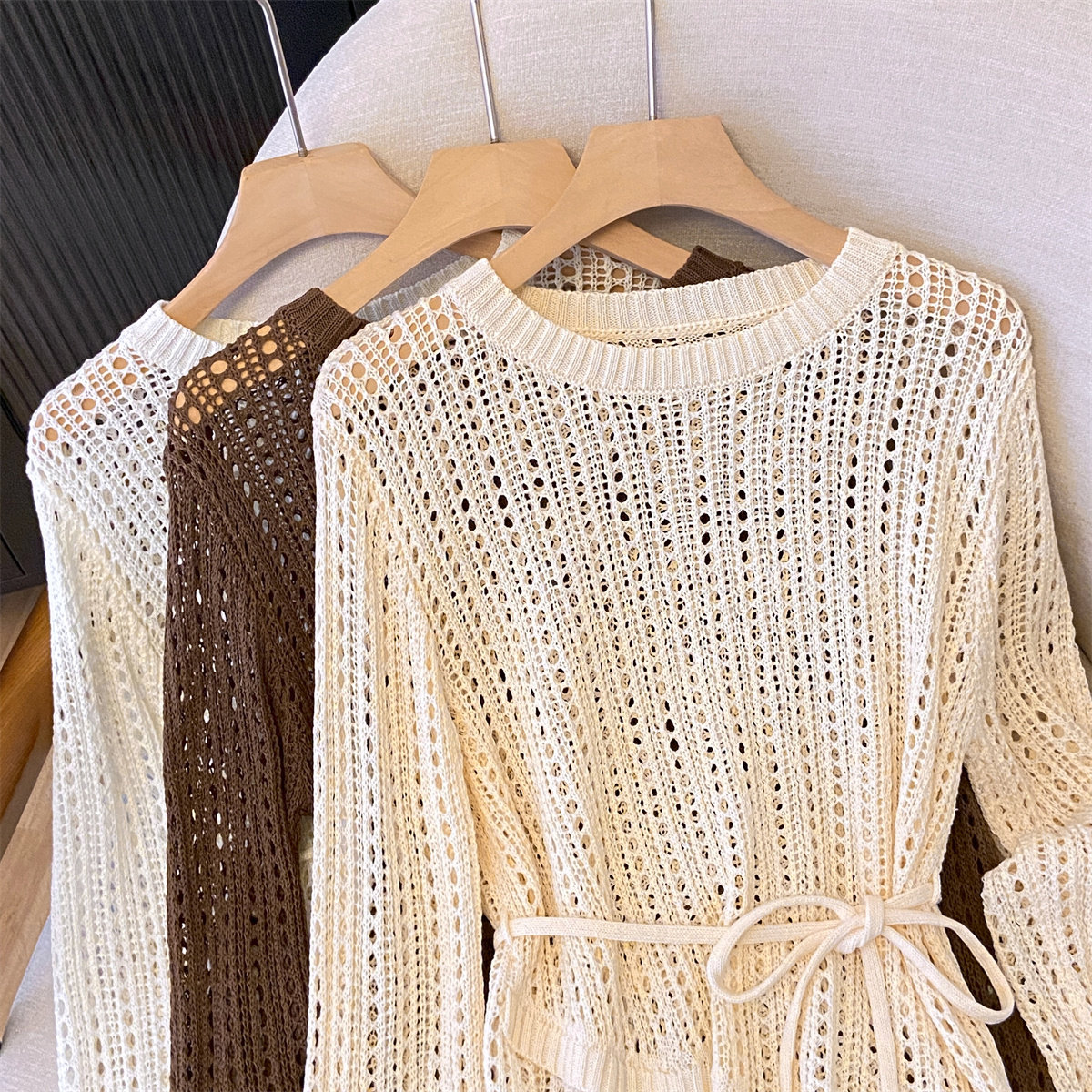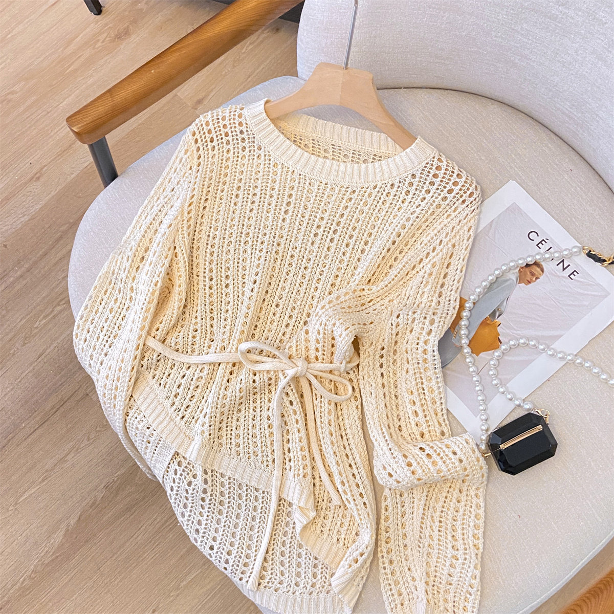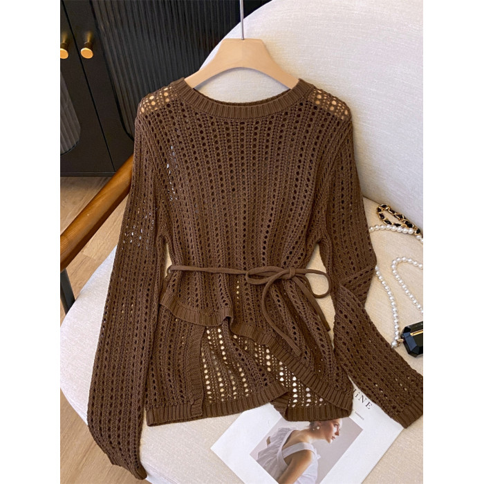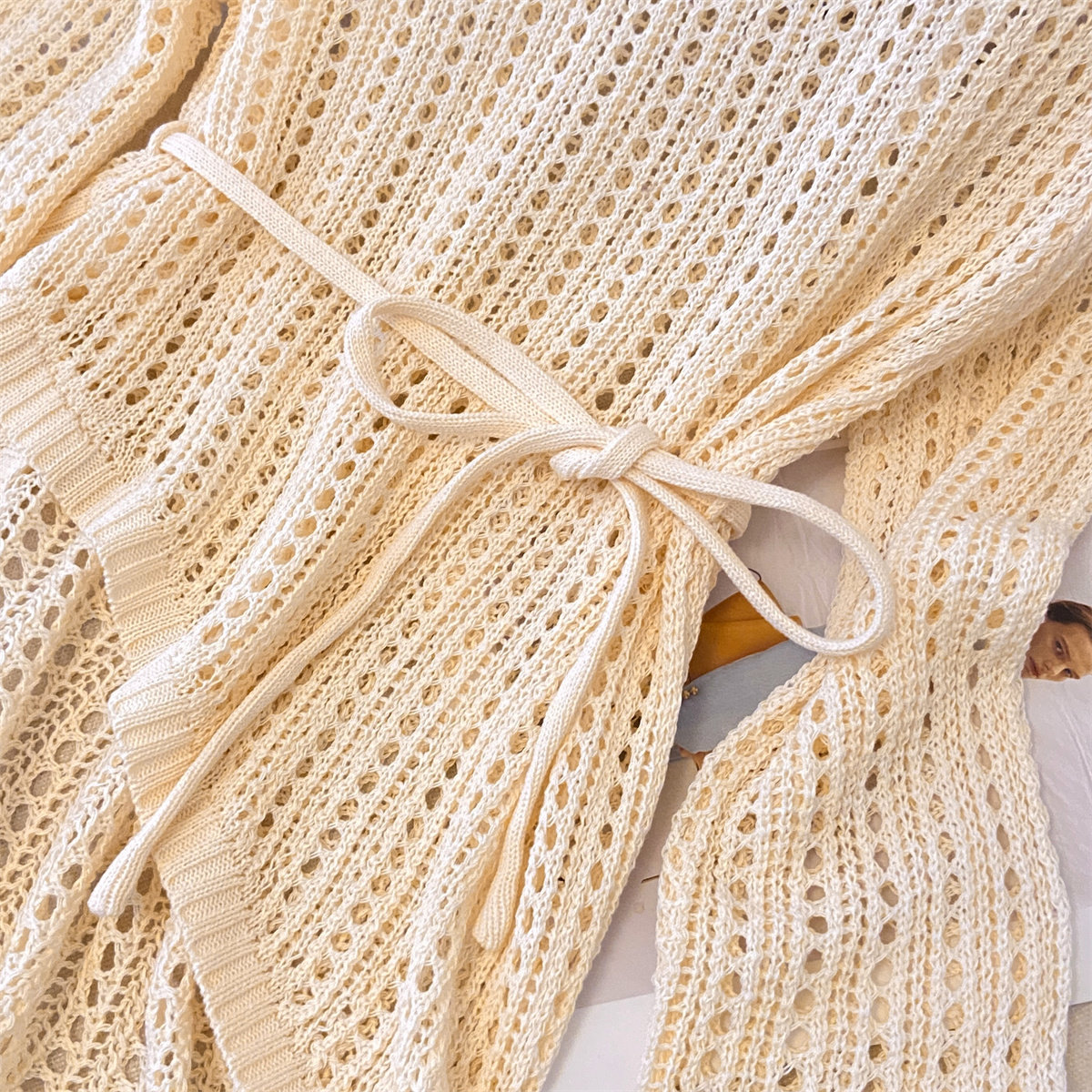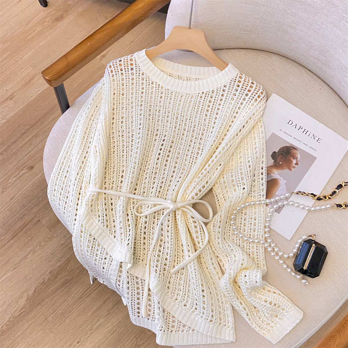 專櫃商場撤廻大牌女裝鏤空針織衫女夏季慵懶風中長款外搭罩衫上衣