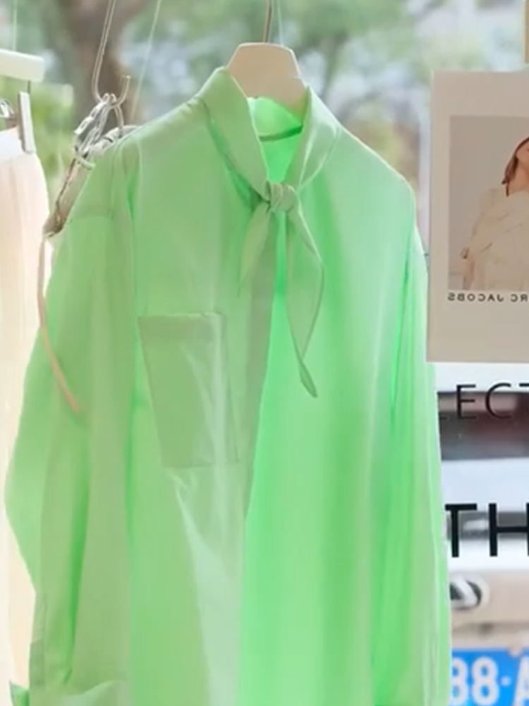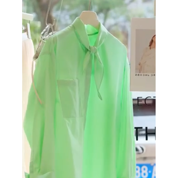 2026年春新款時尚綠色小衫超好看獨特漂亮洋氣設計感小衆領結襯衫