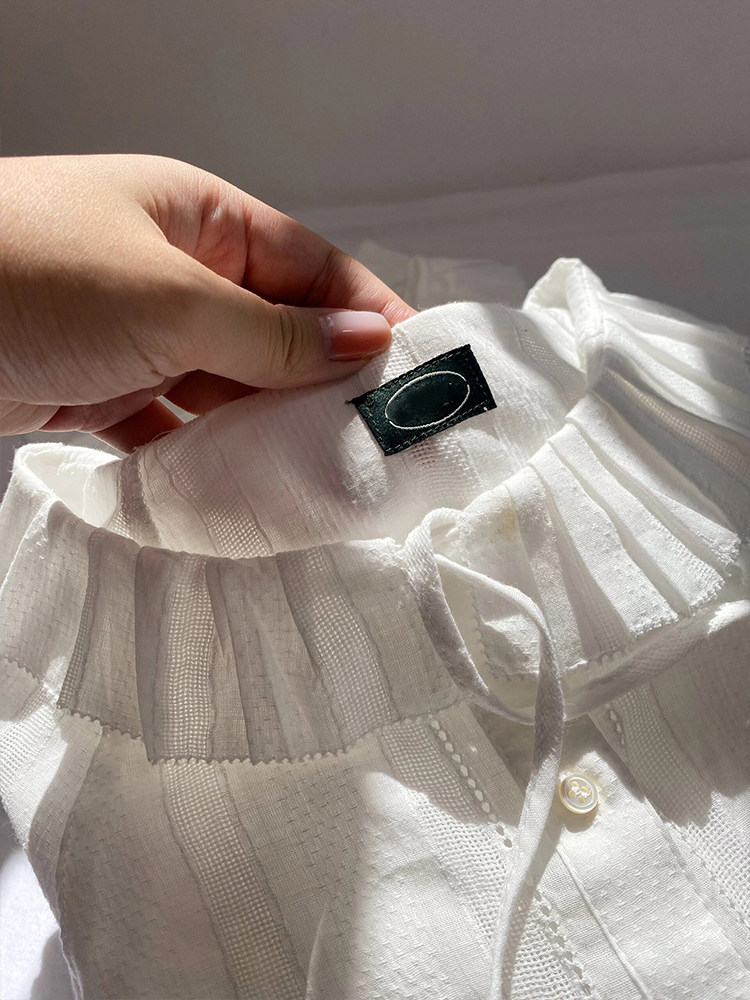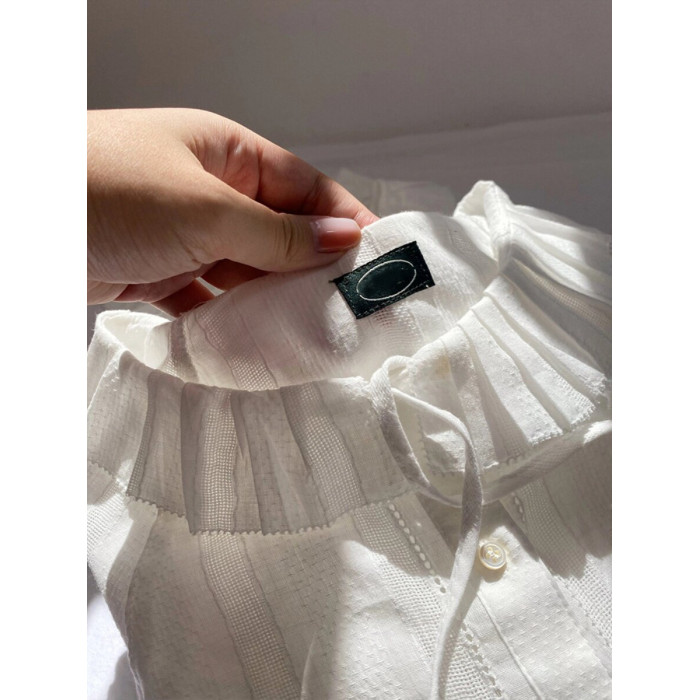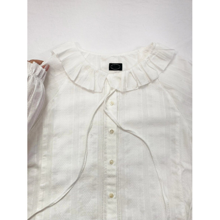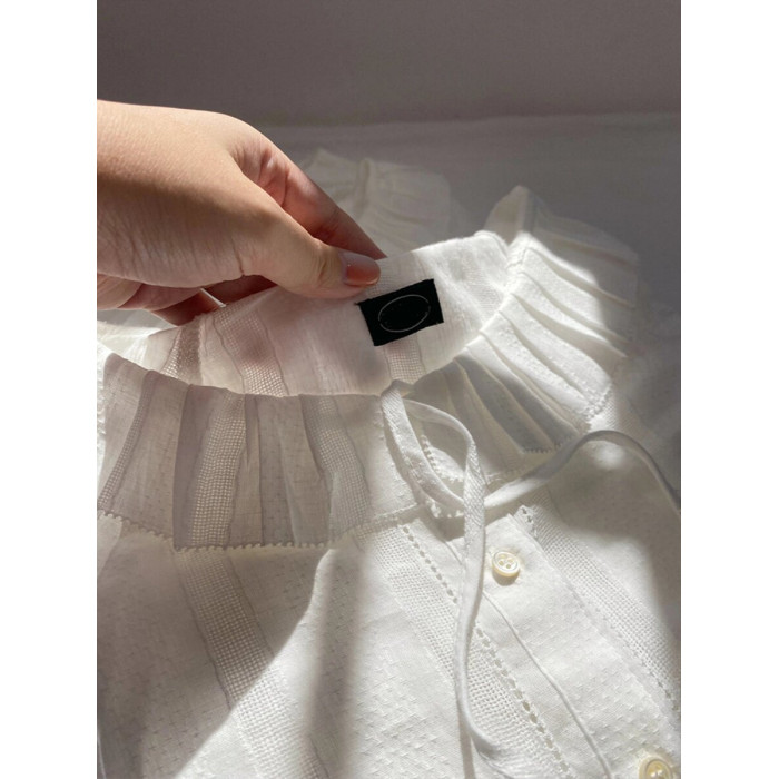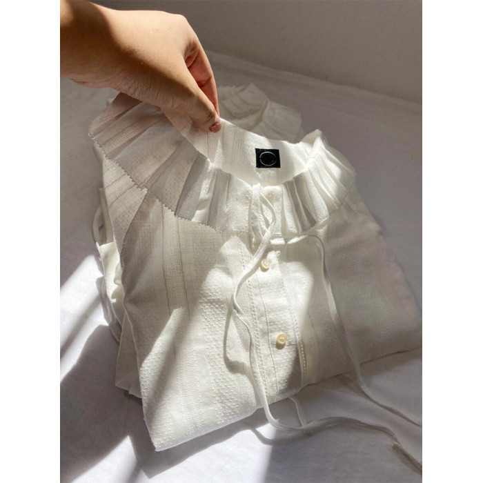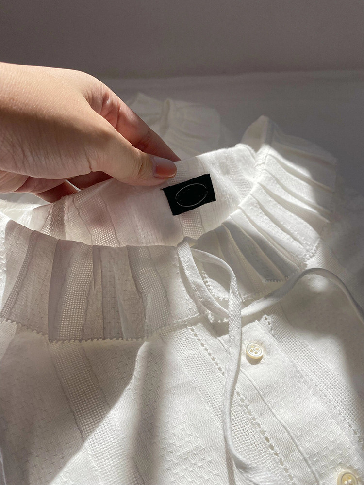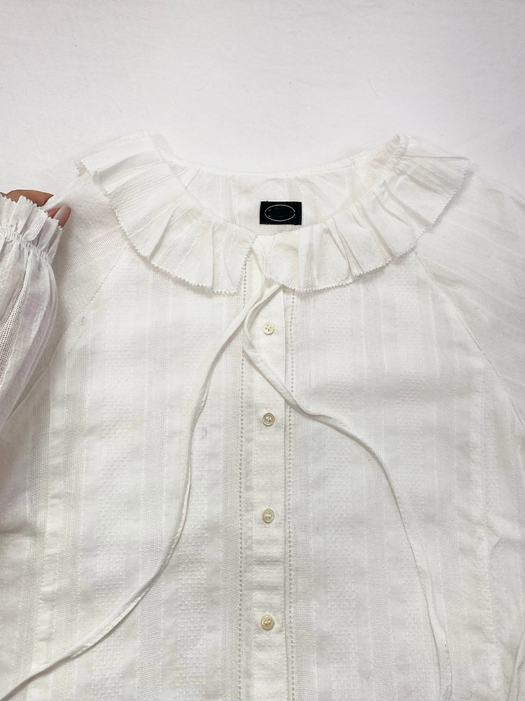 掌櫃自畱推薦高定款!韓國八奶花邊系帶襯衫小衆別致荷葉邊領上衣