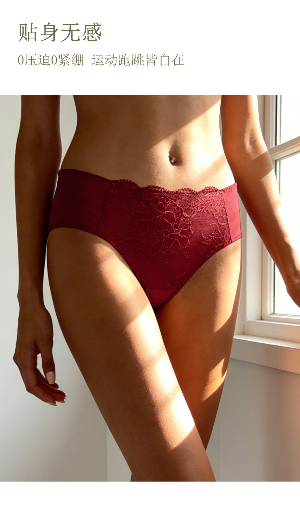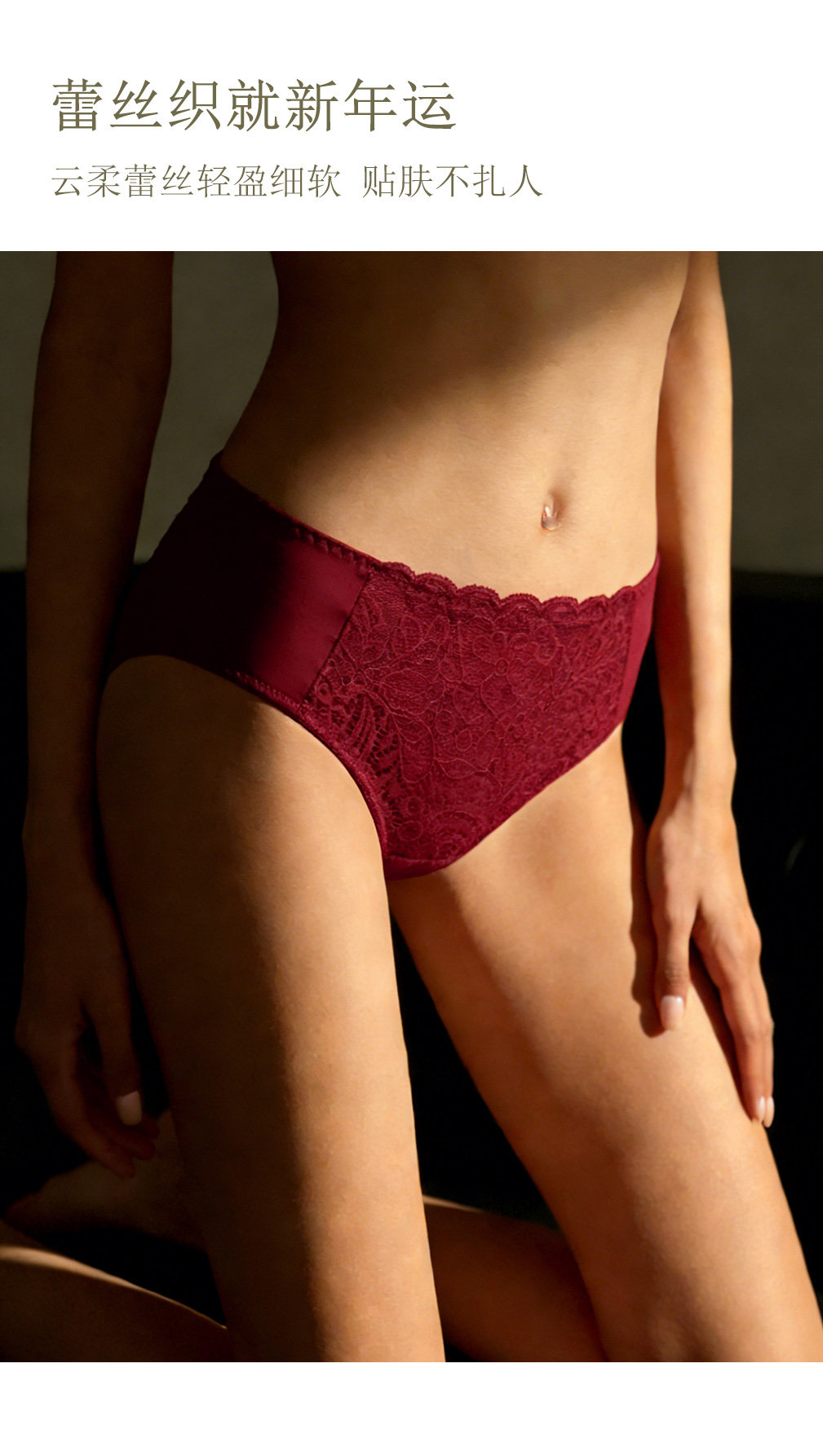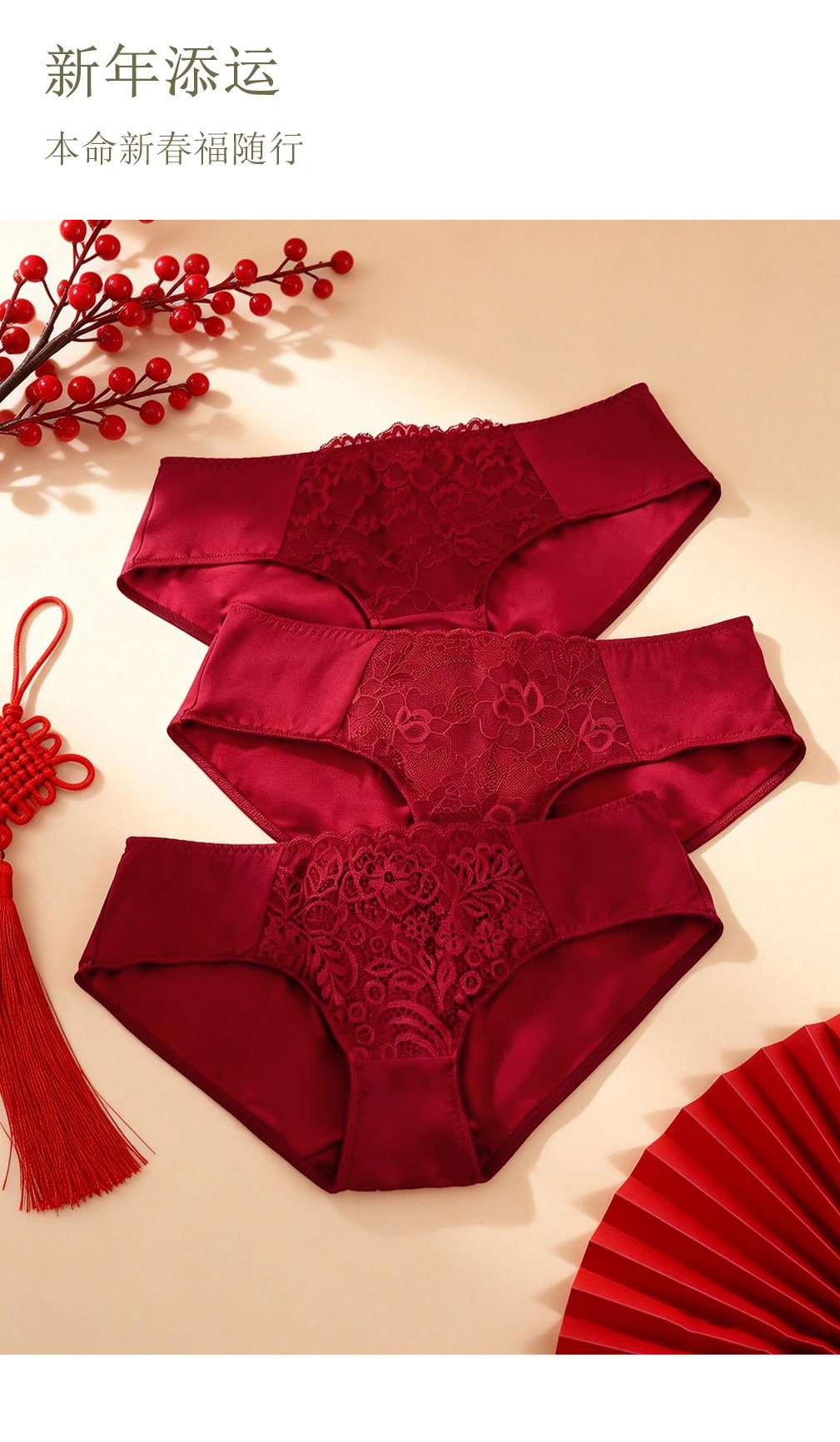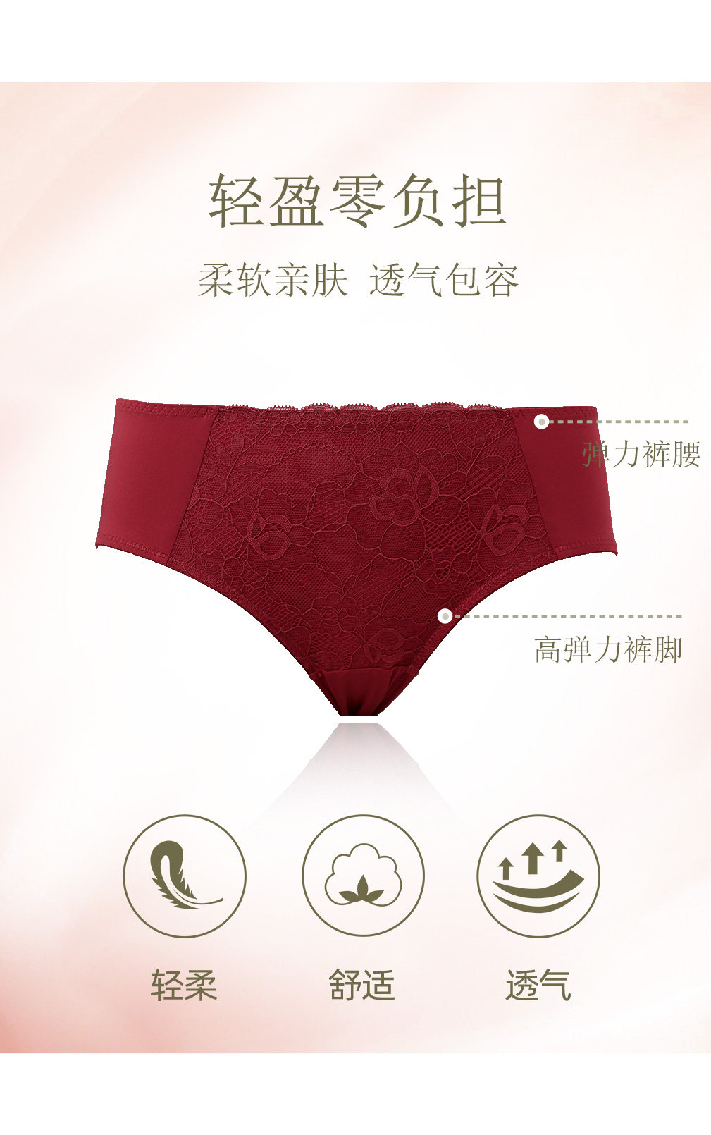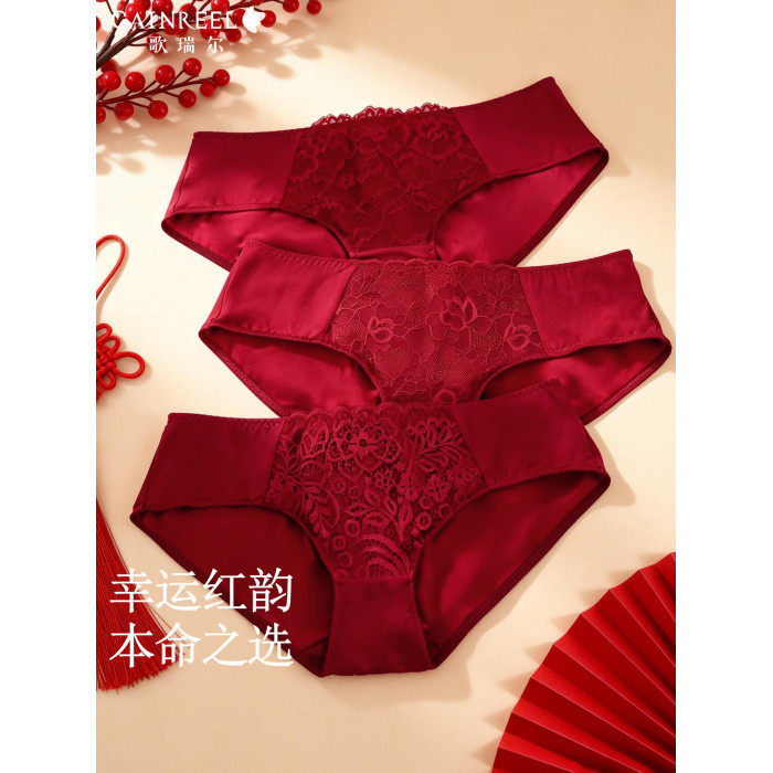歌瑞爾純欲蕾絲本命年紅色內褲女結婚新婚中低腰性感親膚平角底褲