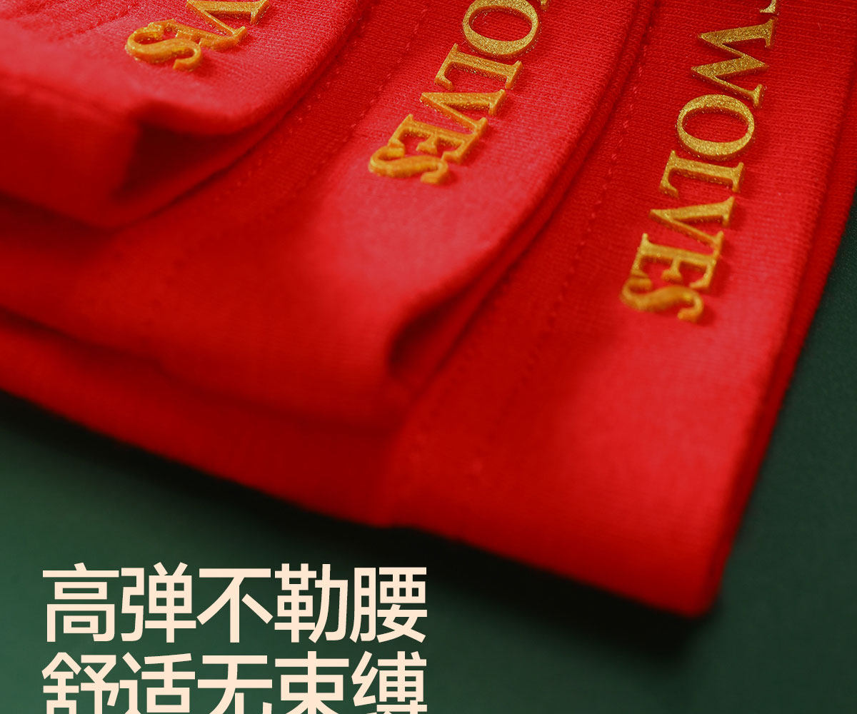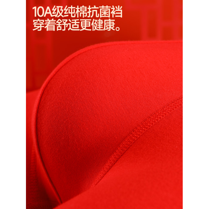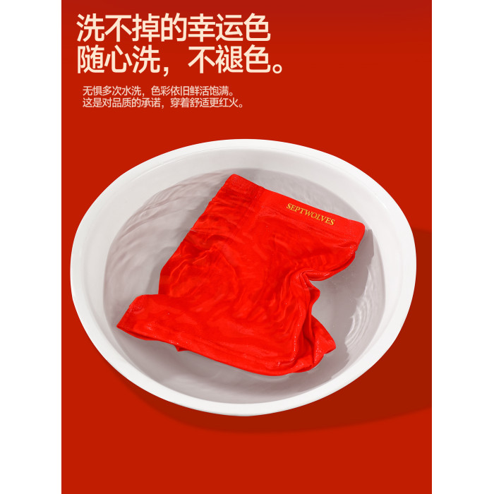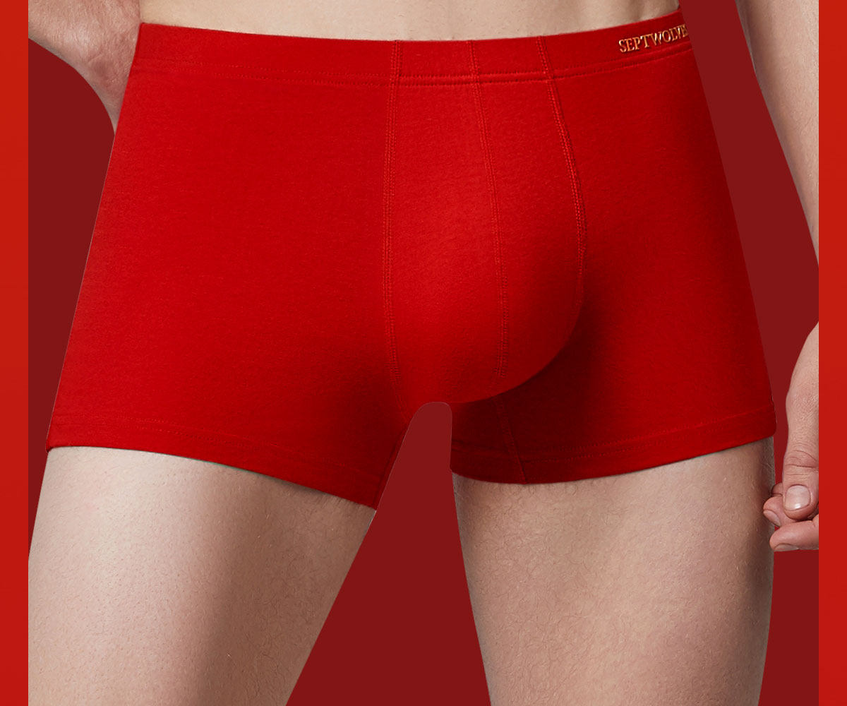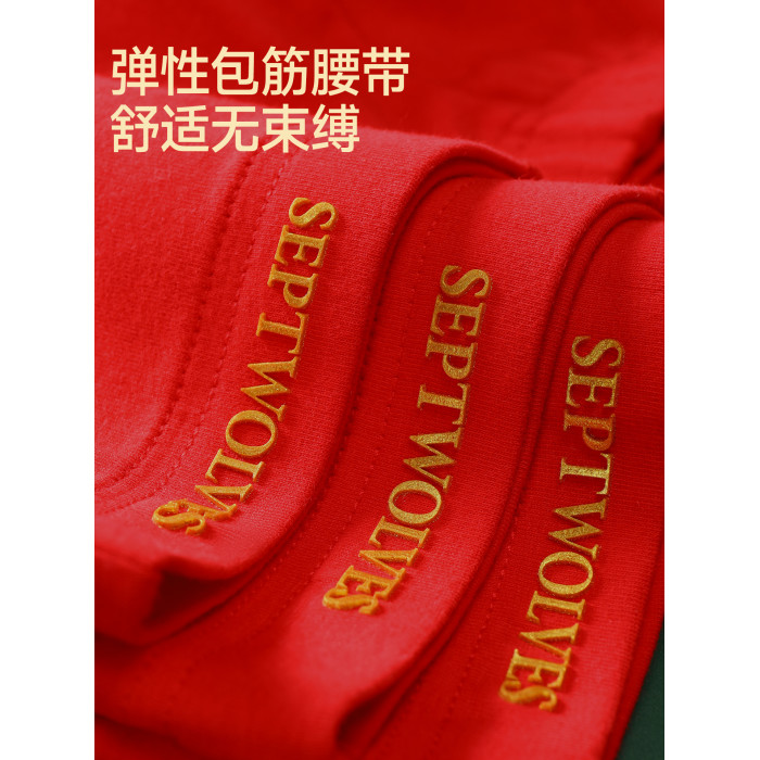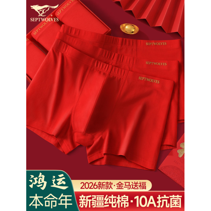 七匹狼本命年男士內褲男生屬馬年紅色純棉四角褲男款結婚禮物短褲