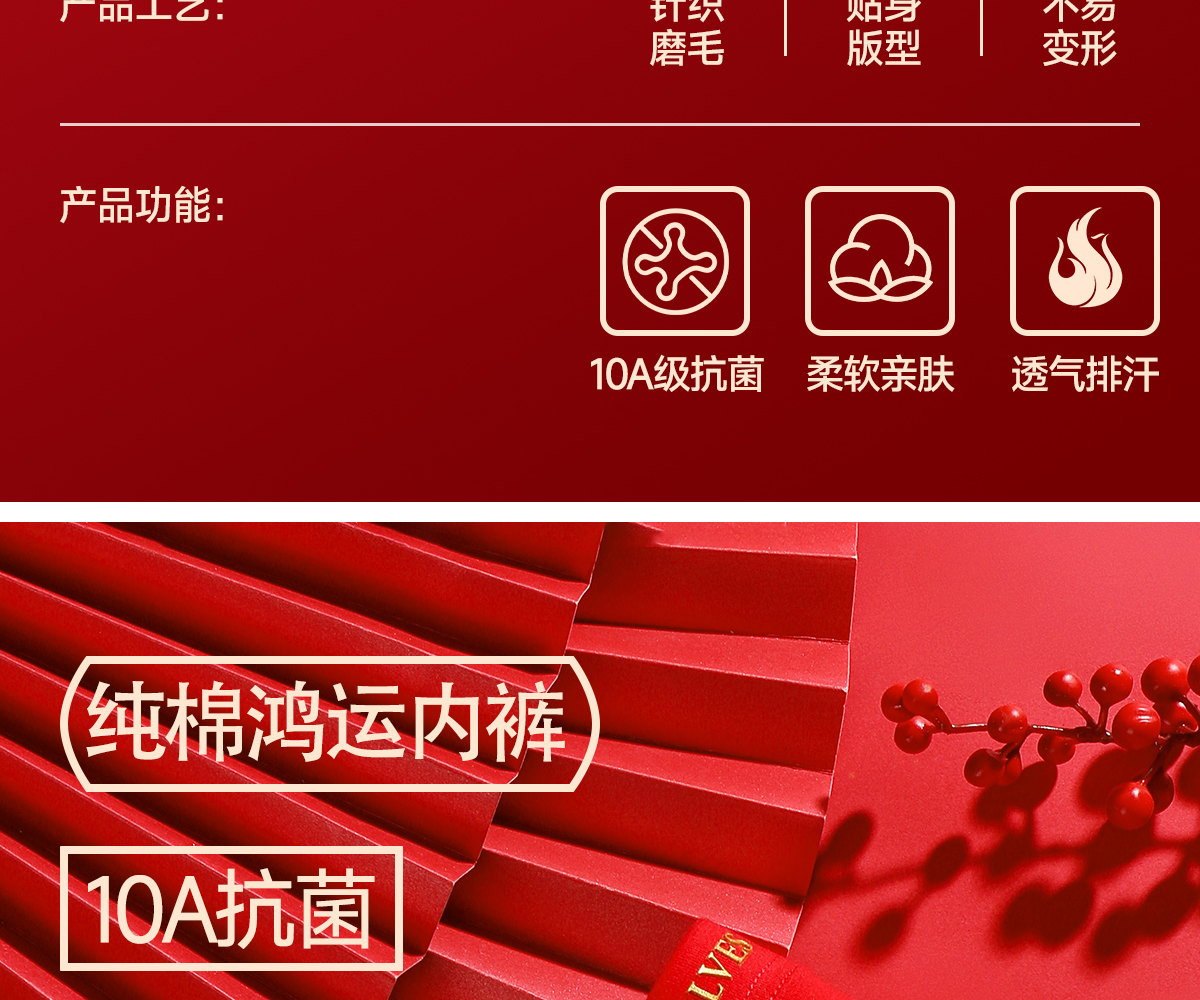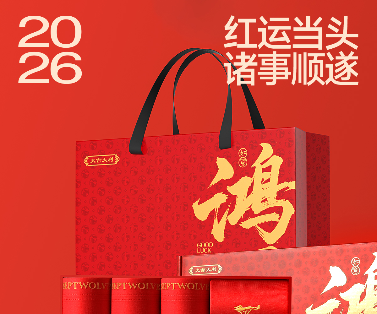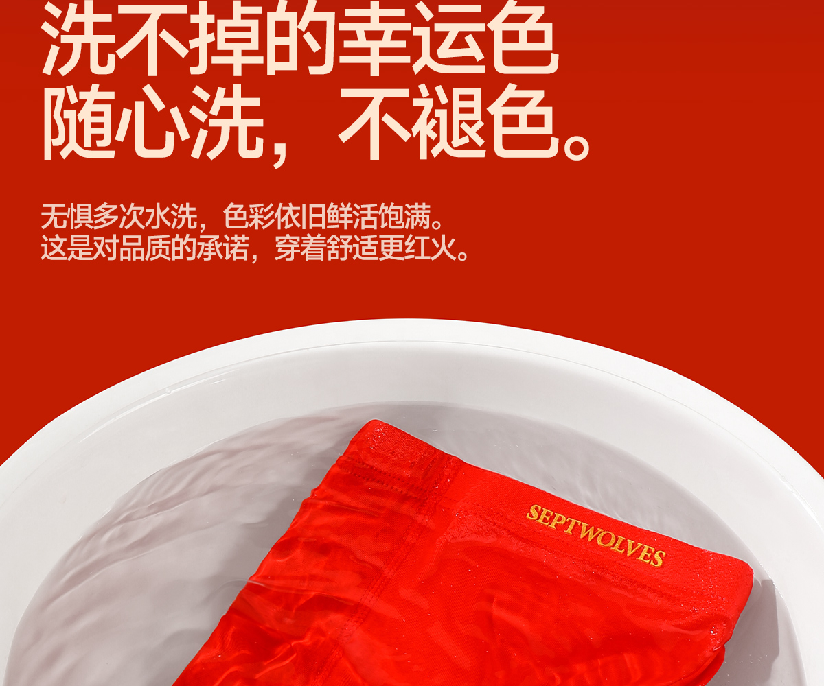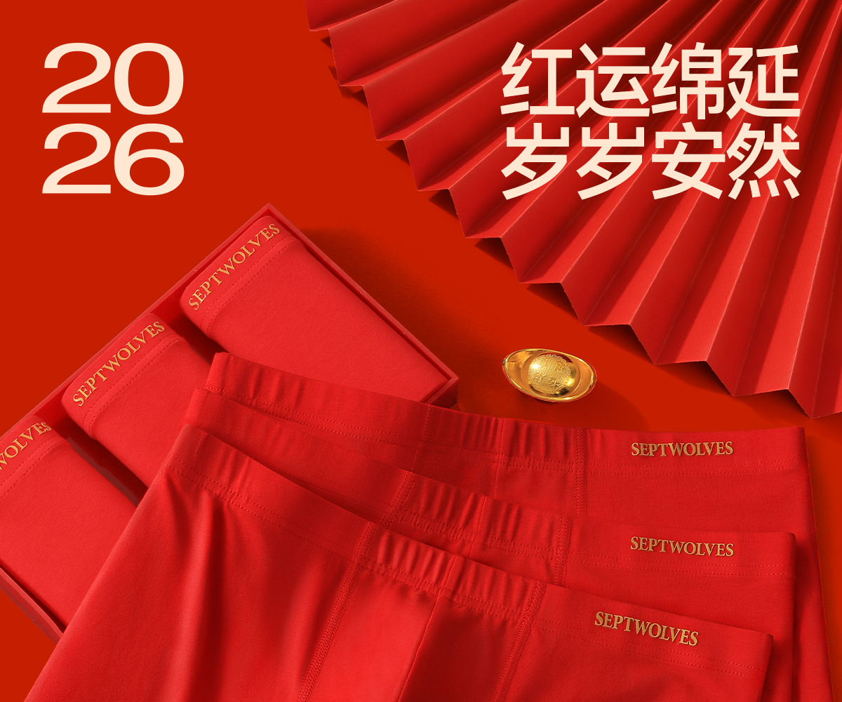 七匹狼本命年男士內褲男生屬馬年紅色純棉四角褲男款結婚禮物短褲