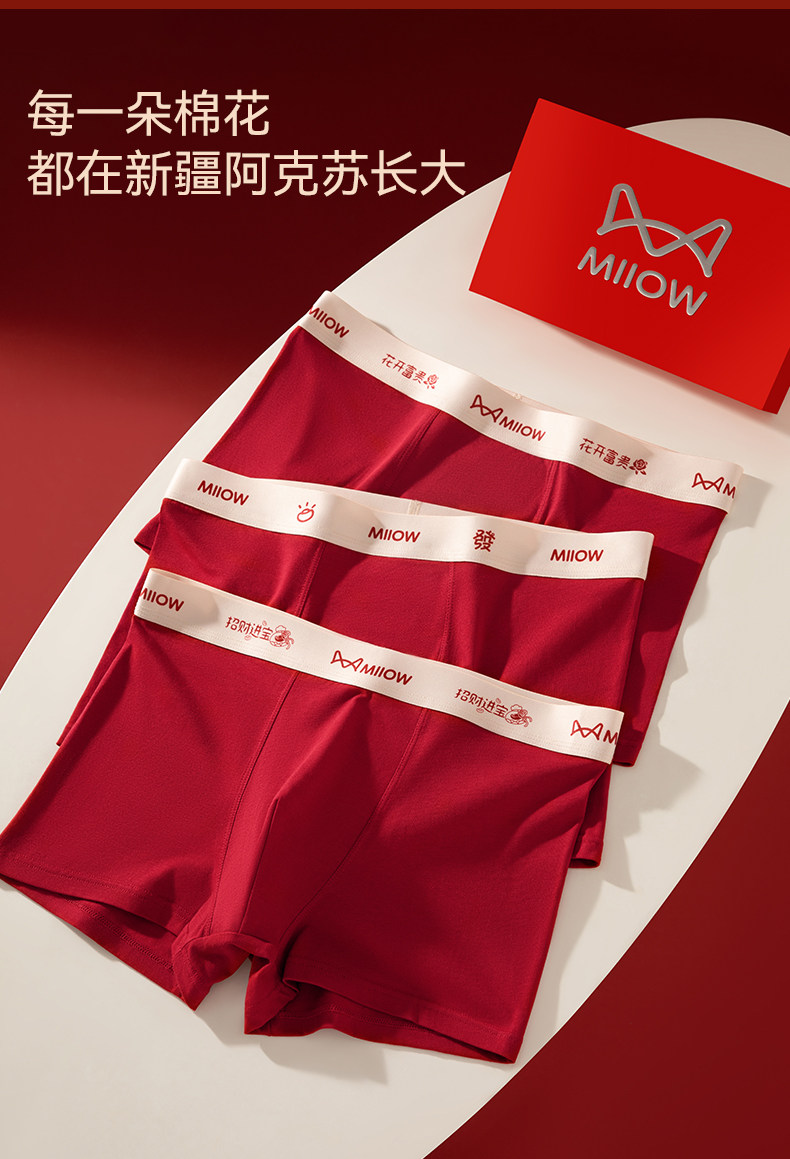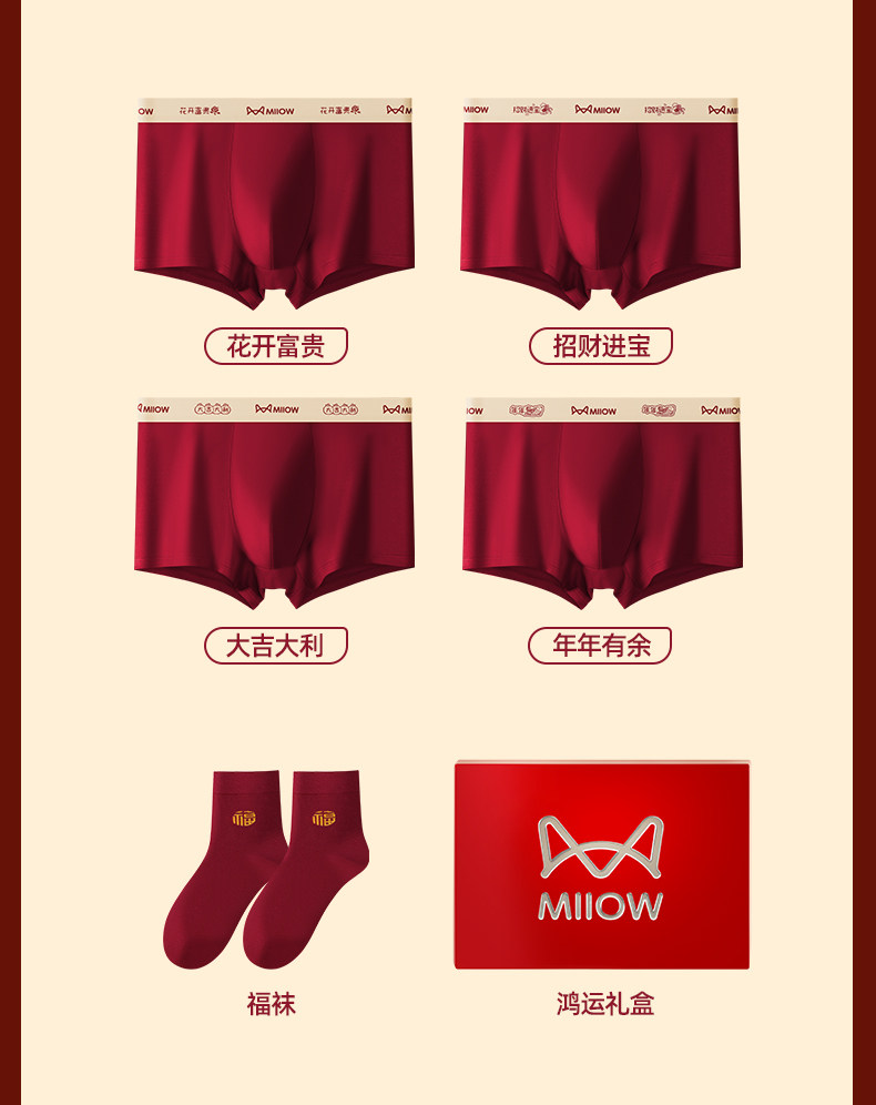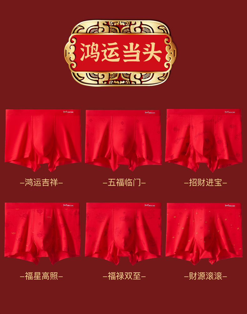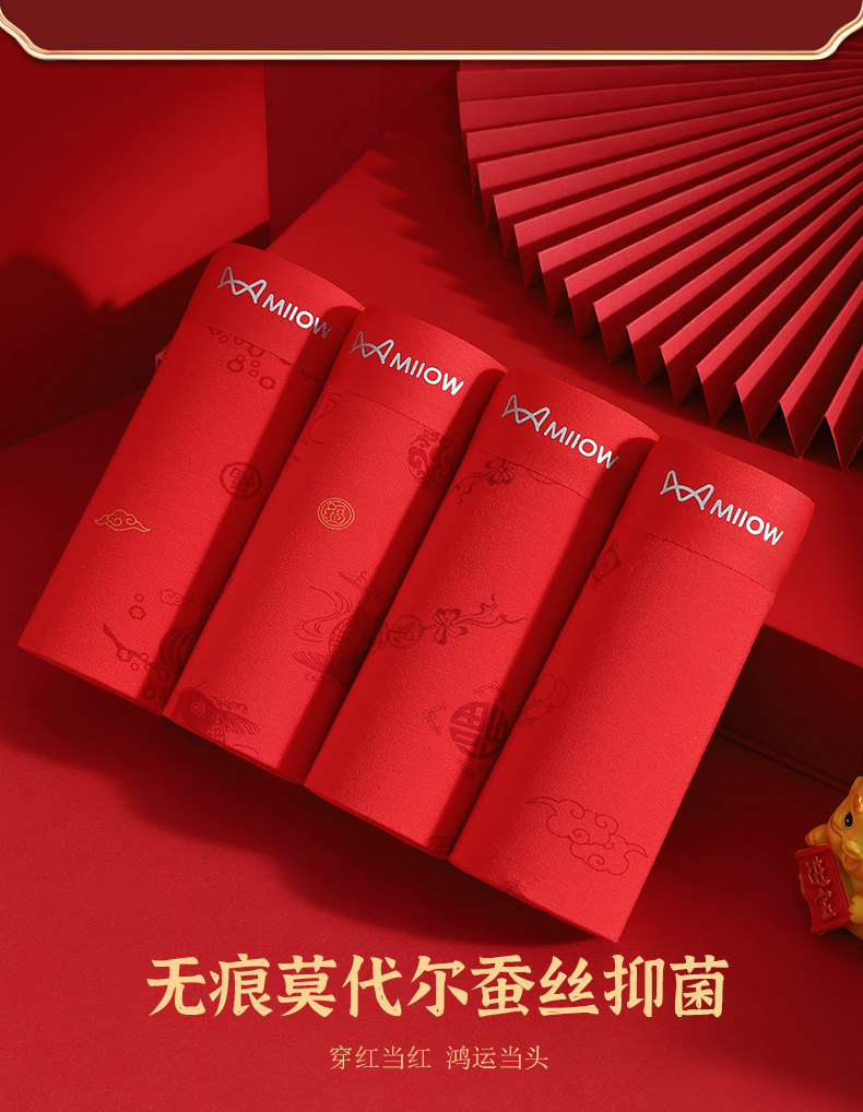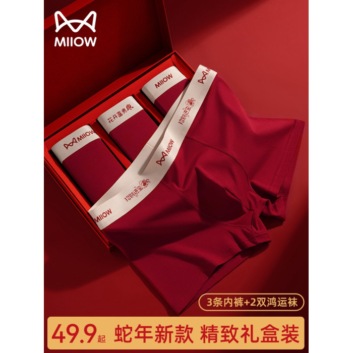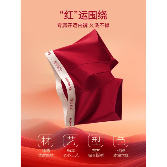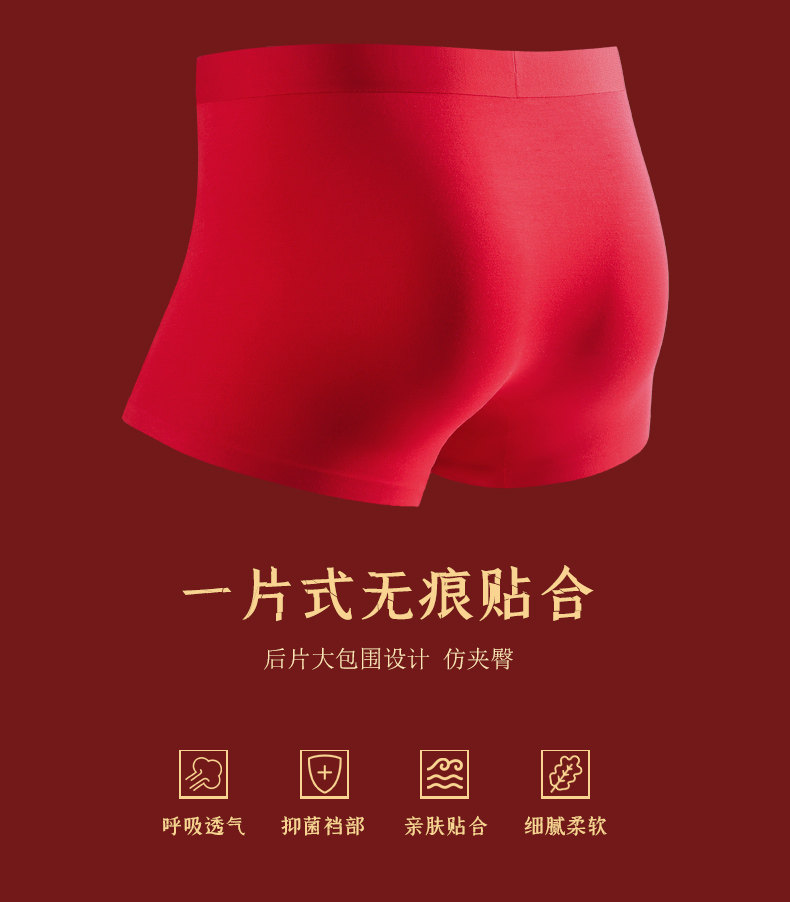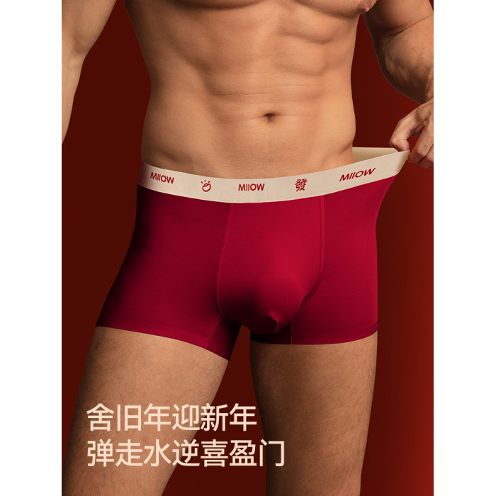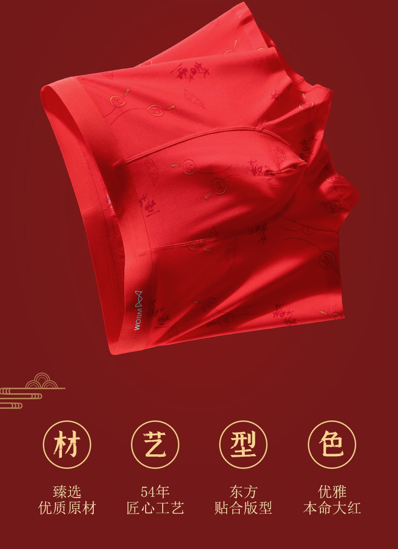 貓人本命年內褲男款純棉平四角褲紅色結婚禮物屬蛇莫代爾大碼短褲