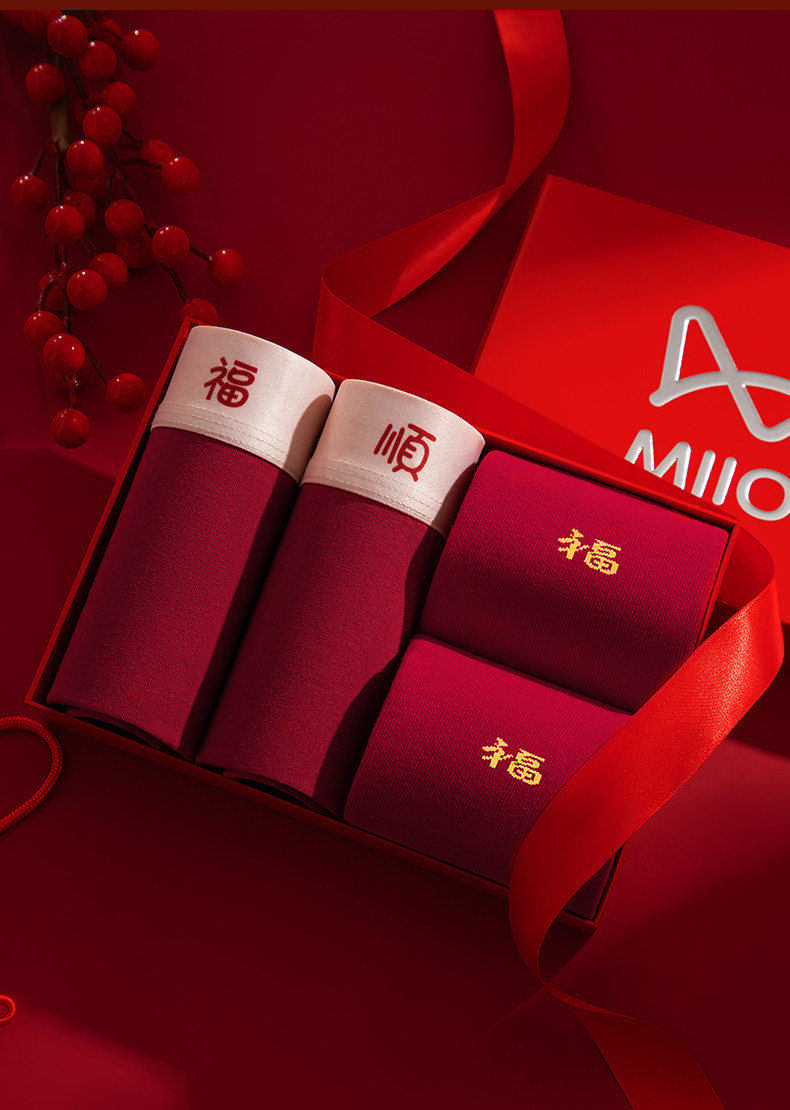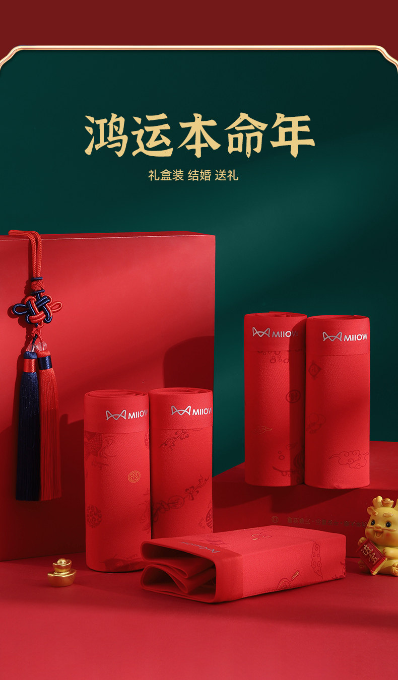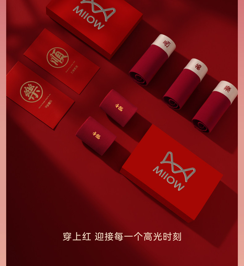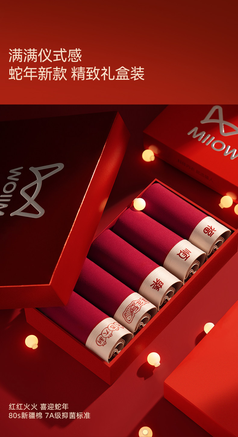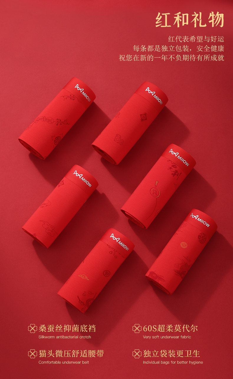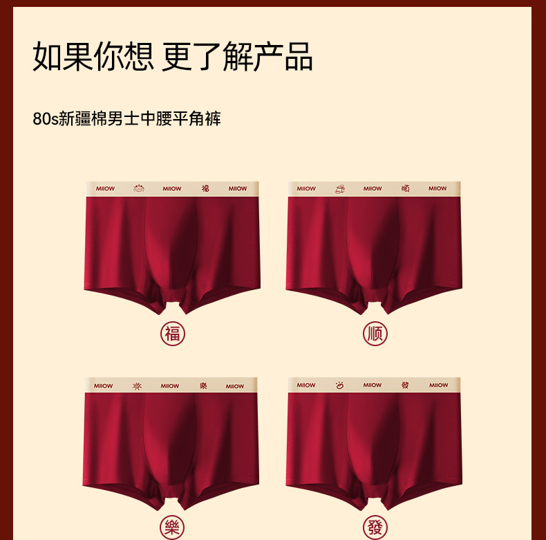 貓人本命年內褲男款純棉平四角褲紅色結婚禮物屬蛇莫代爾大碼短褲