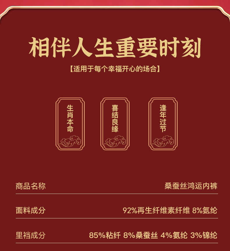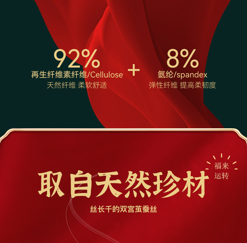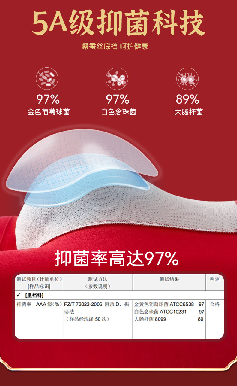 | 襠部材質成分 | 粘膠纖維(粘纖)85% 桑蠶絲8% 聚氨酯彈性纖維(氨綸)4% 聚醯胺纖維(錦綸)3% |