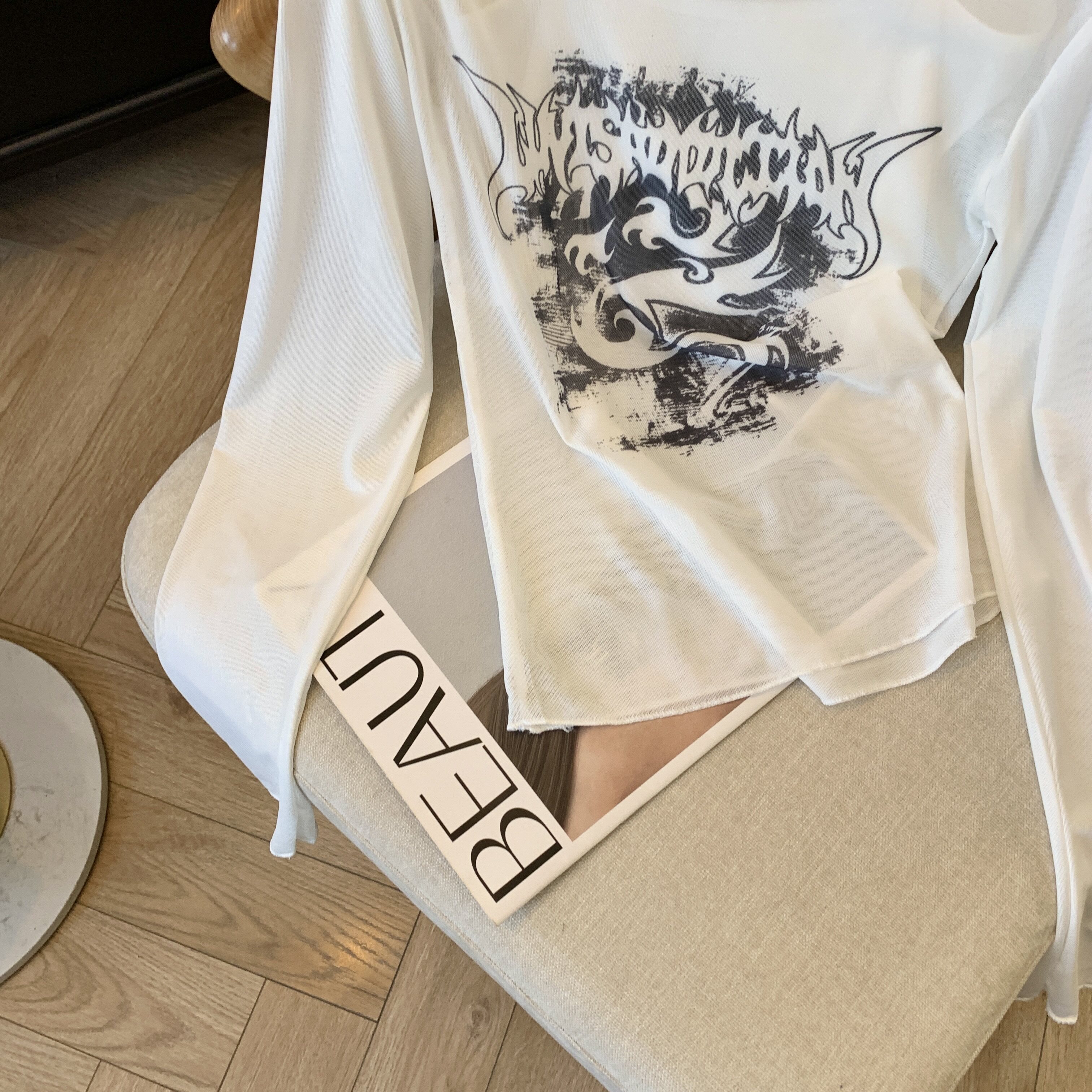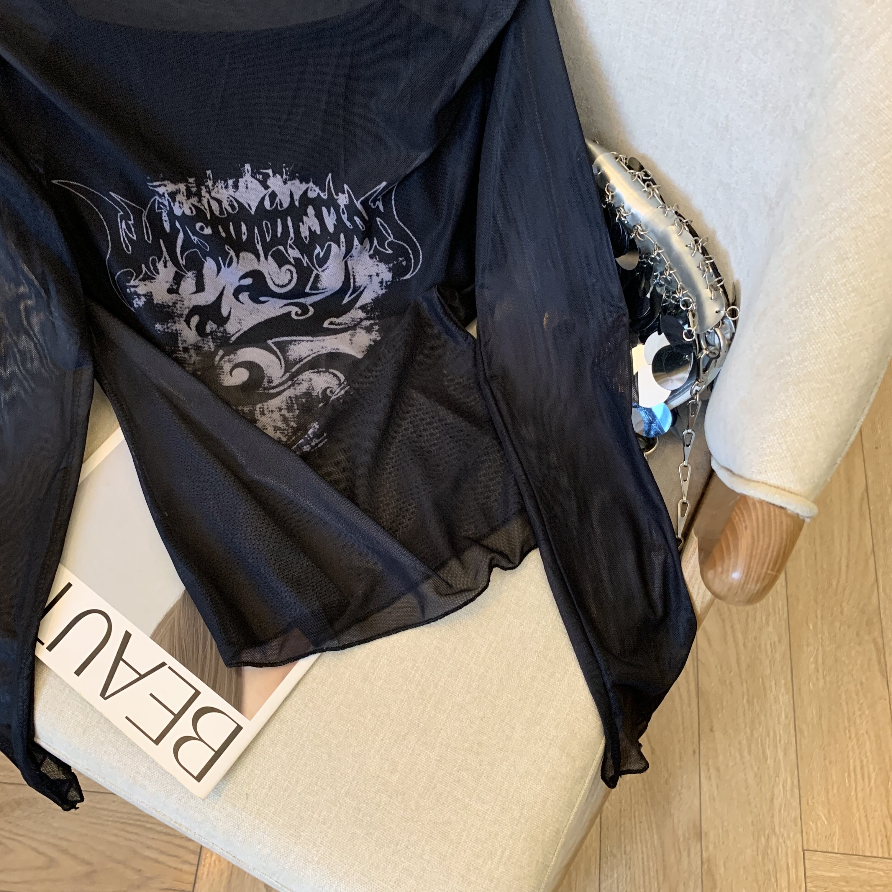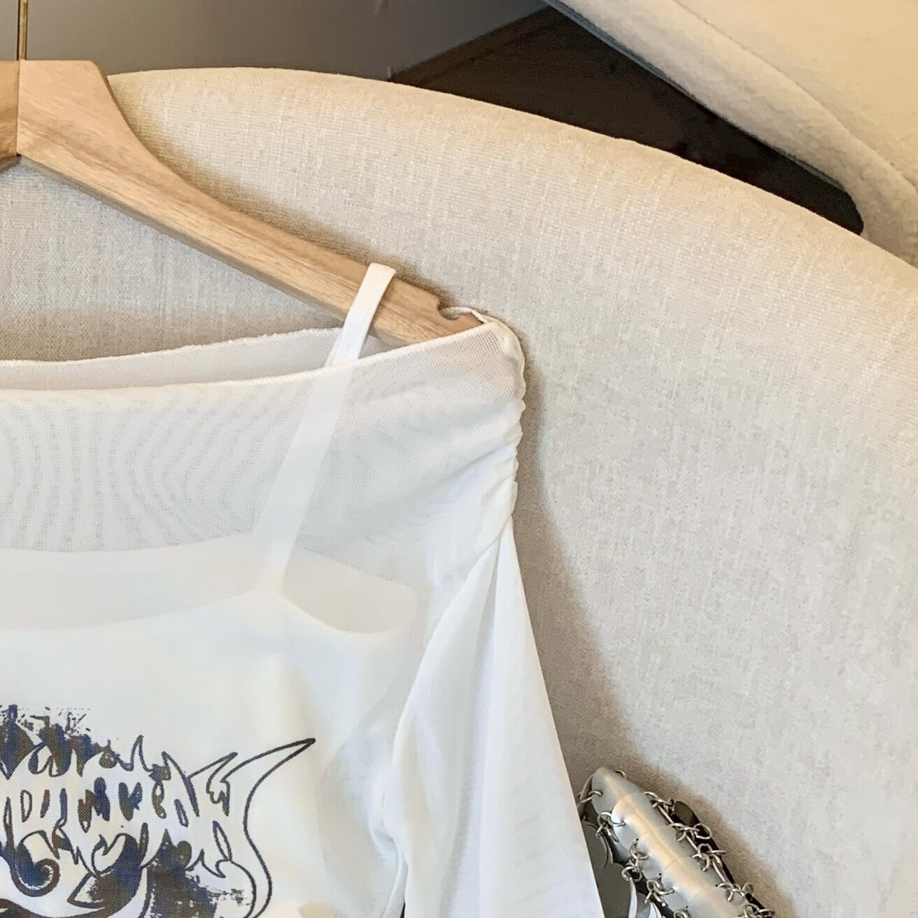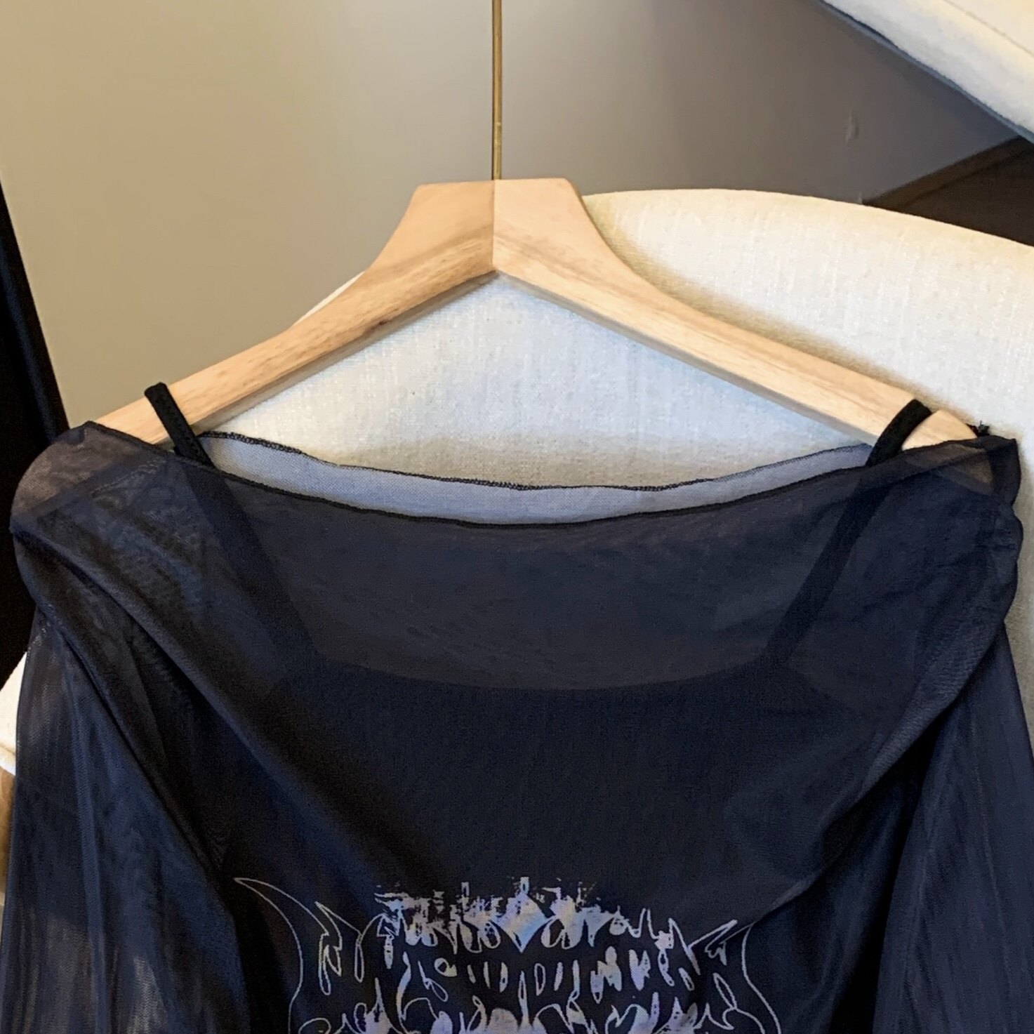 專櫃撤廻剪標辣妹網紗一字肩兩件套長袖防曬女夏季新款顯瘦上衣