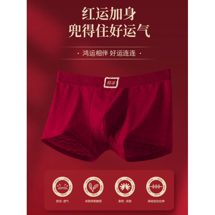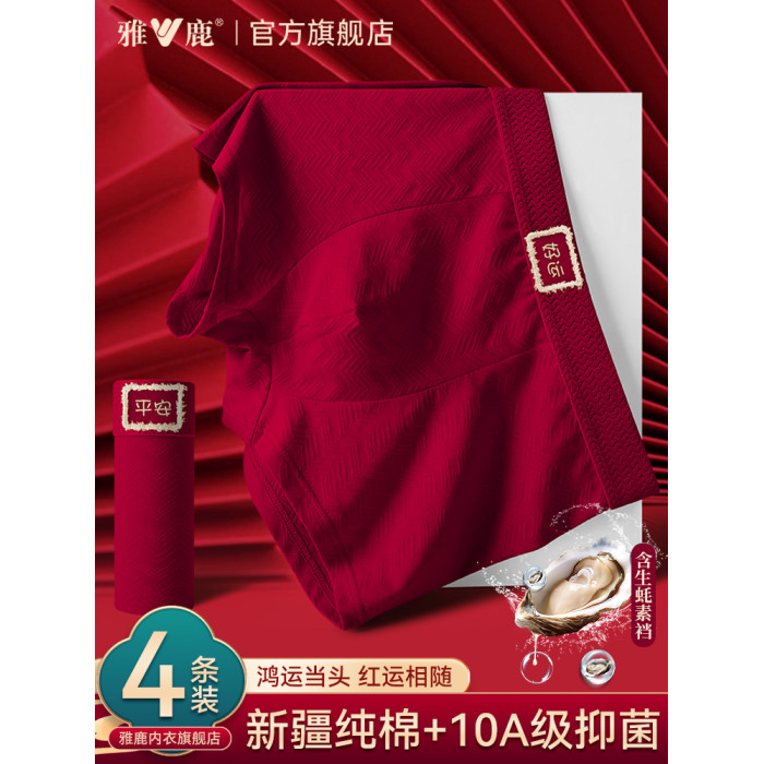 雅鹿本命年男士內褲男生紅色2026屬馬年禮物結婚純棉四角平角短褲