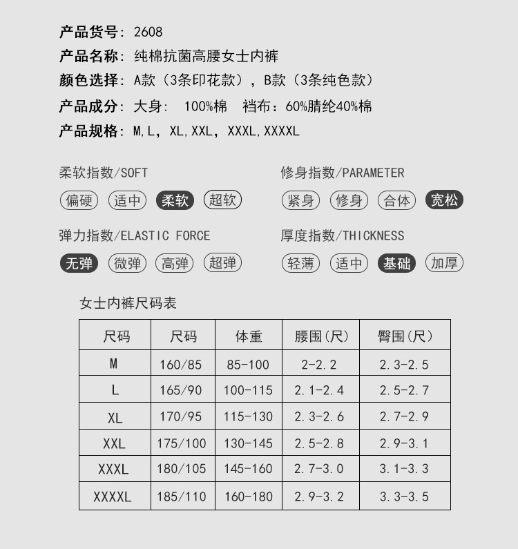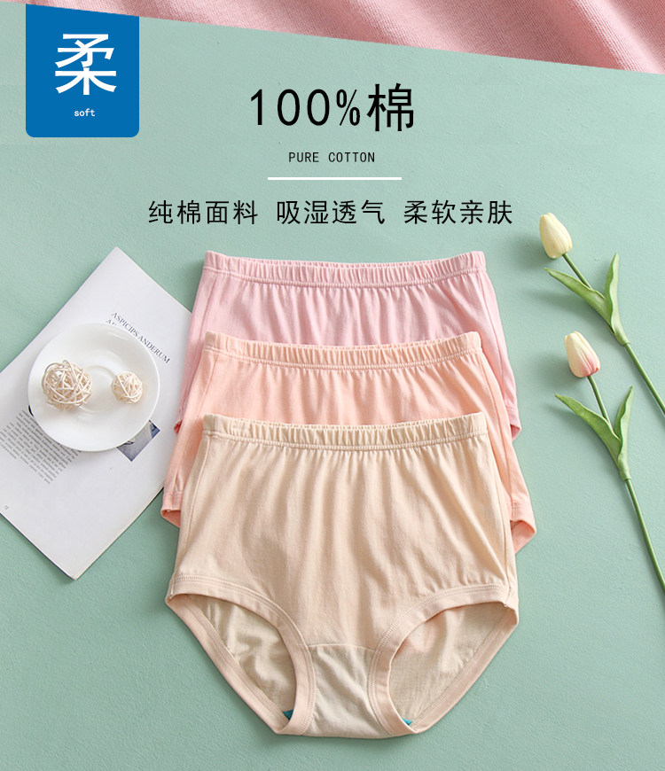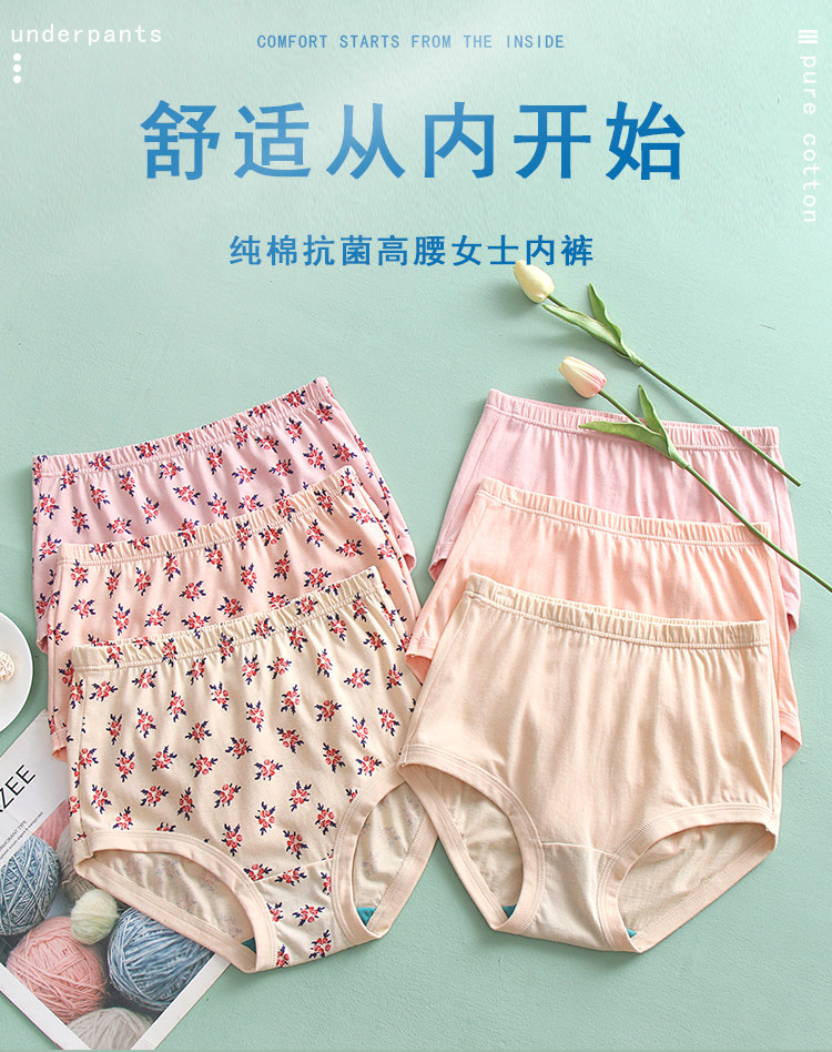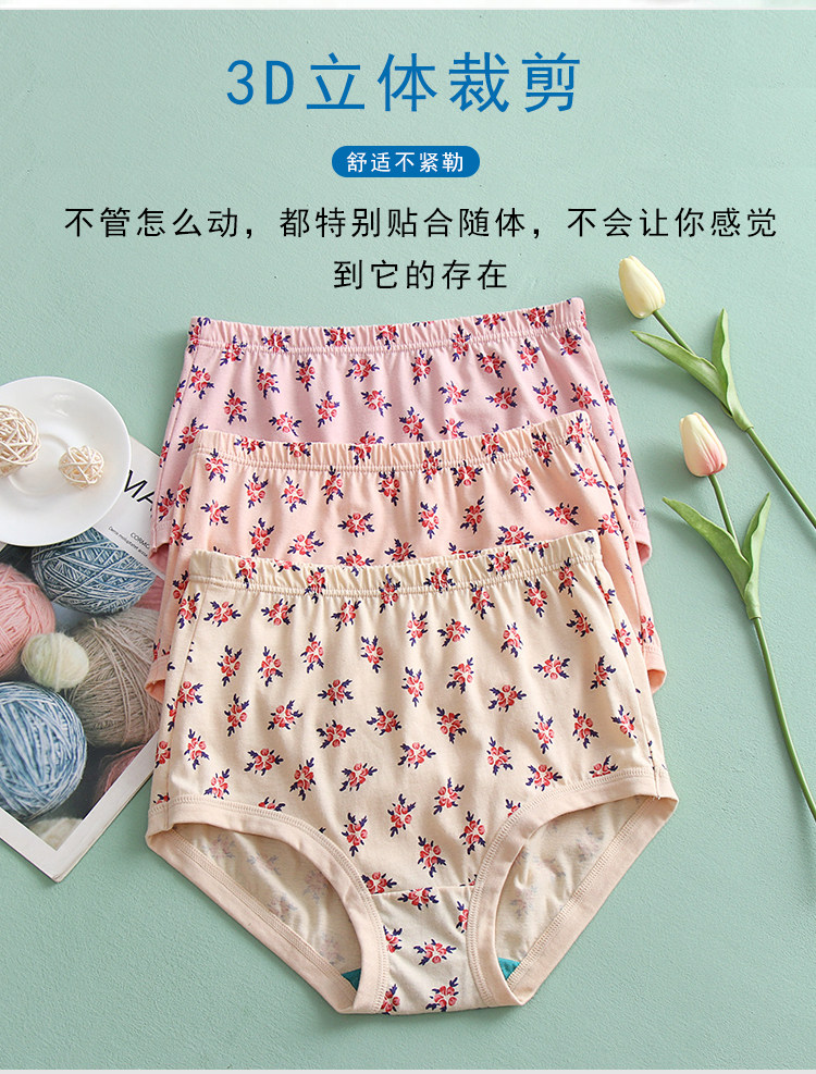 ab內衣【3條裝】純棉中老年高腰抗菌寬鬆大碼全棉奶奶內褲2608