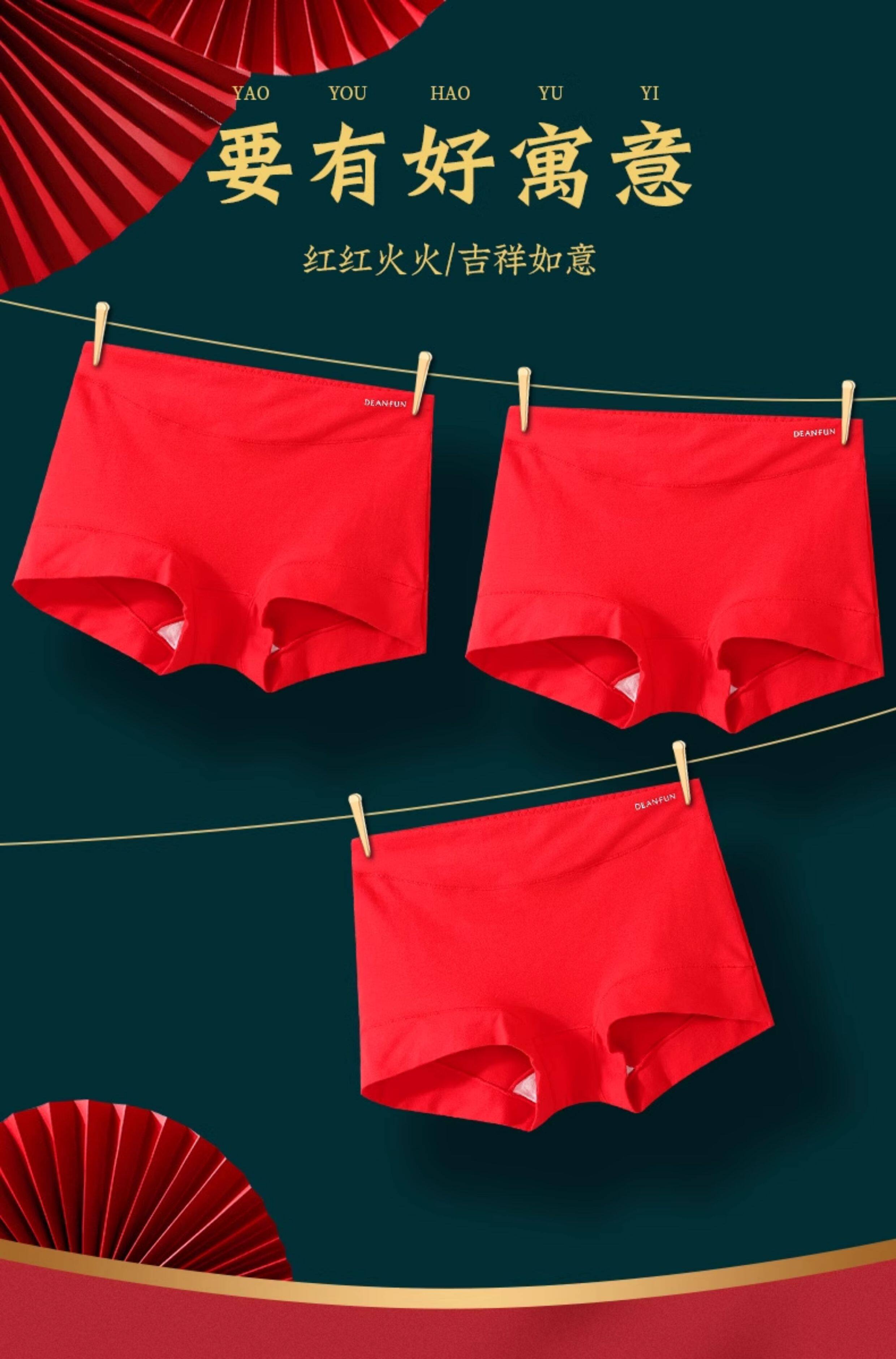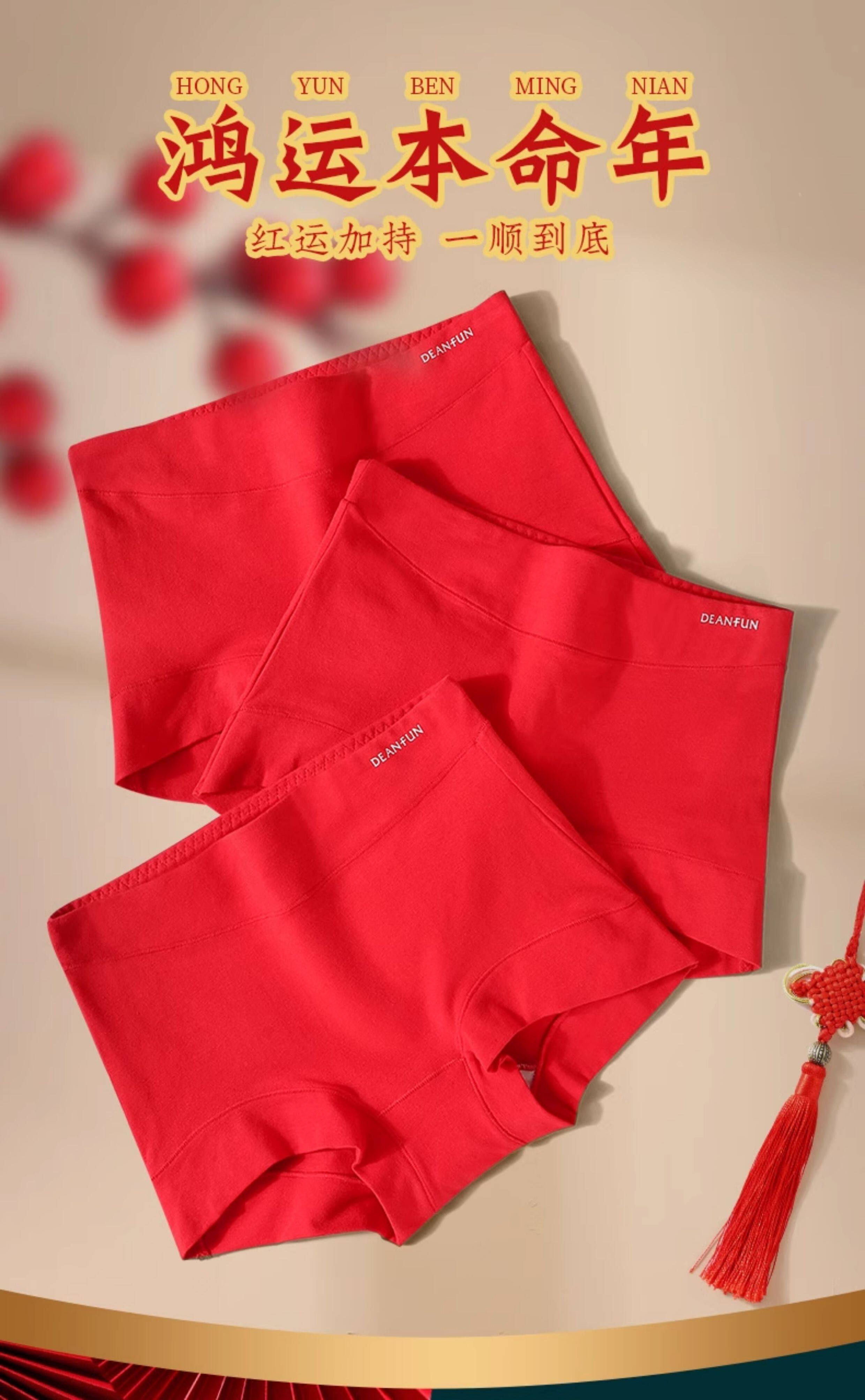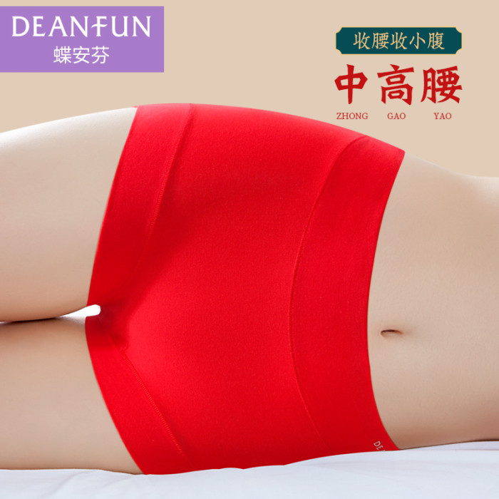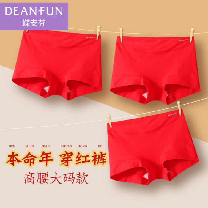 蝶安芬本命年紅色內褲女100%純棉全棉抗菌襠屬馬年中高腰大碼平角