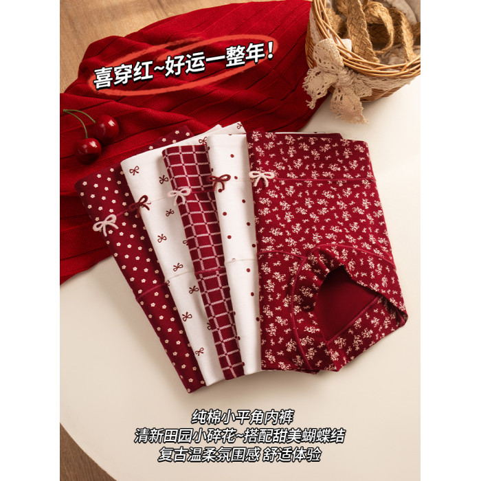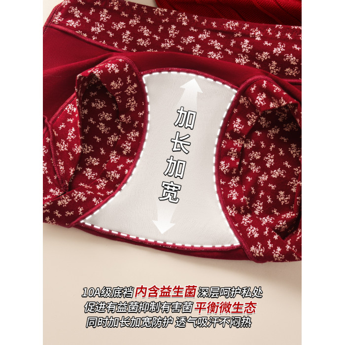 浪莎紅色平角內褲女純棉抗菌益生菌襠中高腰本命年四角褲2026馬年