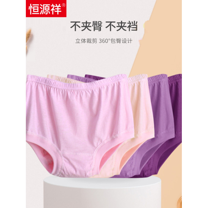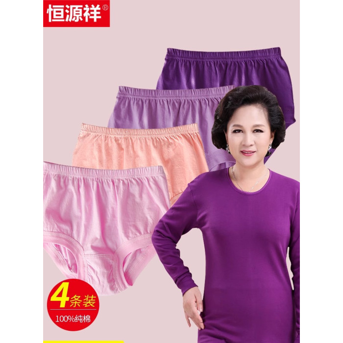 恒源祥中老年人媽媽內褲女士純全棉平角高腰大碼三四角奶奶短褲頭